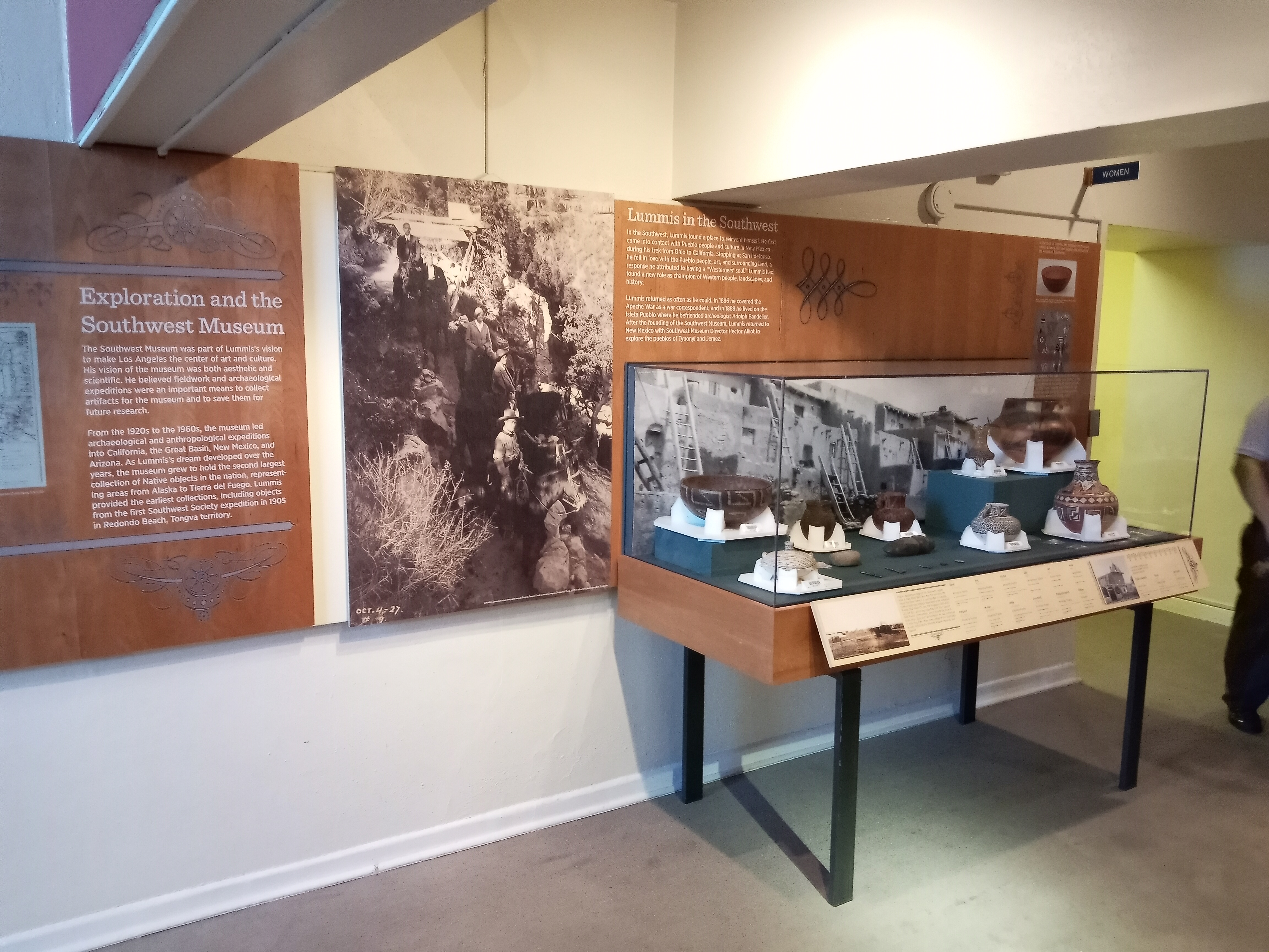The downstairs exhibit is relatively new, with televisions running programs about the museum and Charles Lummis, the founder of the museum. A headphone station lets you listen to some recorded folk songs. A couple of glass cases hold a handful of archaeological artifacts collected from the American Southwest and Peru, while other displays delve into the legacy of Lummis. One unique aspect of this is a display that is actually very critical of Lummis’ behavior as an ethnographer, with a stinging quote from a local American Indian studies professor: