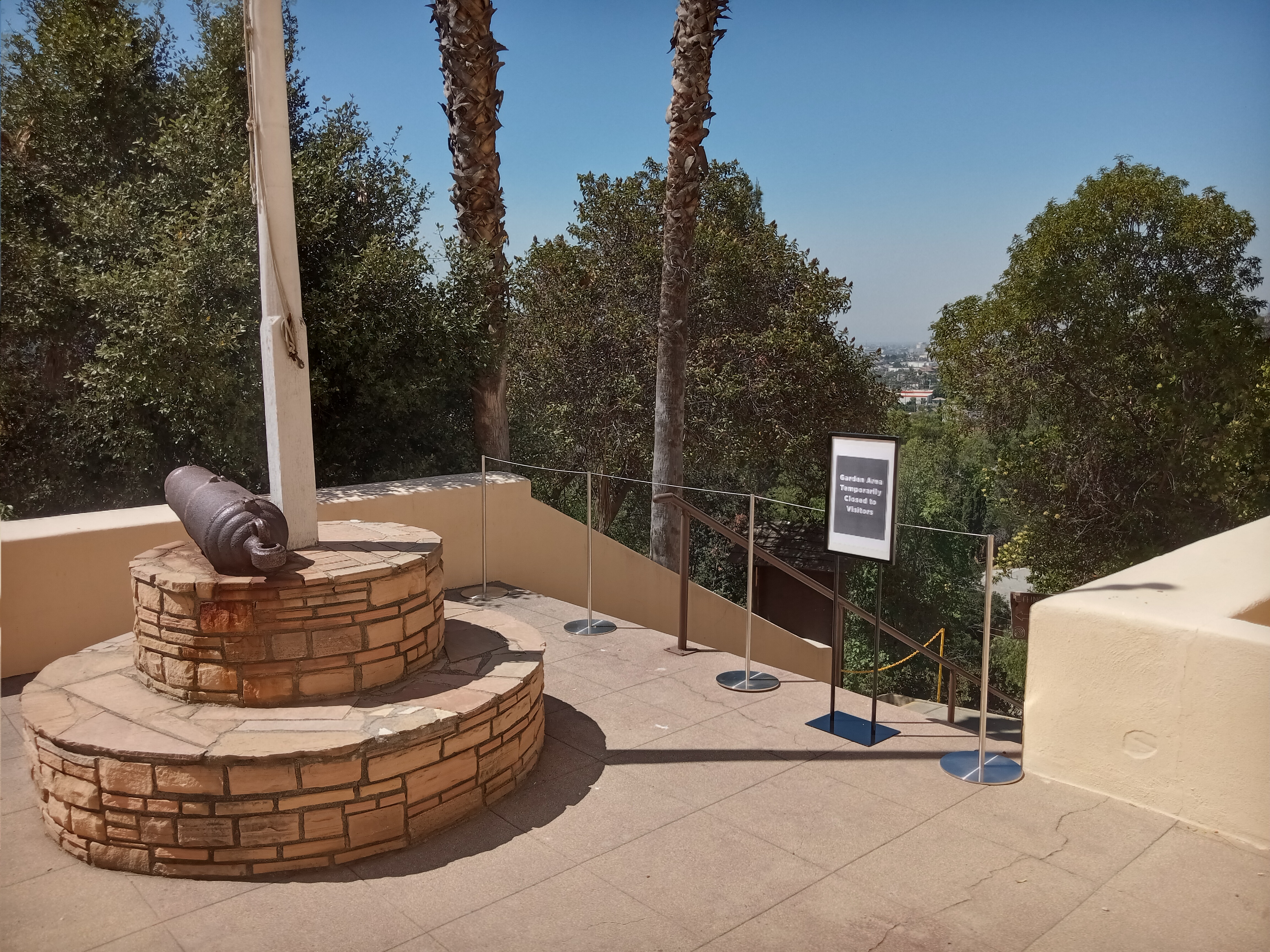 Here the state of disrepair the museum is in becomes apparent, as the garden has become overgrown to the point of being closed off. Even before the pandemic, the wooden benches were very weathered, the pathways uneven, and a trail that used to lead to the base of the hill had been permanently roped off because it was literally crumbling away. But the half-ruined state of the garden was exactly what I found so captivating about it. If you walk around to the base of the tower, you’ll be treated to an expansive view of Highland Park and the San Gabriel Mountains, occasionally punctuated by the electrical hum of a train passing underneath.