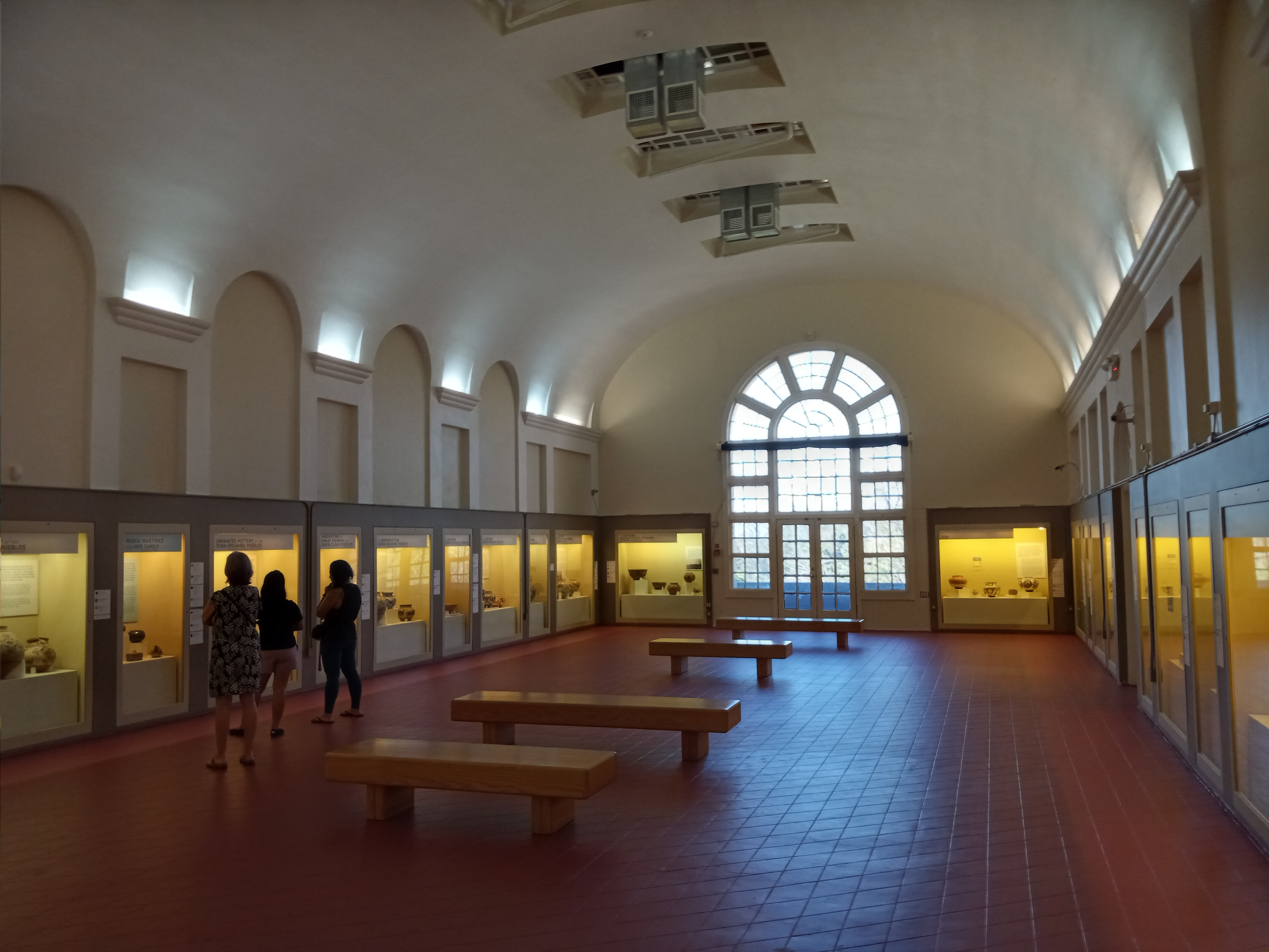 Most of the building is closed off (including, sadly, the tower), but there are two galleries open to the public. On the bottom floor behind the staircase is an exhibit on the history of the museum itself, while upstairs is a gallery of Native American pueblo pottery from New Mexico.