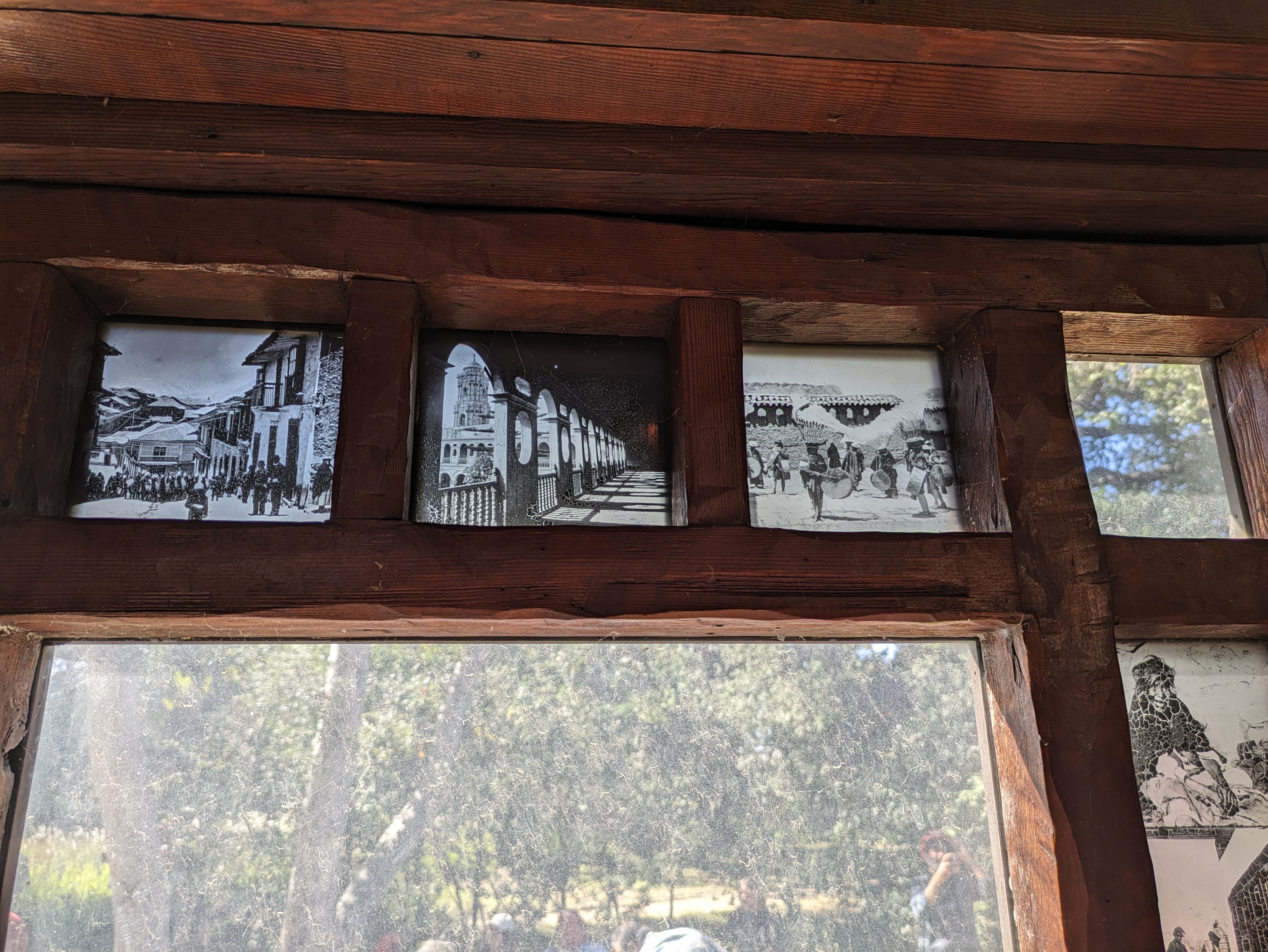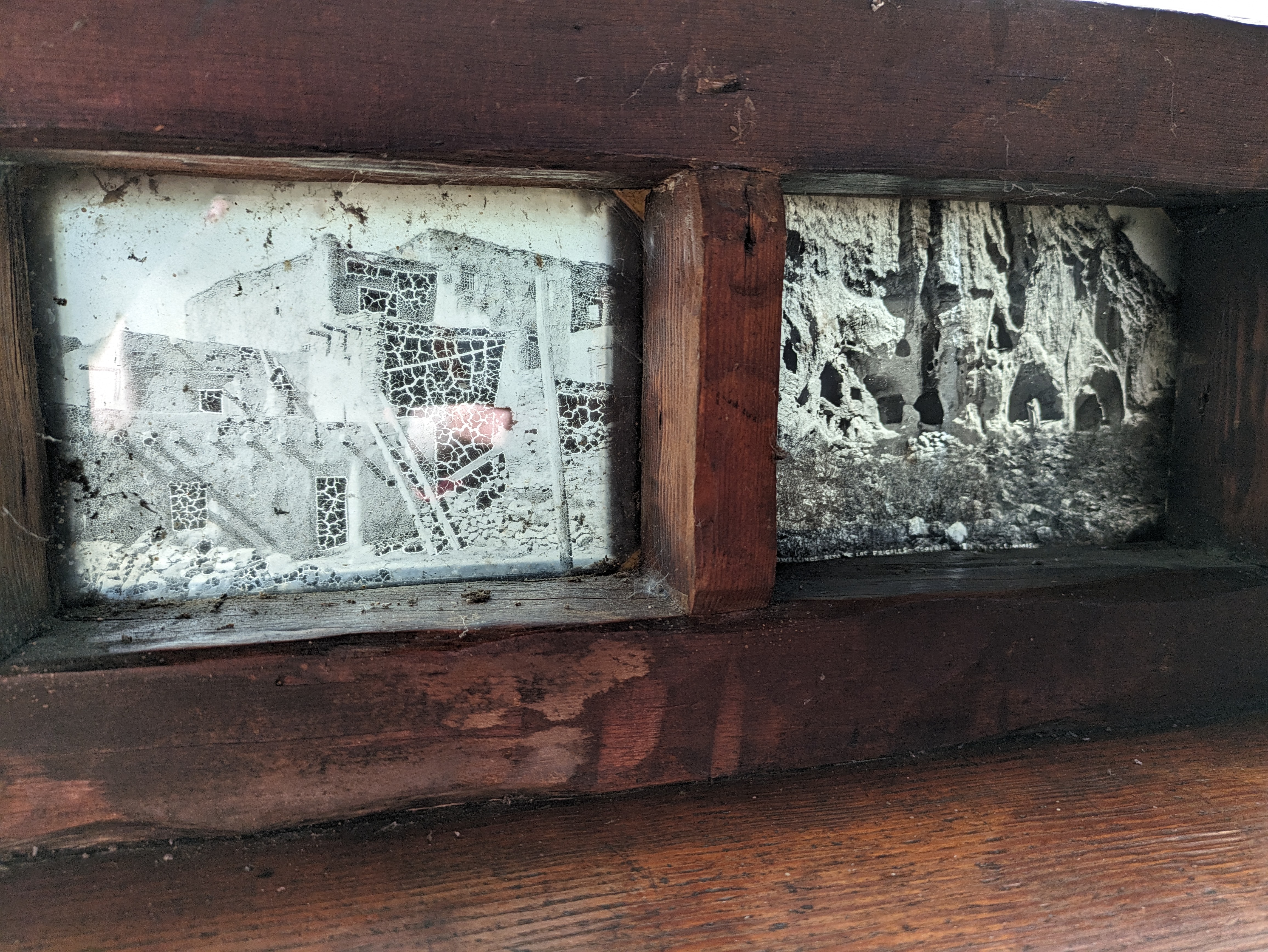 The Los Angeles that Lummis knew was booming, but it wasn’t the vast metropolis that it is today. California has become a realm unto itself, reflecting the vast cultural reach of the United States, Latin America, and the Pacific Rim. But Lummis envisioned Los Angeles as the cultural center of the American Southwest, reflecting the broader heritage of this vast region of the country. This might be best reflected by the most unique feature of the house. Inlaid into the living room windows are black-and-white photographs, visible through the sunlight streaming inside, of the places and people of New Mexico. These are Lummis’ own photographs, documenting his former neighbors in Isleta Pueblo and some of the majestic places he saw.