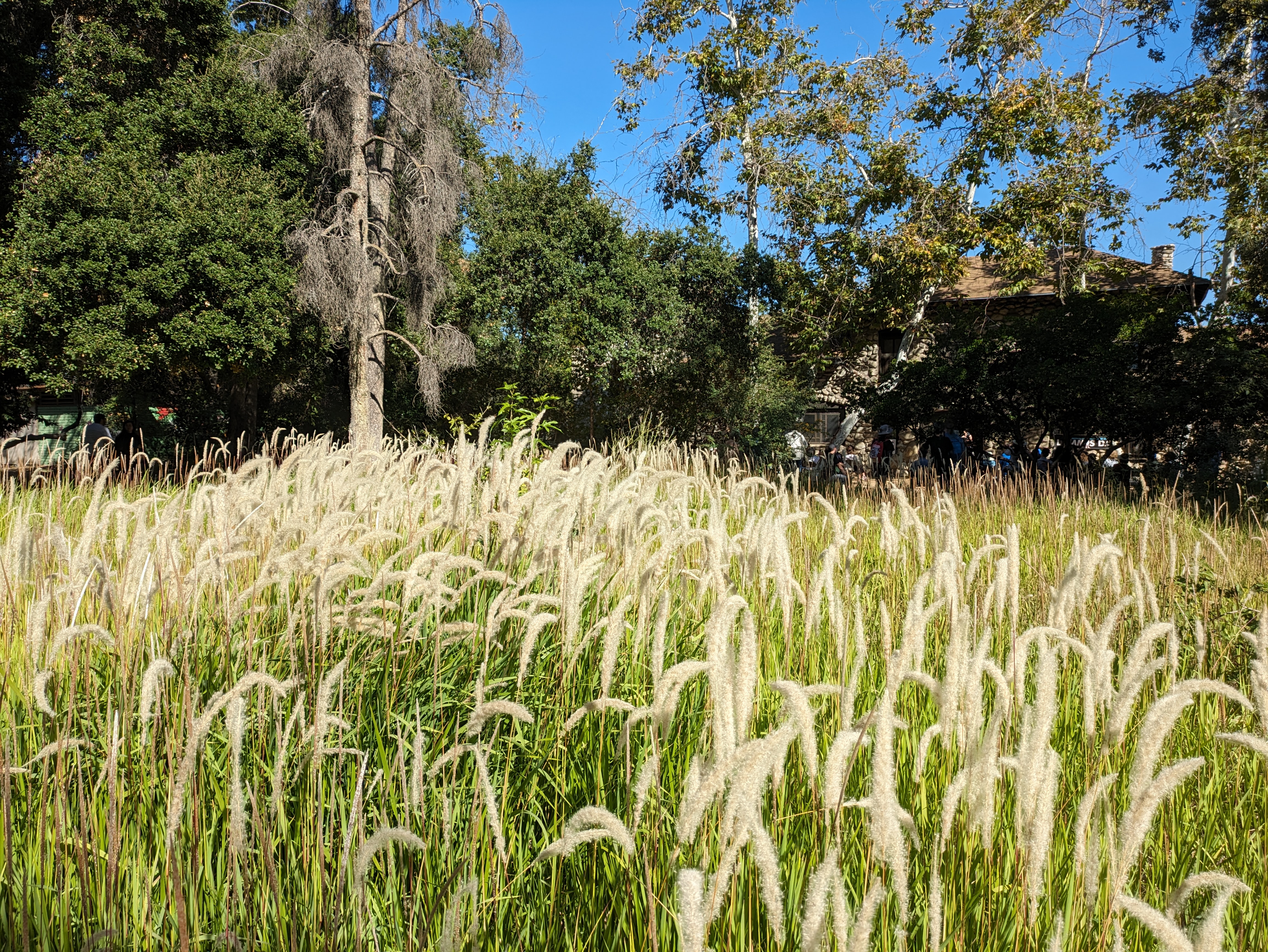 But as soon as you step through the gate, you are transported to a different world. A thicket of tall sycamores shade the gardens within. The grounds are what I would describe as “rustic,” lacking the heavily manicured feel one would expect of a botanical garden. They are laid out with different sections meant to represent different regions of California, each with native plants, but the boundaries between them feel hazy as you walk past, one fading into the next. The garden has a very understated, naturalistic character. A little meadow sits at the southern end, while the dirt pathways are adorned with the occasional bench or sign describing the drought-tolerant vegetation.