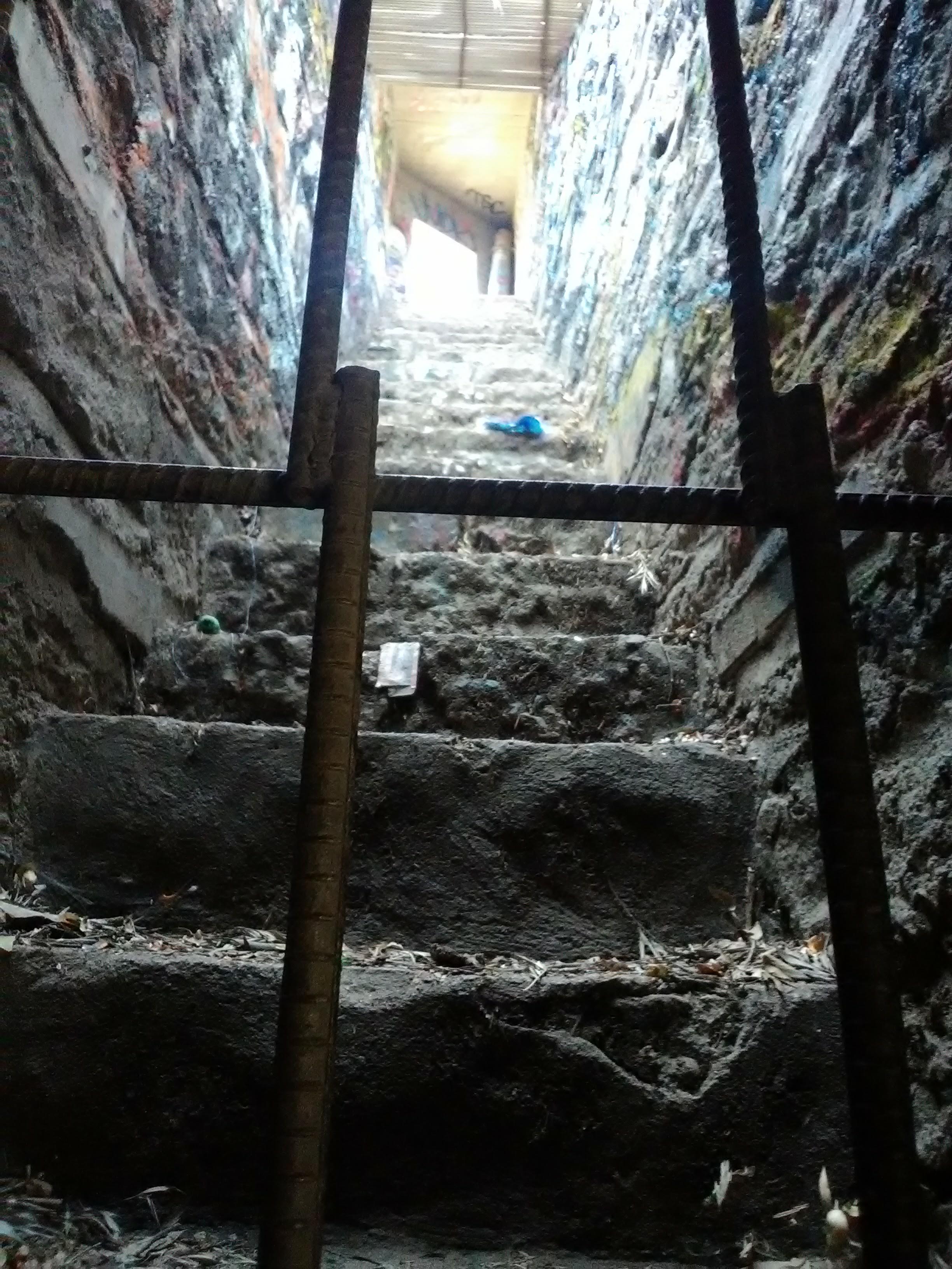 Previously, one of these passageways remained open, although it has since been blocked. That doesn’t stop people from occasionally breaking in, ascending the steep staircase past graffiti-covered walls. At the top is a set of small cells, dark and full of debris, with small windows that let you peer out onto the path behind the grottoes.