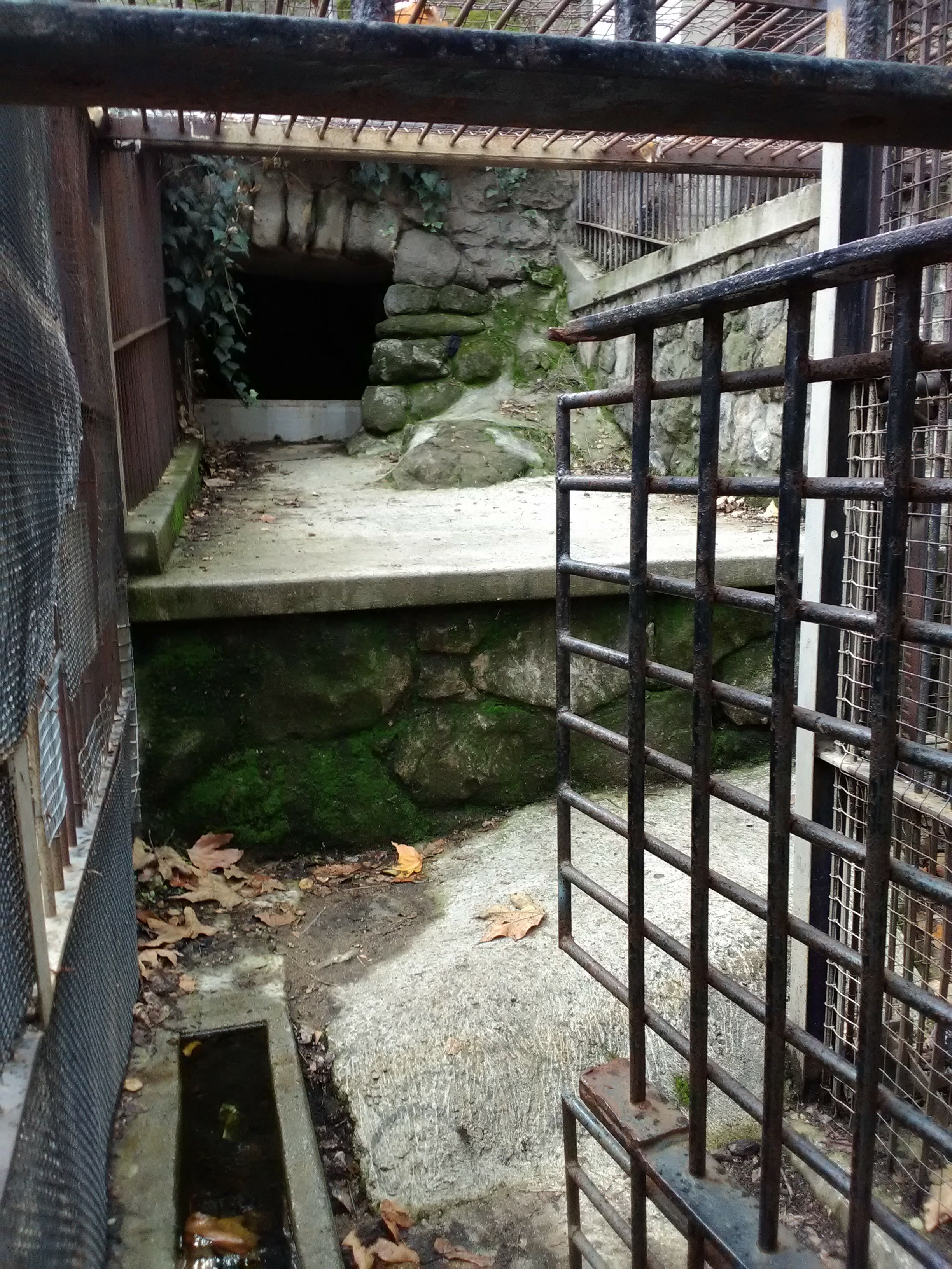 I’ve been to the Old Zoo several times, and it’s a completely different experience every time. It’s a site caught in flux, ravaged by time and the elements and marked by the ongoing actions of humans. Graffiti will come and go, chain-link fences will get pulled down by urban explorers and reinstalled by park staff. Locks will appear and then vanish. If you visit during the wet season, water will be leaking into the dens, moss will cover the inside of cages, and vines will encroach upon the metal bars. Even the time of day makes a big difference; a visit at dusk—which I highly recommend, as long as you have a flashlight—makes the ruins seem even more eerie and sinister.