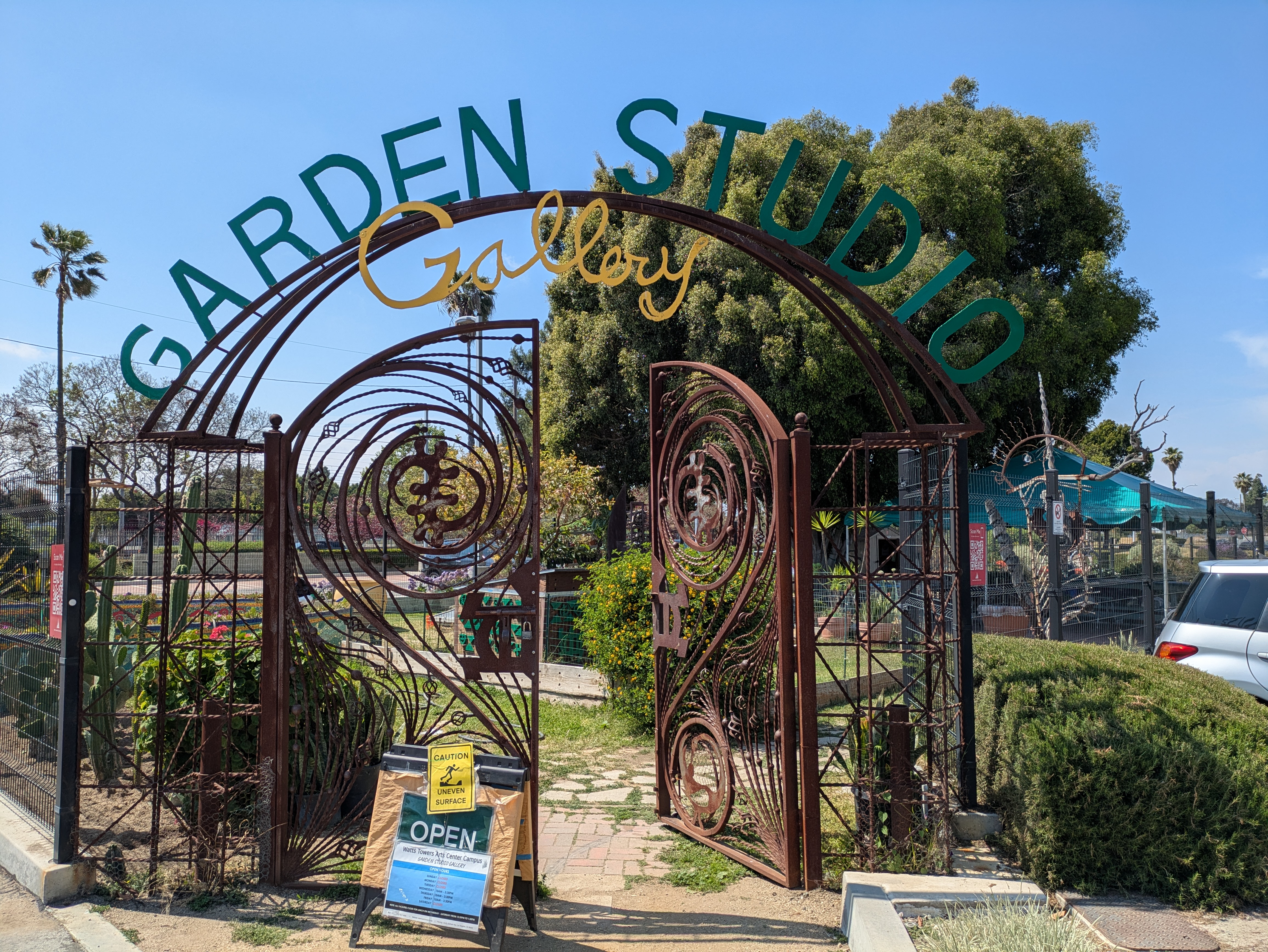 But the triangle-shaped park space surrounding the Watts Towers is well-kept, with grassy lawns, shade-giving trees, and clean sidewalks. The first thing you’ll encounter upon entering the park is its most endearing feature: a community garden called the Garden Studio Gallery. Through its beautifully-wrought metal gates, you’ll find small sculptures that look like pieces of the towers, numerous flowers, a charming turtle pond held inside a mosaic tile-walled enclosure, and most unexpectedly and delightful of all, a large tortoise occupying a grassy enclosure near the gate. The garden is only open Wednesdays, Thursdays, and Fridays 10am-3:30pm, when the friendly caretakers will also be in the garden.
