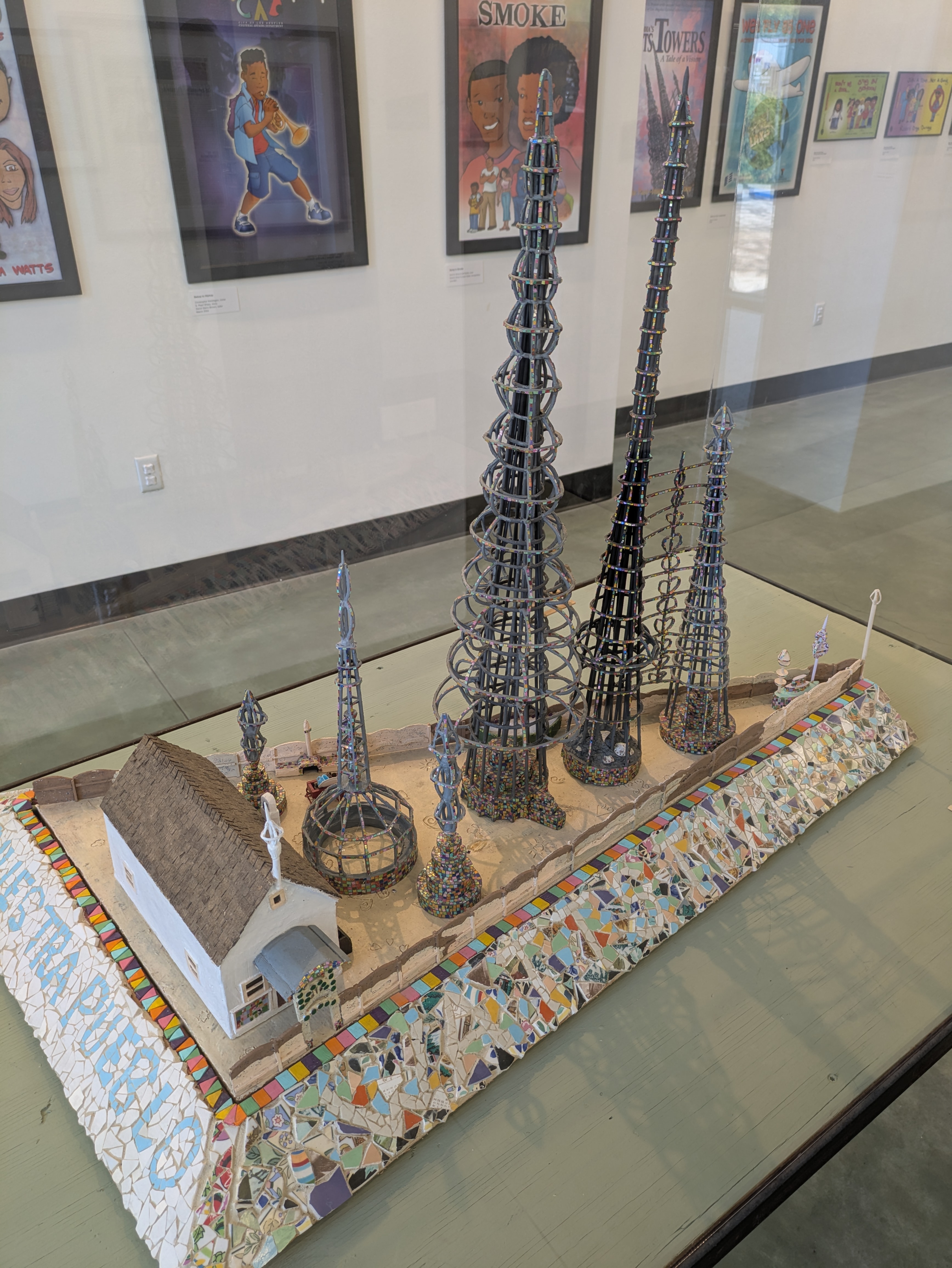 Just past the garden is the arts center, which consists of two buildings. The newer Charles Mingus Youth Arts Center holds a lovely gallery with changing exhibitions as well as a few permanent collection objects from artists who were inspired by the towers, including a scale model of the towers themselves.