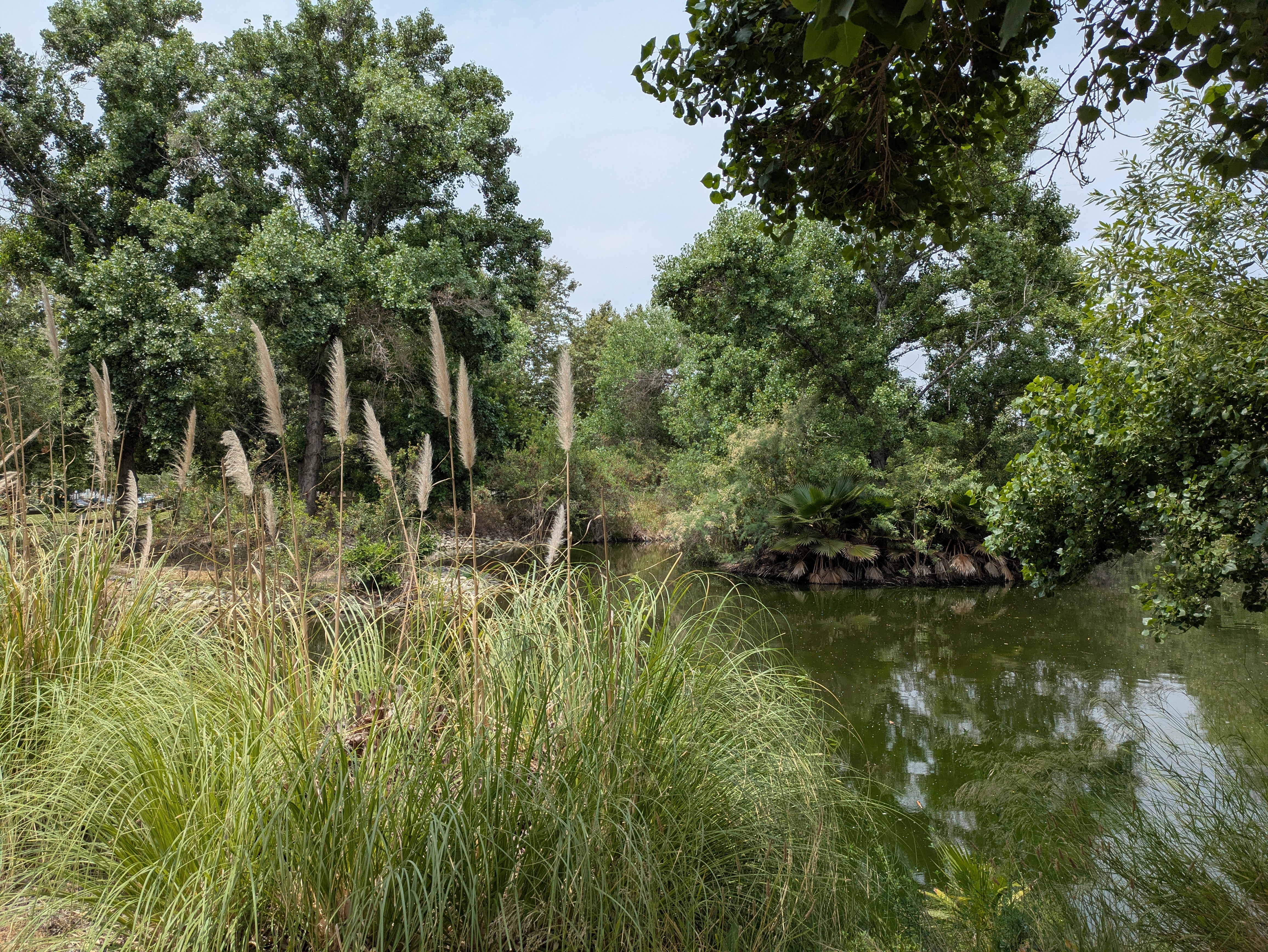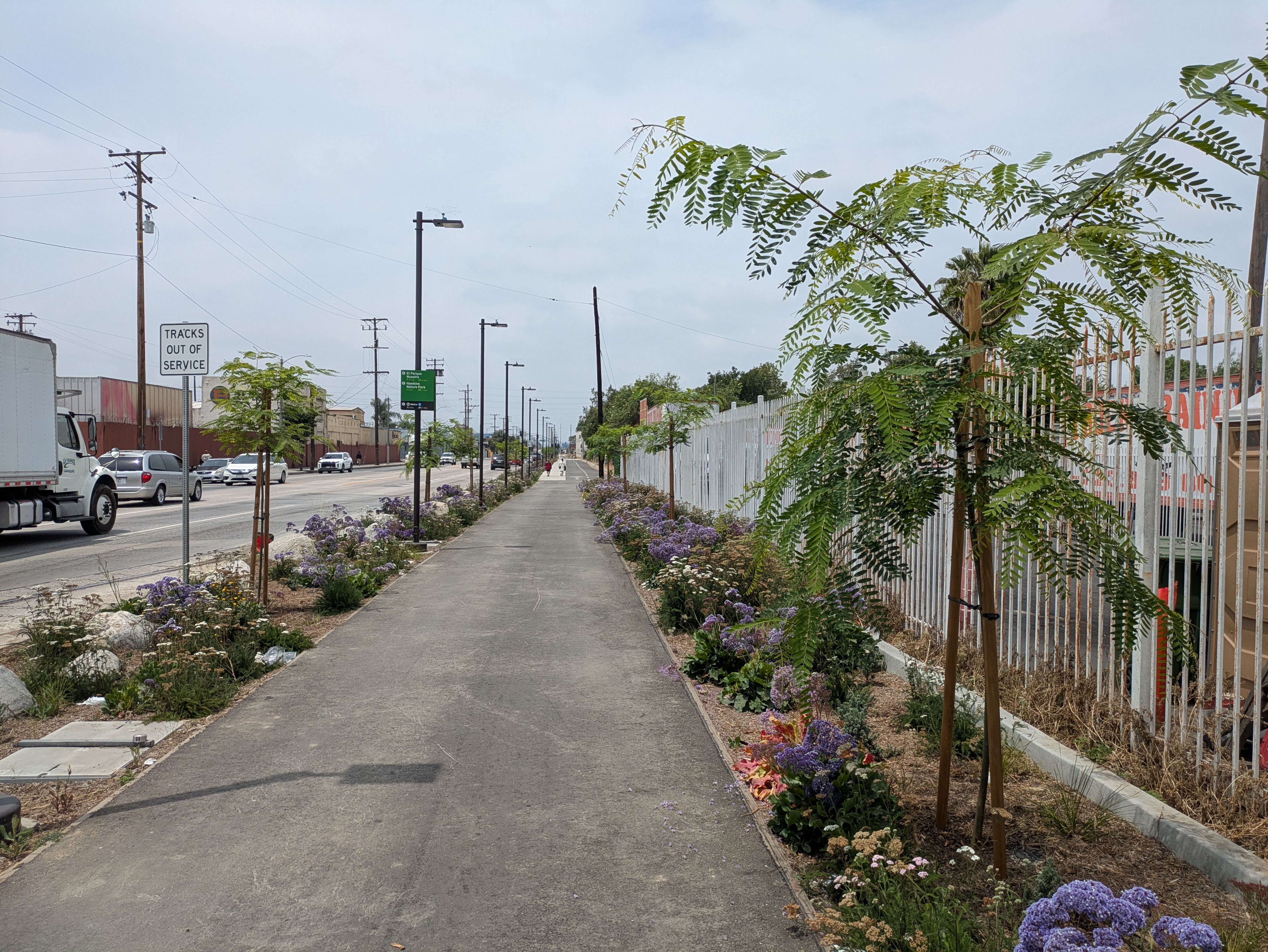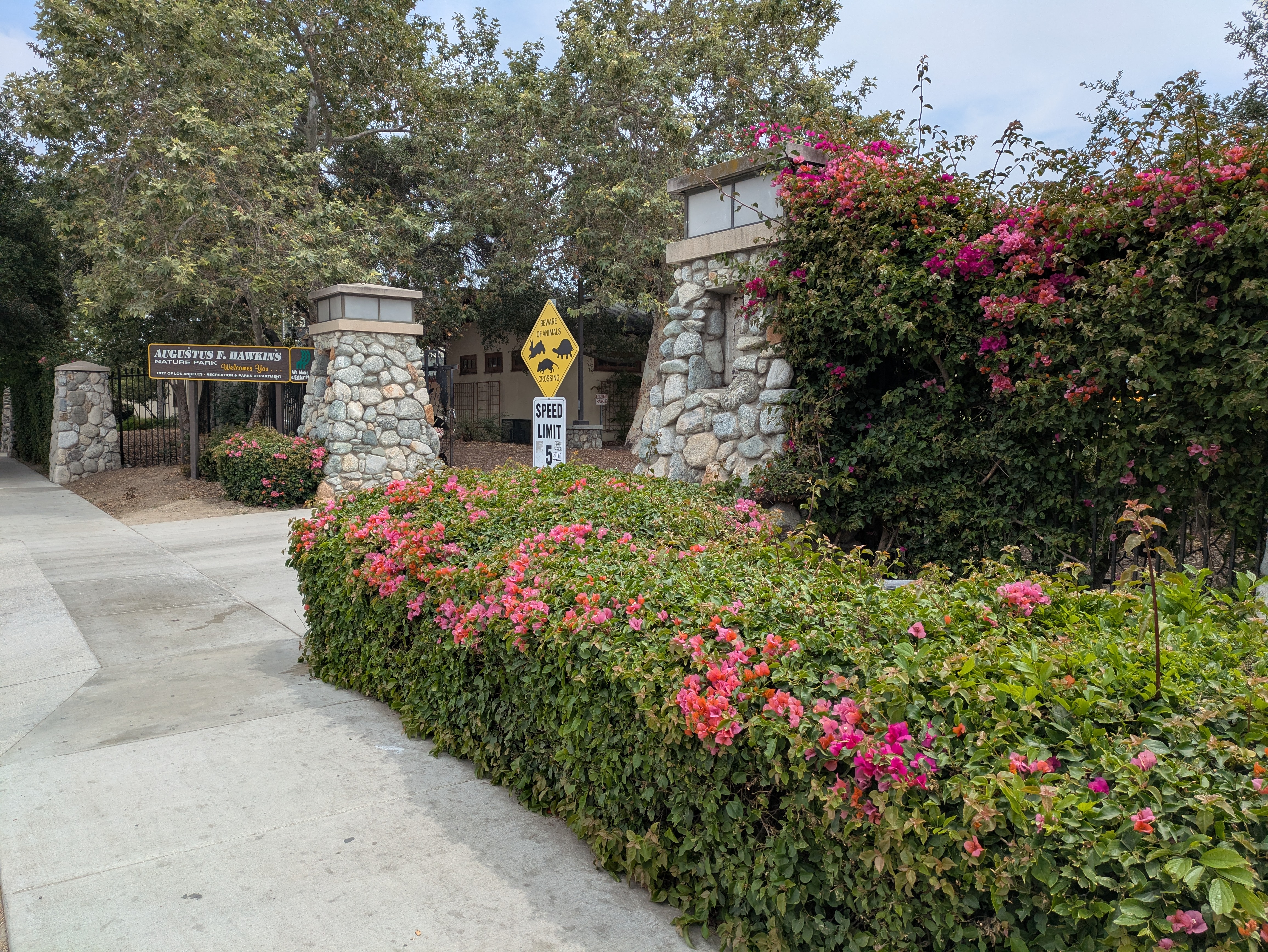 The next three stations on the line are all located near large parks, with Florence station being near Roosevelt Park and Firestone station next to Washington Park. But Slauson probably has the most interesting park of the three. From the platform, you can also spot a large grove of trees a couple blocks west of the station. This is Augustus F. Hawkins Nature Park, a lush oasis built in 2000 to reintroduce a natural habitat on a former industrial site and provide much-needed green space to the surrounding neighborhood. It’s a short walk from Slauson station along a newly built bicycle path; as you exit the station, make a left and cross Slauson at the first crosswalk you come across, then follow the bike path until you reach the park. The entrance will be right around the corner on Compton Avenue.