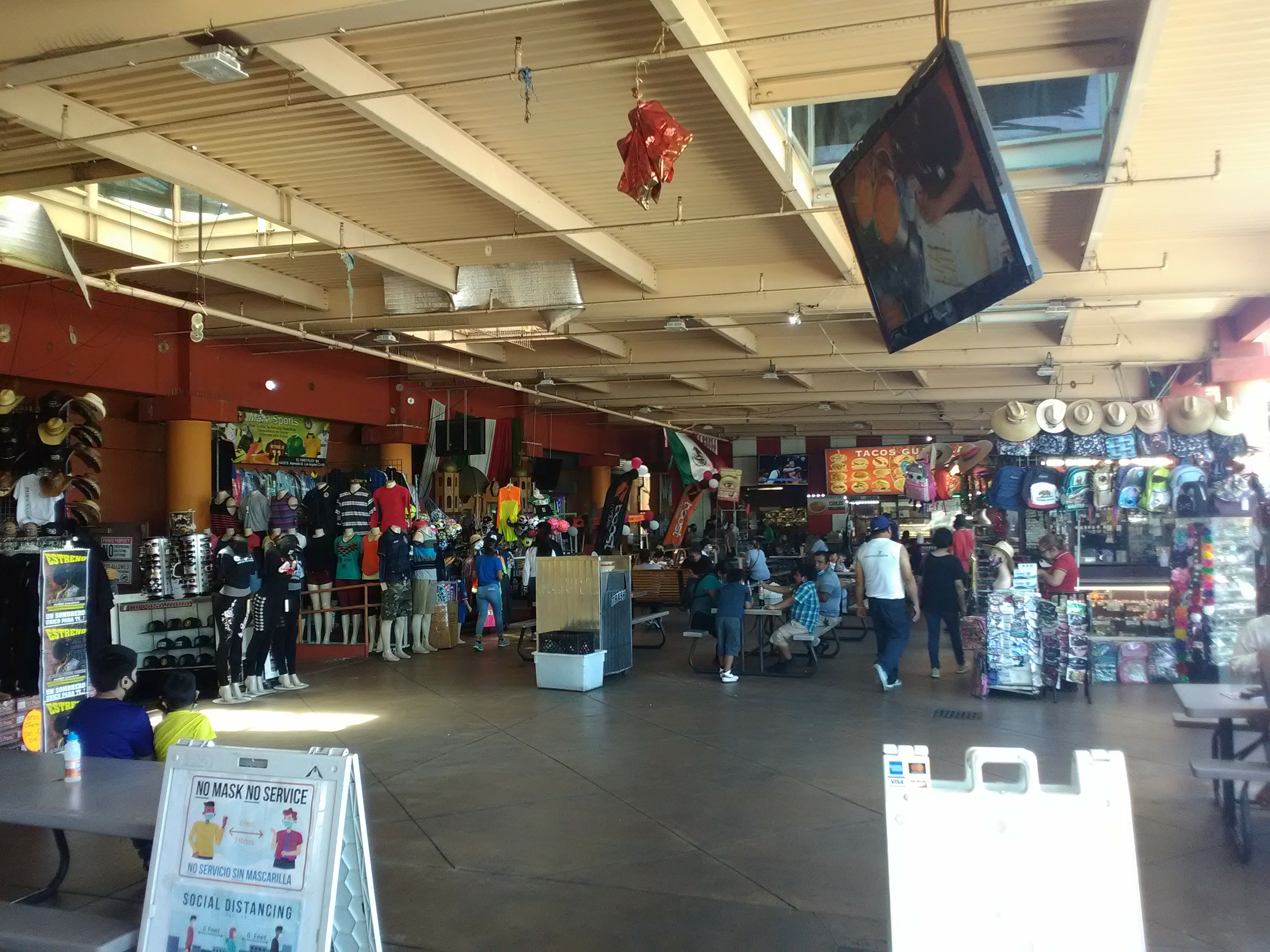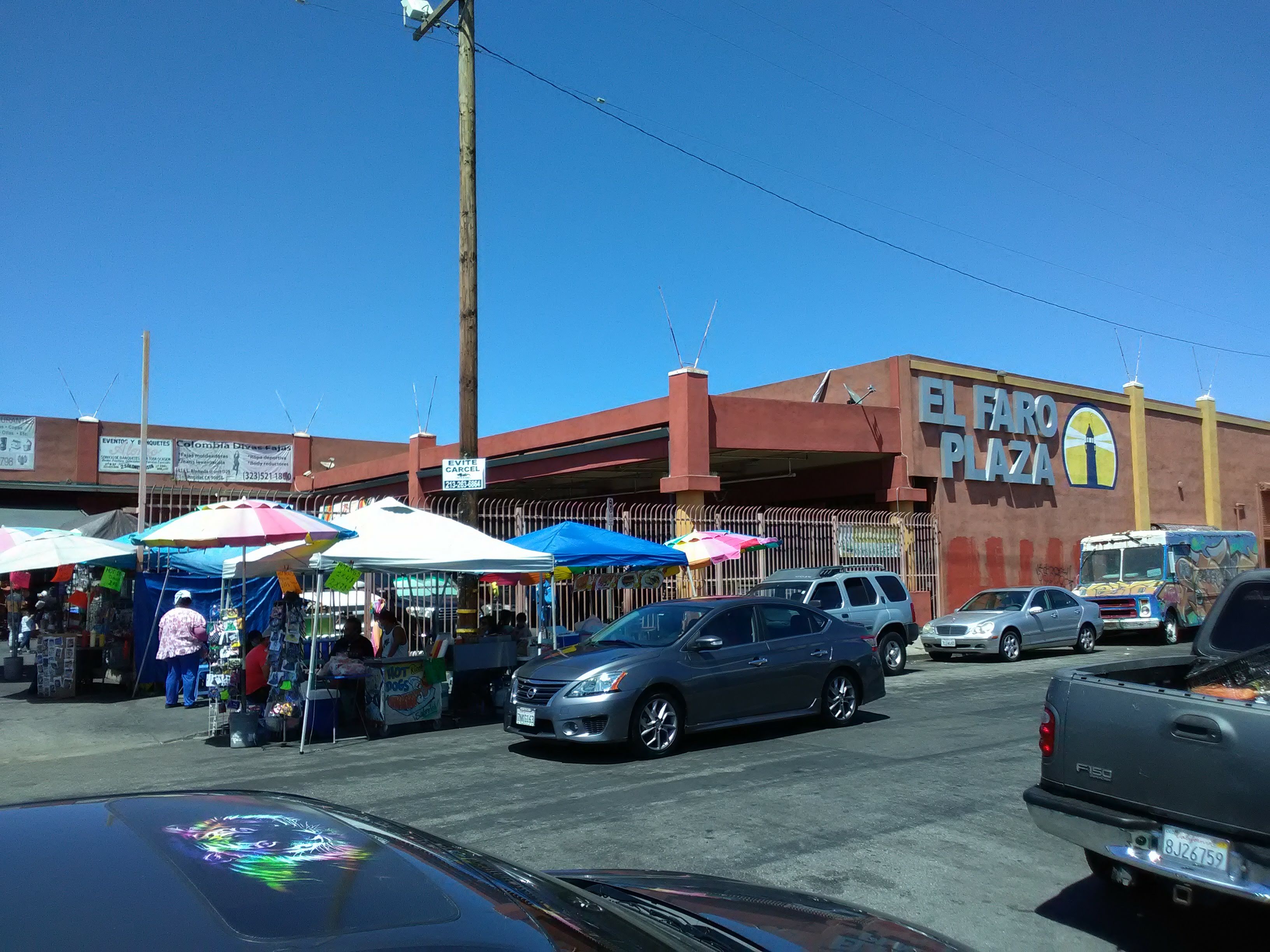 Within the walls of these two markets, you will find an amazing array of products: leather boots, hardware, electronics, sports caps, flowers, toys, quinceañera dresses, piñatas, clothing, furniture, produce, exotic pets, you name it. There’s tattoo parlors, massage clinics, beauty salons, optometrists, auto repair shops, and jewelers. And this is to say nothing of the food, which comes from dozens of vendors serving a wide variety of regional Latin American specialties. The Alameda Swap Meet is the older and larger of the two, with most of the vendors inside a cavernous warehouse. El Faro is slightly newer and has the better food selection, with a great food court on the north side of the building facing Vernon. TVs hang from the ceiling above the cafeteria tables, and during a soccer match the food court will be packed with excited fans sitting on the edge of their seats before erupting after a goal.