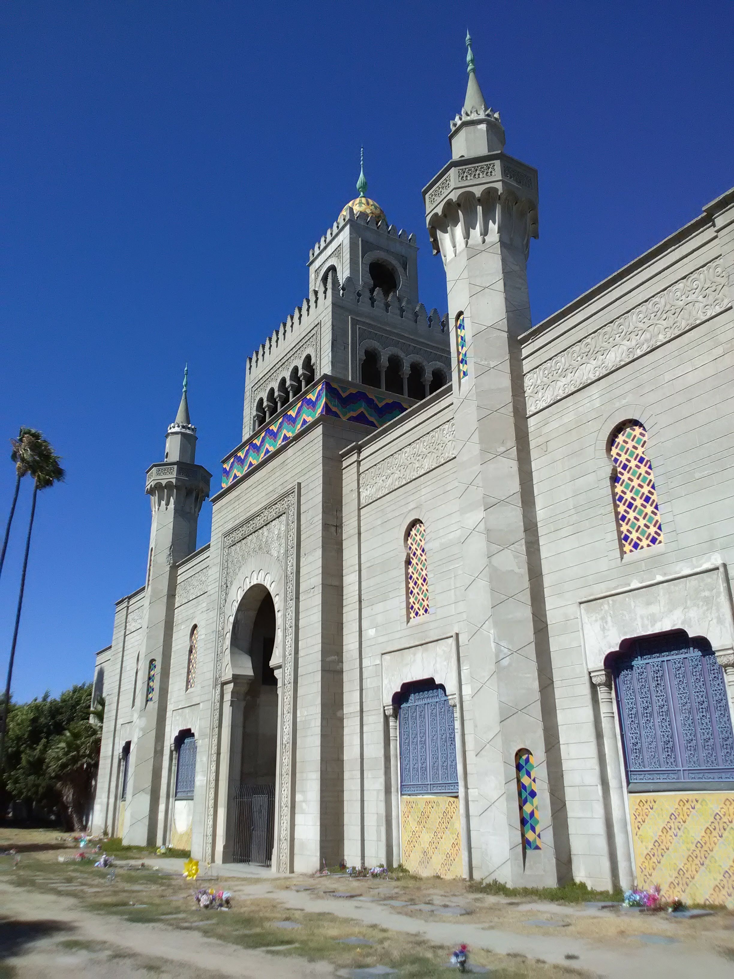 You’ll spot the Abbey long before you reach it, and it is truly impressive. Before you, across a wide cemetery, will be a palatial Moorish-style mausoleum towering above the lawn, with towers, intricate details, and a giant keyhole-shaped entrance. To your right will be another mausoleum, this one capped with a giant orange onion dome inspired by the Taj Mahal. The entire complex was built in the 1920s in a mixture of Islamic architectural styles, and walking around is a tranquil and captivating experience. Parts of it are in rough shape (in particular the cemetery lawn, which is covered in dry grass), but its beauty still shines through.