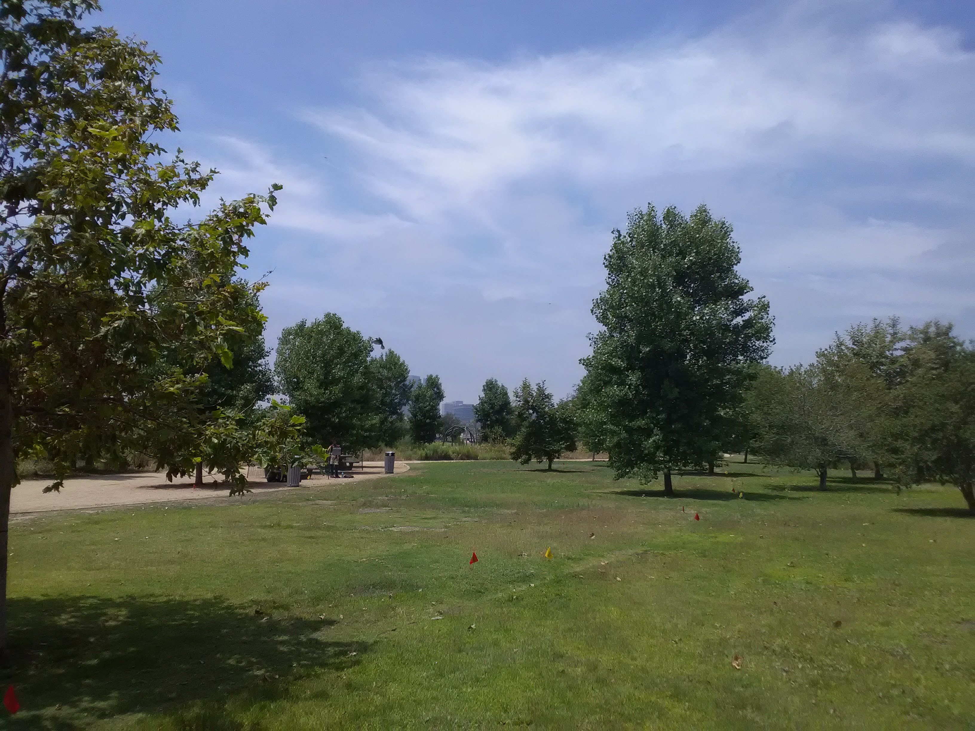 At the north end of the park, a short wooden deck sits perched over a dry creek bed that’s part of a restored wetland habitat. In previous years, the vegetation was sparse enough that you had a clear view of the North Broadway Bridge, with its beautiful arches over the LA River. Now, the foliage is dense enough that you can barely make out the bridge. The trees have grown close together and flowers and tall grass cover the ground. It’s really starting to feel like a native landscape, and when you walk between the trees of the nearby picnic area, you can almost lose yourself in the park.