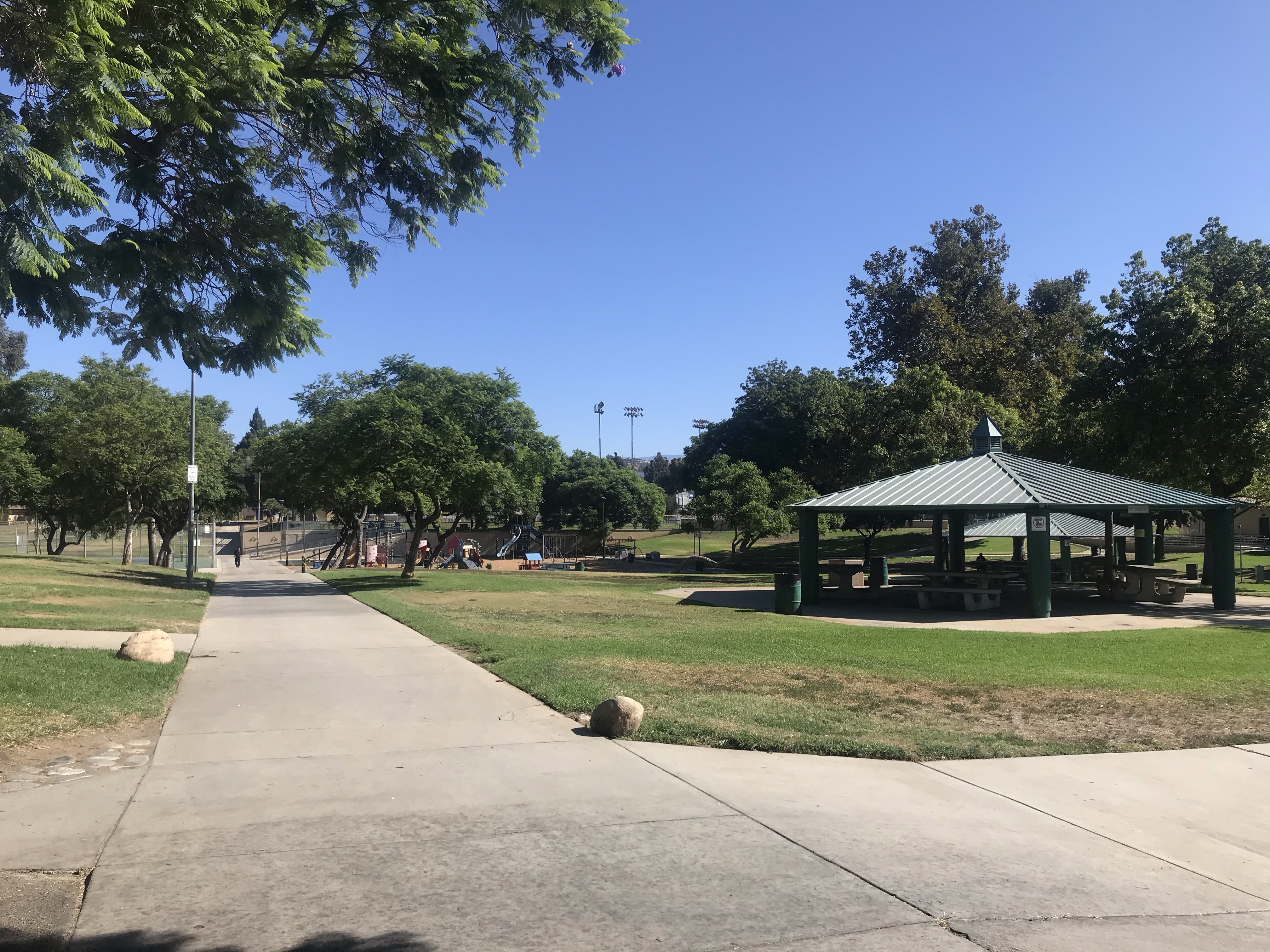 At the northern end of the park is a pedestrian bridge that crosses the Pomona Freeway, linking the park to a set of baseball and soccer fields on the other side. Further beyond, just east down Cesar Chavez Avenue, is the campus of East Los Angeles College (ELAC). On the southeastern corner of the campus, near the intersection of Cesar Chavez and Atlantic, sits the Vincent Price Art Museum, a lovely little institution with a permanent collection of Indigenous artworks from ancient Central and South America, paintings from 19th century Mexico, and changing exhibitions of Latinx art. (Technically the museum is closer to Atlantic Station on the Gold Line, but crossing under the freeway on Atlantic is a little harrowing on foot, making the Belvedere Park pedestrian bridge a far more pleasant crossing.)