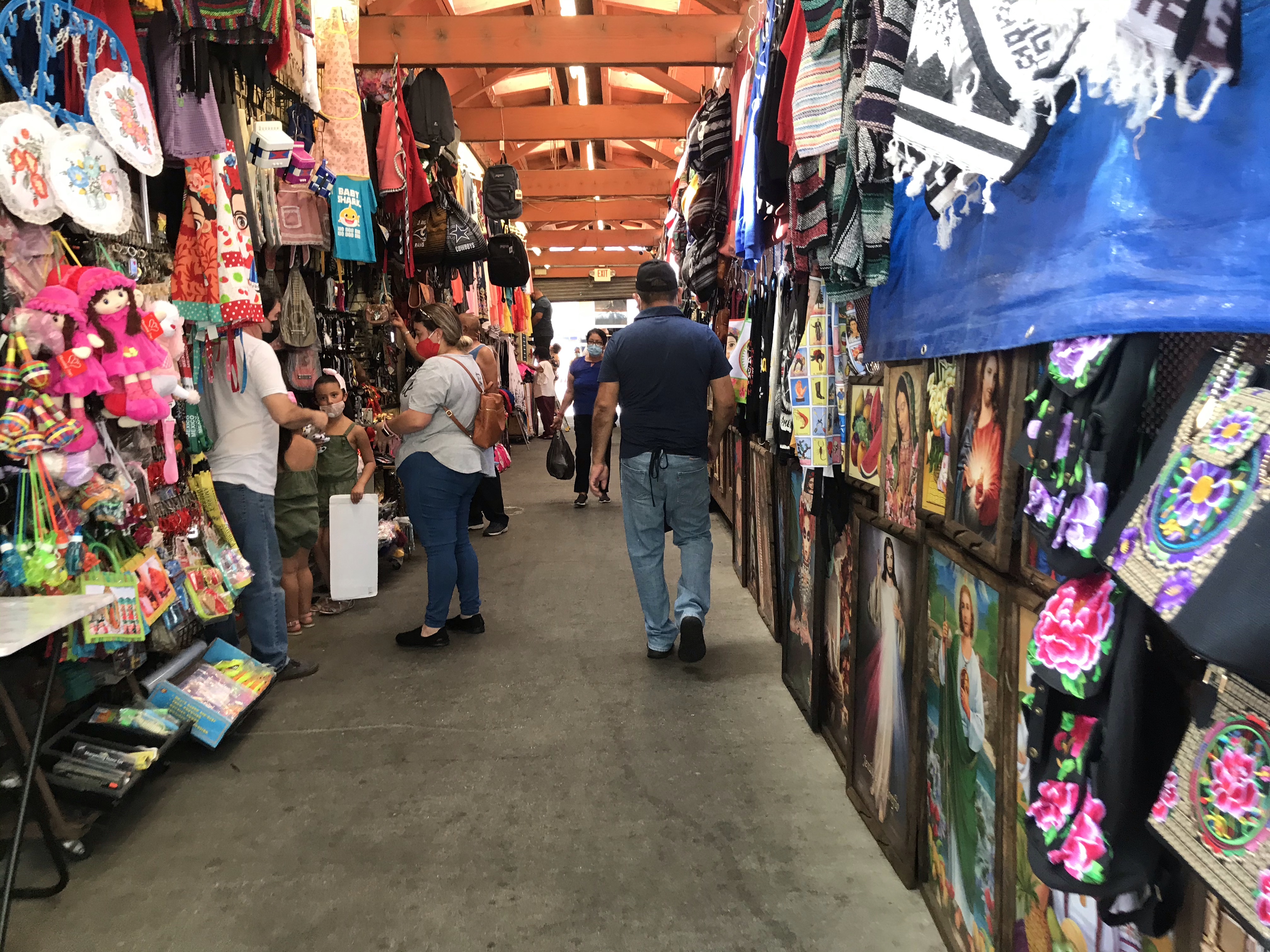 When you step inside the building you’ll be welcomed by a wave of scents, the most prominent scent being leather. The ground floor is home to several Latinx-owned shops of Mexican memorabilia like leather boots and belts, jewelry, charro outfits, baleros (a barrel shaped toy that the kendama toy resembles), muñecas, guitars and accordions, ceramics, religious figures and white outfits for children completing their first communion. When you move to the floor above you will once again be greeted by an entirely different blend of scents. Here you will find authentic ingredients like chiles, mole, cheese, chorizo, fresh and dried fruits, spices and seeds, different assortments of candy, and pan dulce (bread). The third floor used to be home to “El Mercadito Mariachi Restaurant,” a sit down restaurant where you would be serenaded by mariachis as you eat delicious plates of Mexican food, but it has remained closed since the pandemic. But even if it were open, I would recommend the food stalls throughout the building. You’ll find booths throughout, where you may eat authentic Mexican tacos, tortas, elotes, and botanas by hand. No need for silverware, these delicious treats can be eaten on the go. In wintertime, the parking lot is reserved for prayers and posadas around the Virgin of Guadalupe. After all these years, El Mercado continues to thrive with vivid colors and music. It truly embodies the harmony of a Mexican marketplace.