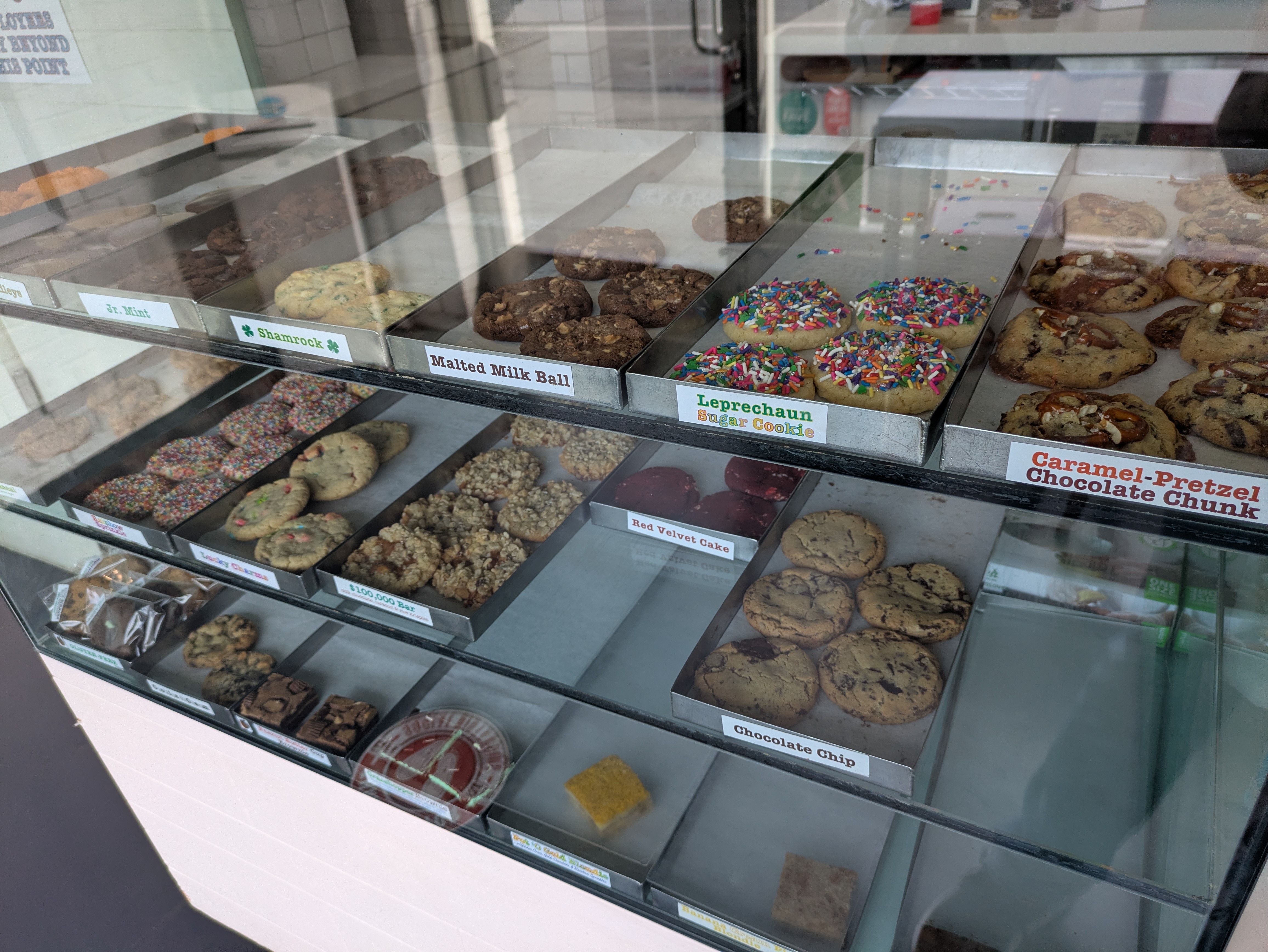Cookie Good sits in the middle of the block of Wilshire facing the park, tucked between two far larger buildings in a tiny storefront. The interior is miniscule, with just enough room to show off their fresh cookies. Their flavors change constantly, so check their website ahead of time to see what’s available—or just walk in and be surprised.