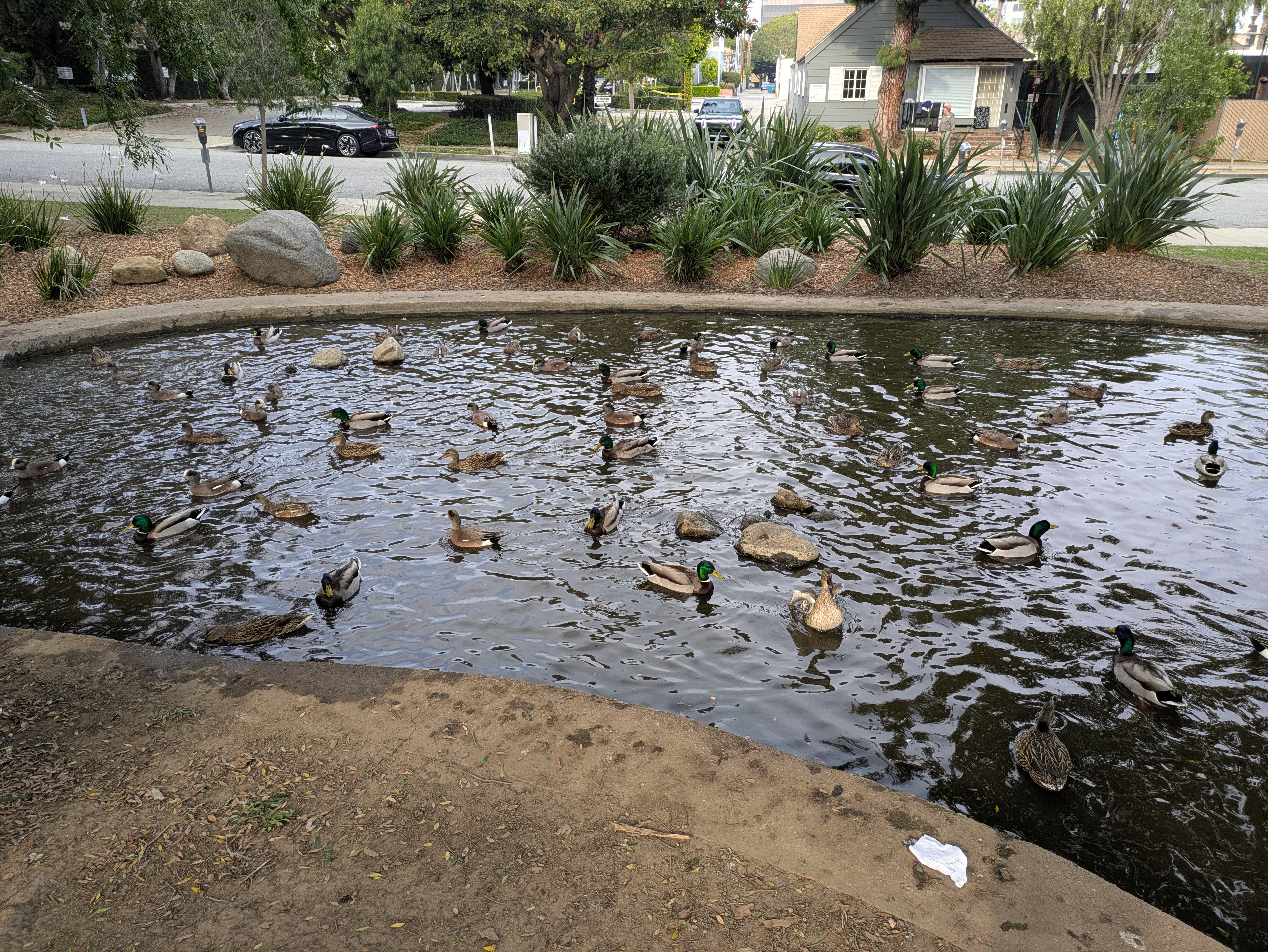 Douglas Park is a gem in the middle of the neighborhood, with a bowling green at the base of the hill and an idyllic duck pond at the top, with two burbling streams flowing downhill to smaller ponds flanking the bowling green. A little island sits in the midst of the largest pond, surrounded by wetland grasses while turtles slowly poke their heads out of the water and wait to see if you’re going to feed them.