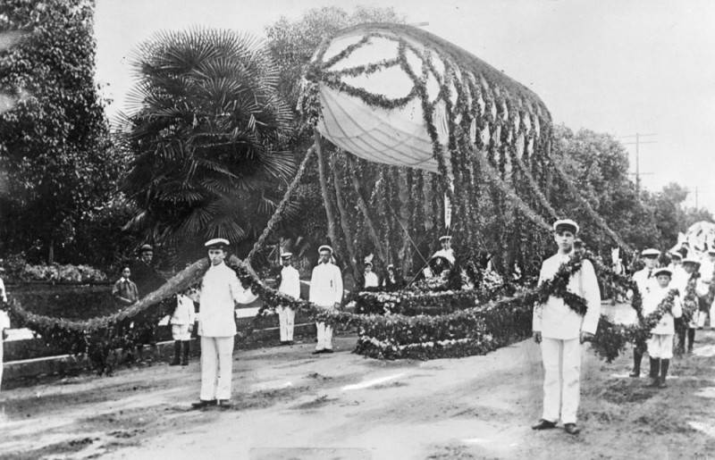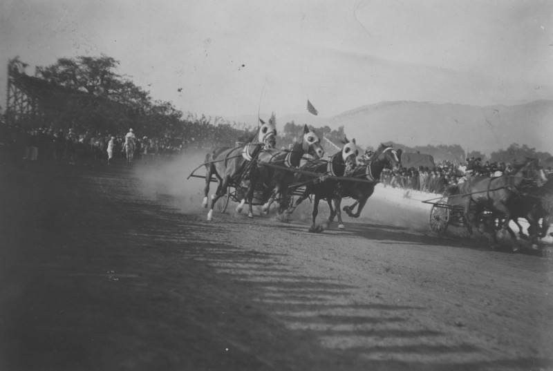 When it was first held in 1890, the Tournament of Roses was conceived as a classic bit of California boosterism. While East Coasters and Midwesterners were freezing in the dead of winter, the denizens of Pasadena had so many flowers blooming that they could cover their horse-drawn carriages in them. So that’s exactly what they did, creating a parade that ended with a tournament held in an empty lot on the southern end of what is now Caltech. The exact nature of the tournament varied through the early years of the event; initially, it started out as some foot races and a tug-of-war match, but in subsequent years it became much more elaborate, with grandstands built on the empty lot (now dubbed “Tournament Park”) hosting chariot races, ostrich races, bronco busting competitions, and in one year, a football game.