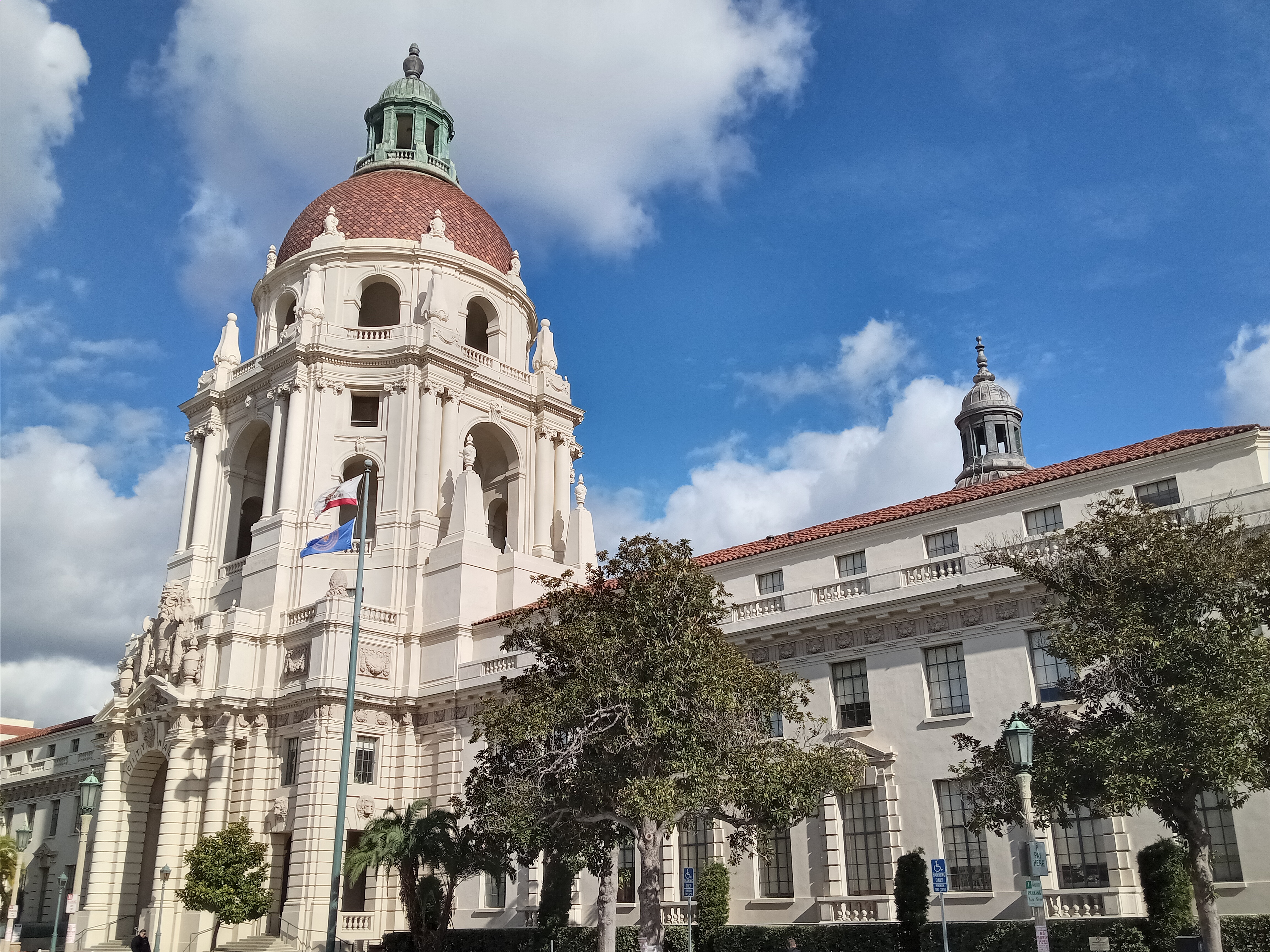 However, the real highlight of the area is the spectacular City Hall a block north of Colorado on Garfield Avenue. One of the most beautiful municipal buildings around, City Hall is a gorgeous Mediterranean-style building with a massive dome towering over the street and a scenic courtyard in the center. From the courtyard, you can climb one of the staircases to the second-floor landing, which circles the courtyard and has an open-air bridge along the east side of the building with a nice view. A lot of nice pedestrian paseos cut through the blocks surrounding City Hall, with some lovely fountains and public art.