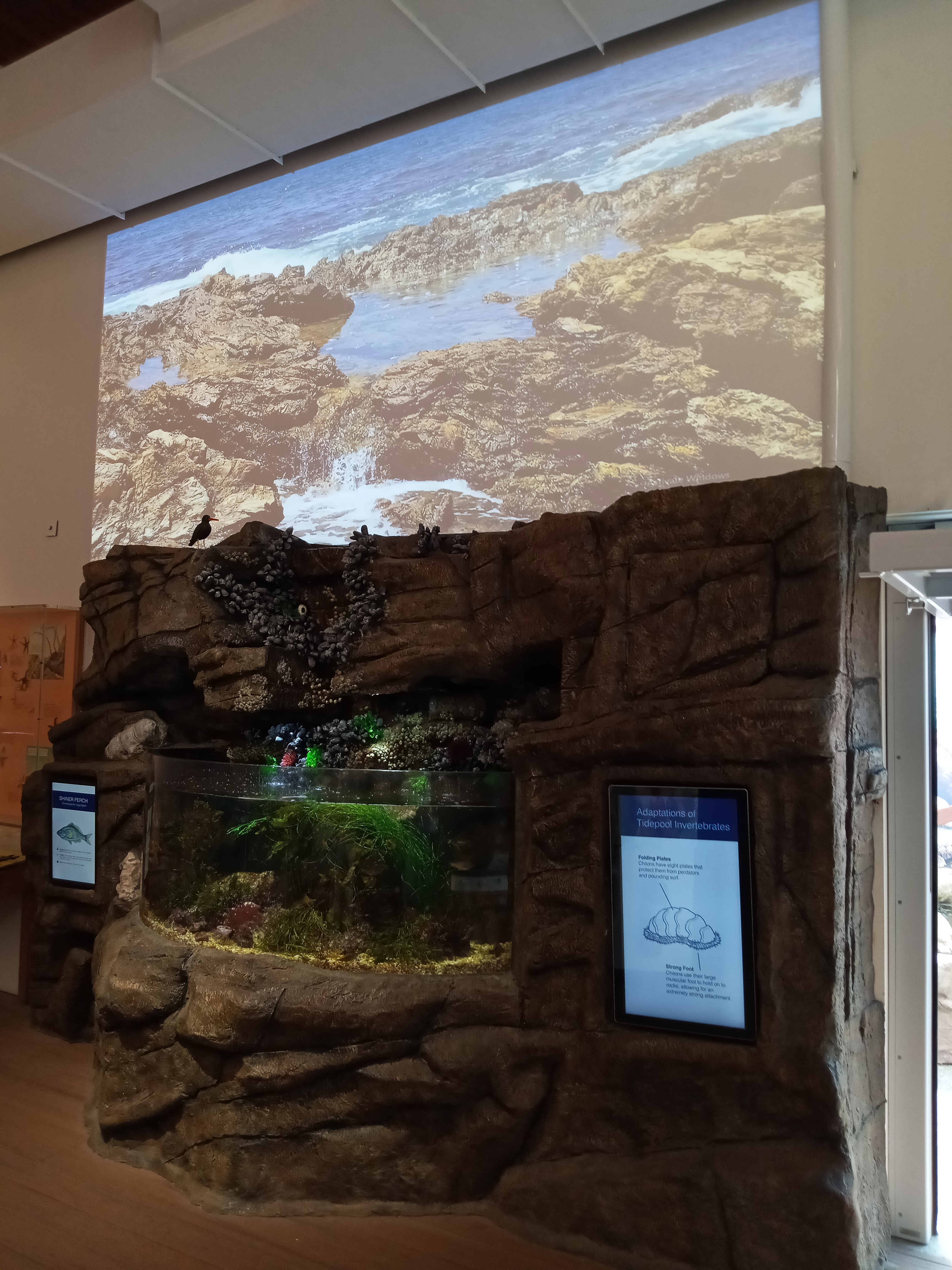 Where it gets unusual is the level of detail the aquarium is willing to go to to show how certain animals behave. A two-sided sea urchin tank has their food plastered on the glass, so you can actually see the mouths on the bottom of the sea urchins munch away at the kelp. In the next tank, carnivorous sea snails show off their long appendages, which reach through slots in their tank to feed off the carcass of a fish several inches away. Icky, but fascinating stuff.