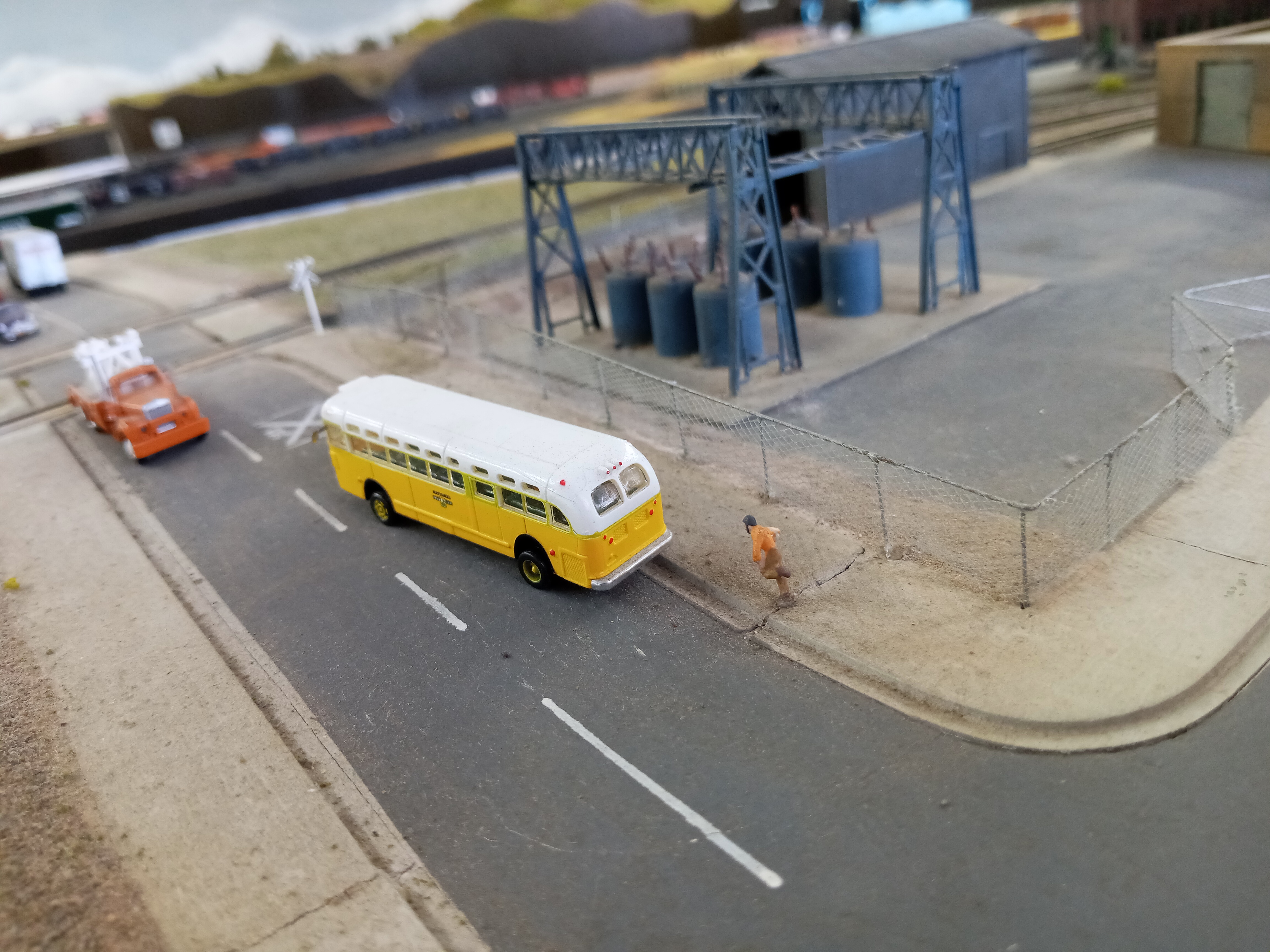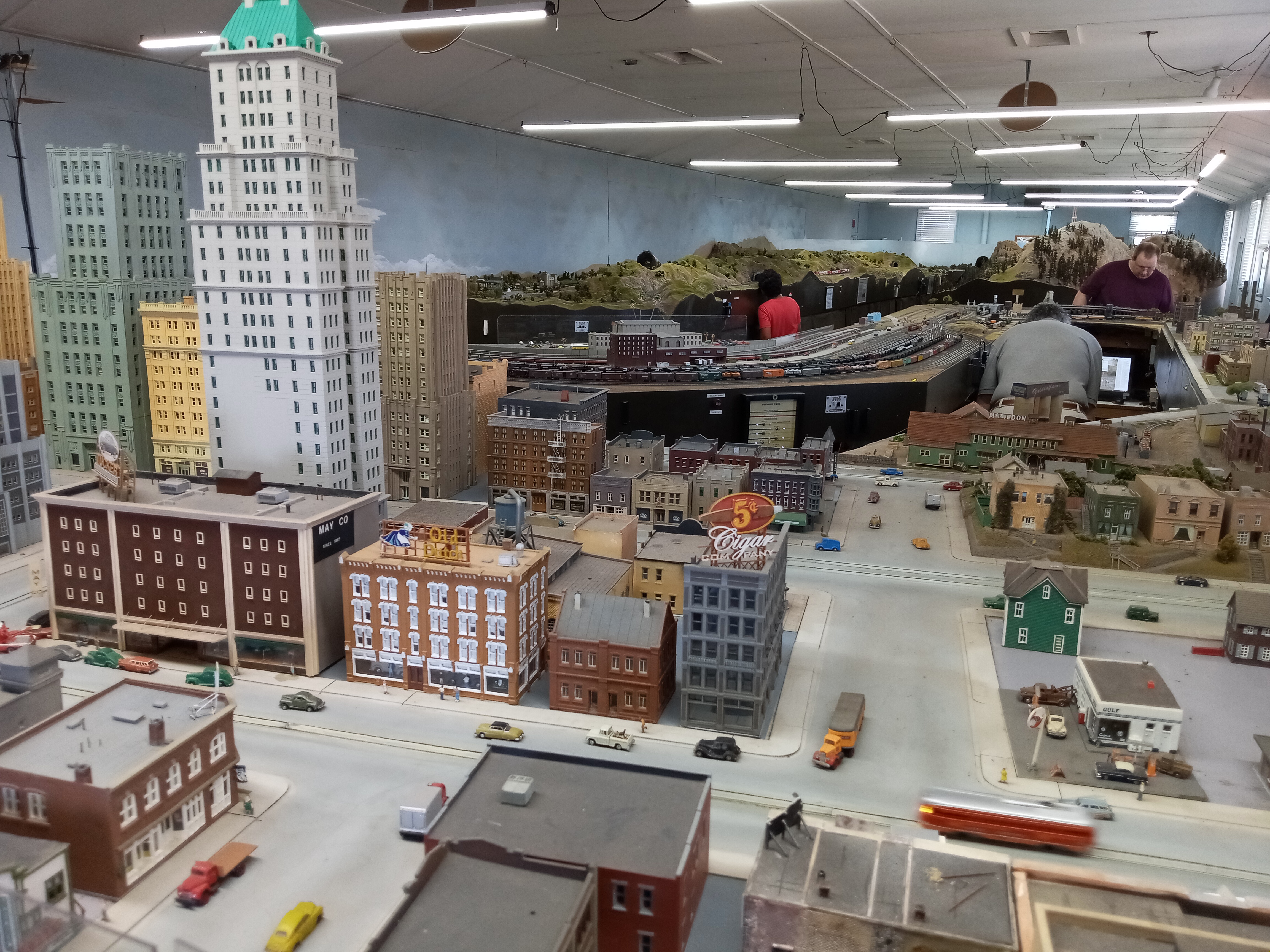 The mark of a good model railroad is attention to the little details, and this one excels with plenty of humorous scenes scattered throughout. From a man running to catch the bus to bears in the woods to a terrible car accident punctuated with a billboard that says, “Next Time, Try the Train,” there’s so much to immerse yourself in this little world. The walkways can get a little cramped; nothing upstairs is really off-limits, which means negotiating through the space with the modelers themselves (so take care not to bump into any switches!), but everyone is very pleasant. Take your time and really enjoy it all.