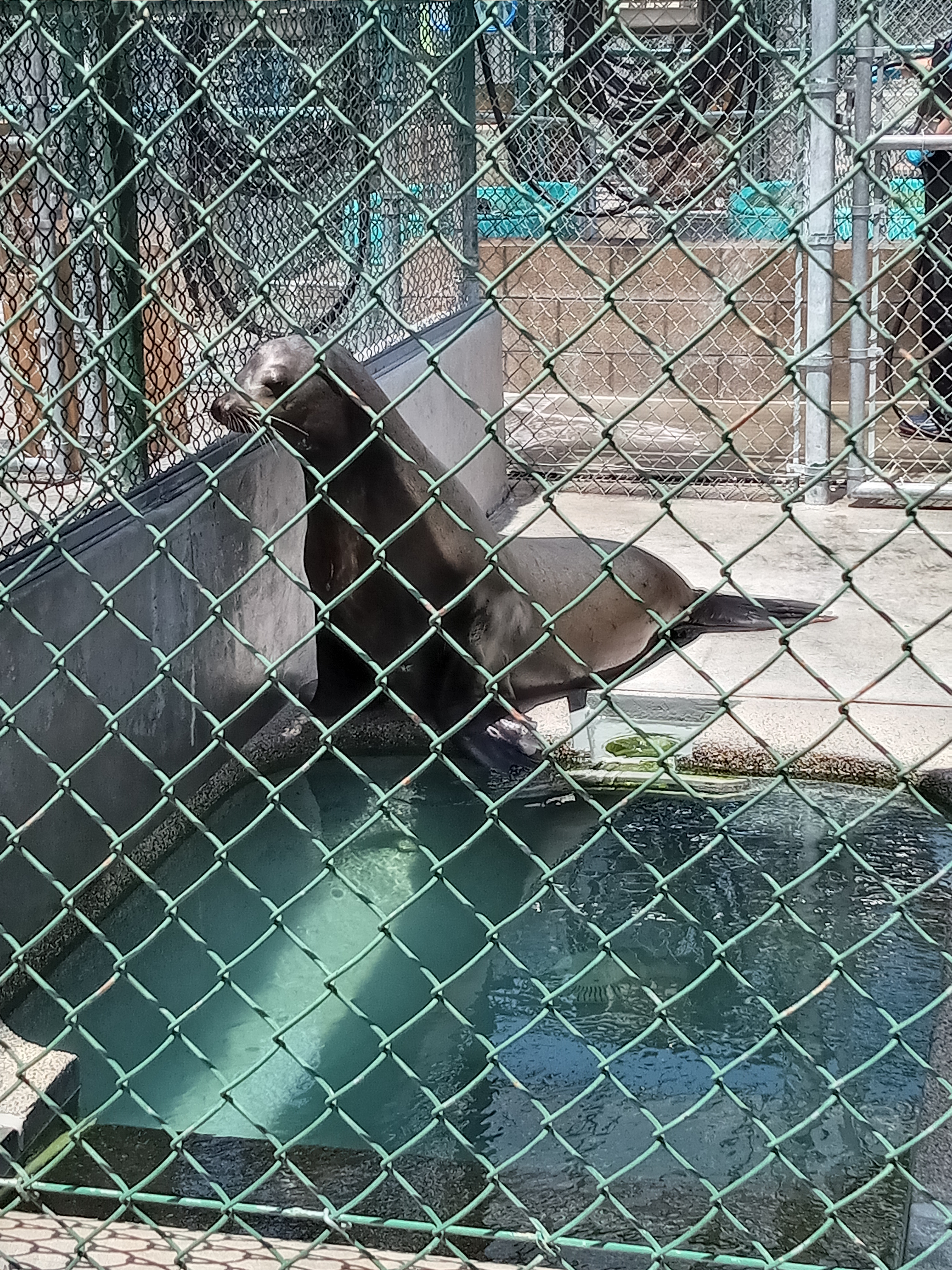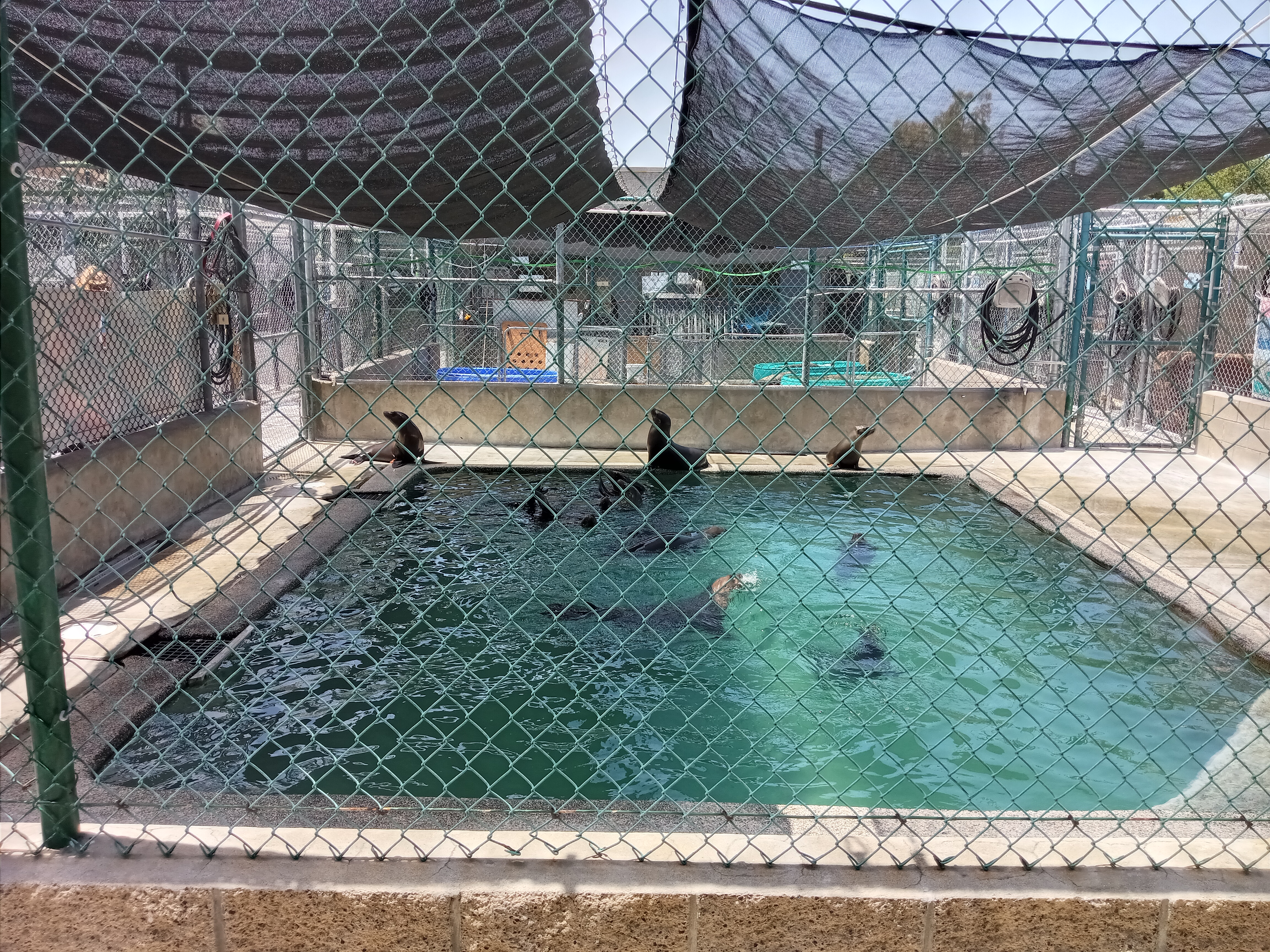 The center is currently open to the public Fridays-Mondays 10am-4pm. While they recommend reserving a time on their website, we found it quiet enough that we were able to just walk up without a reservation and immediately get a tour. On the back side of the building, you’ll find a series of pools separated by chain link fences, with certain patients isolated for their health and safety while those who are closer to full recovery get to play in groups in larger pools. The group pools are a delight to watch, as you’ll see the sea lions splashing around and barking (you might also spot the massive heron that occasionally swoops in and perches on the roof, waiting to steal any fish meant for the seals).