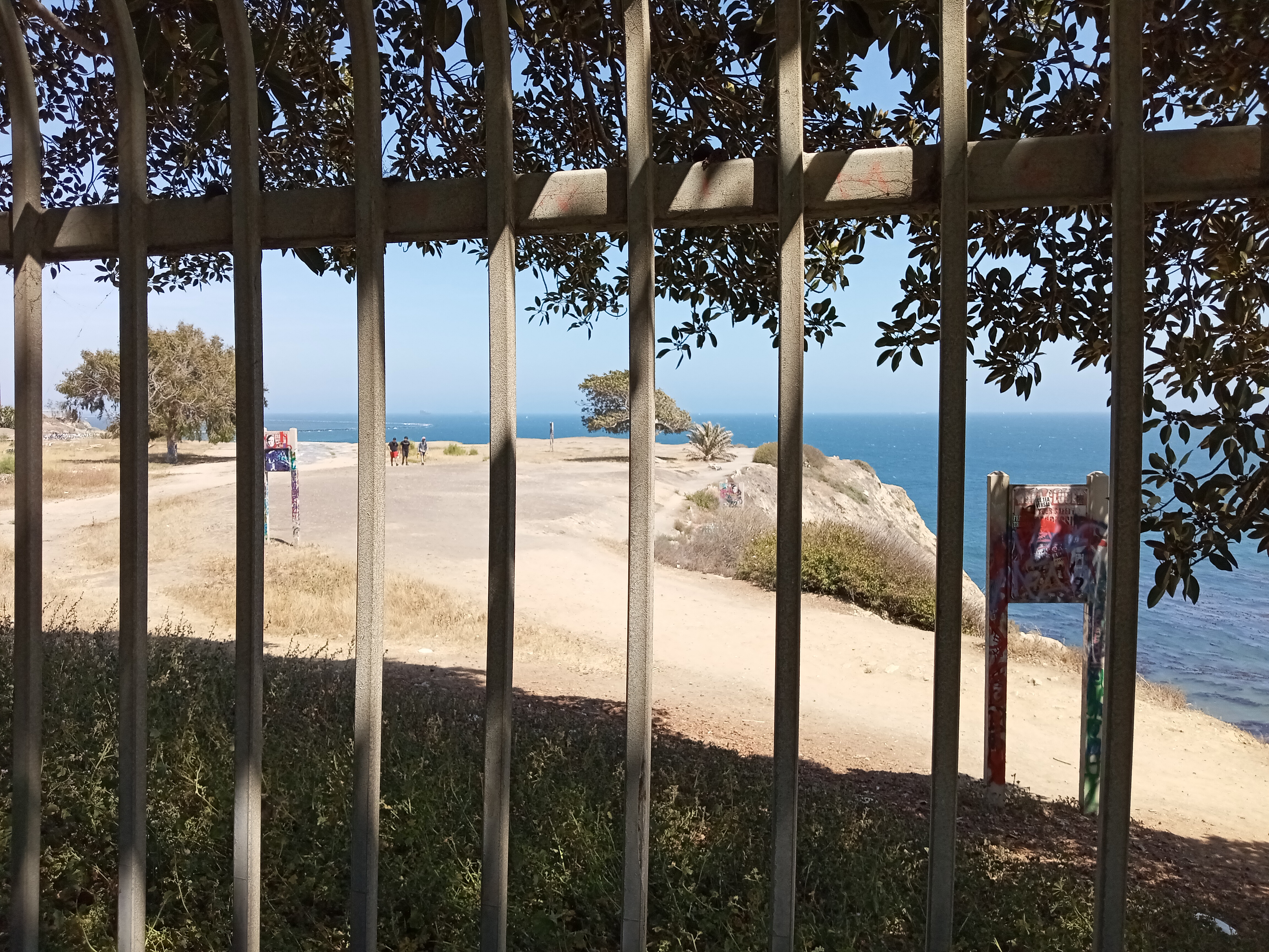 With the area fenced off by the city for safety purposes, the Sunken City took on its new identity as a semi-notorious attraction, drawing urban explorers and thrill-seeking teenagers. On any day you’ll likely see people clambering through a hole in the fence on the Point Fermin side and making their way down the cliff, where buckled remains of the street mix with protruding pipes and slabs of graffiti-covered concrete. Despite the popularity of the site, going past the fence is still illegal and carries the risk of a hefty fine if the police catch you, and they do seem to make a point of routinely dropping by (in fact, on our very first visit to San Pedro we got to the fence only to see the police already parked at the edge of the cliff, shooing out some teenagers). The closest you can get without crossing the fence is a little footpath from the end of Carolina Street, although you won’t see much from here except a few concrete foundations.