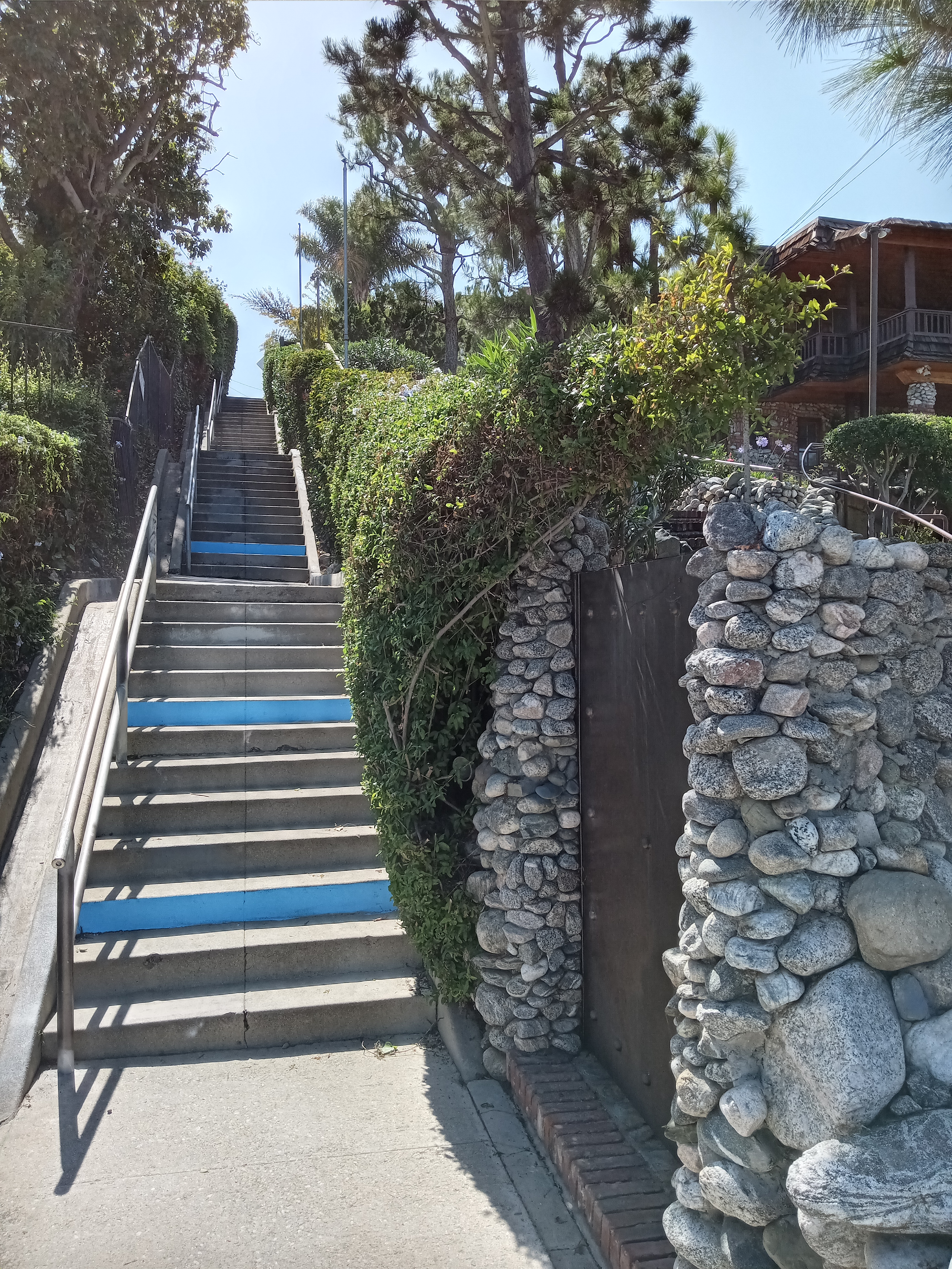 From the roundabout, make a left (towards the coast) and walk a block to Bluff Place. Just past the intersection, and just past a gorgeous house on your left with beautiful stone walls, you’ll find the base of the 39th Street Stairs, a handy and scenic way to ascend into the neighborhood proper. From the top of the stairs, you’ll get some really nice views over the harbor. Continue up 39th Street and you’ll reach Pacific Avenue, where there’s a cute little corner store next door to a pair of diners, the Pacific Diner and the Lighthouse Cafe, which are both open for breakfast and lunch and are a great place to grab a bite and relax a bit before continuing on.
