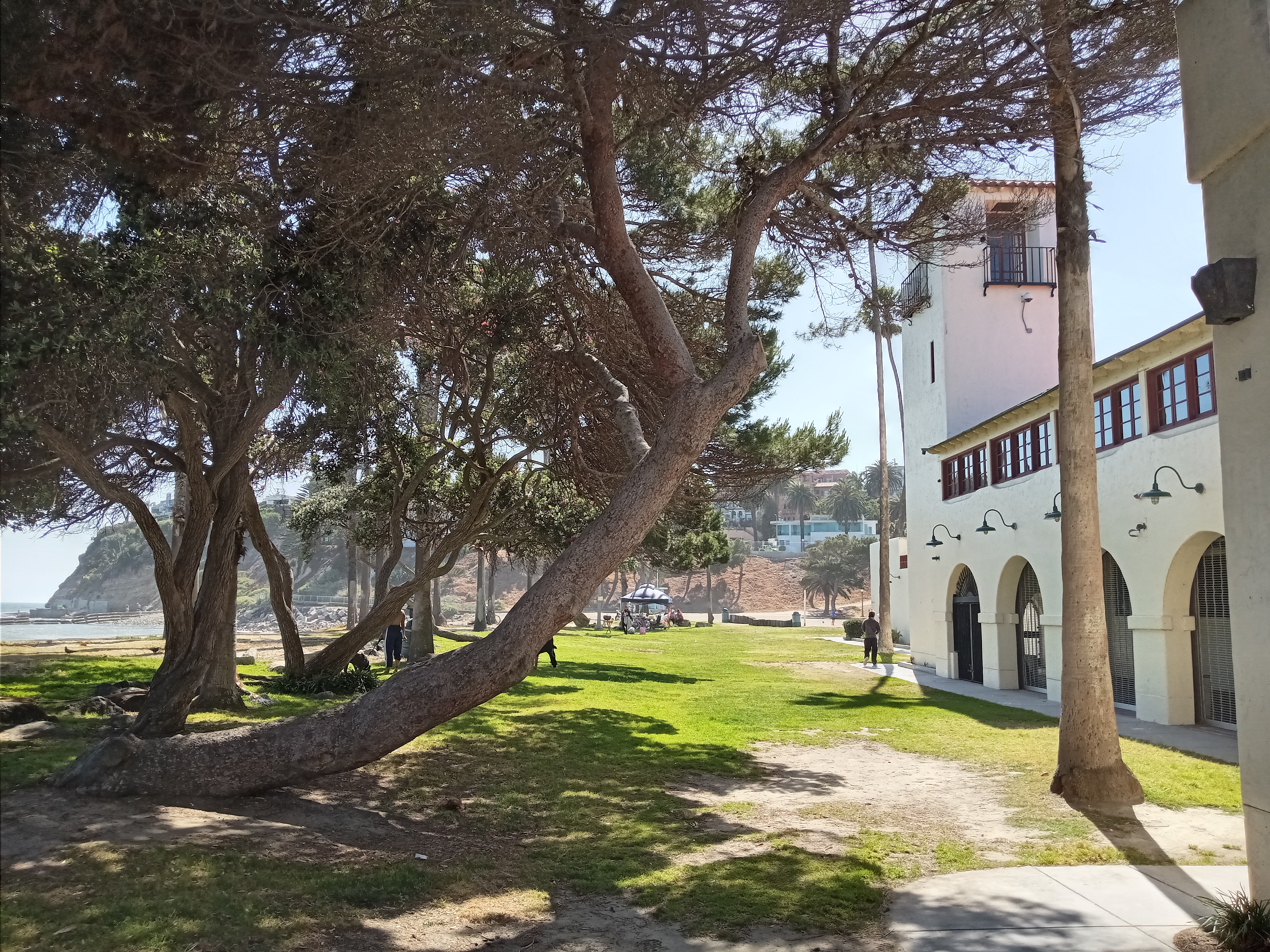 At Shepard and Gaffey Avenue, you’ll spot grassy Point Fermin Park perched above the coast. This wonderful park is full of lush lawns and huge, shady fig trees that make it the ideal spot for a picnic, not to mention the cliffside walkway that offers great views of the crashing waves below. A playground and a decent pair of public restrooms are also located here, on the backside of a little park amphitheater.