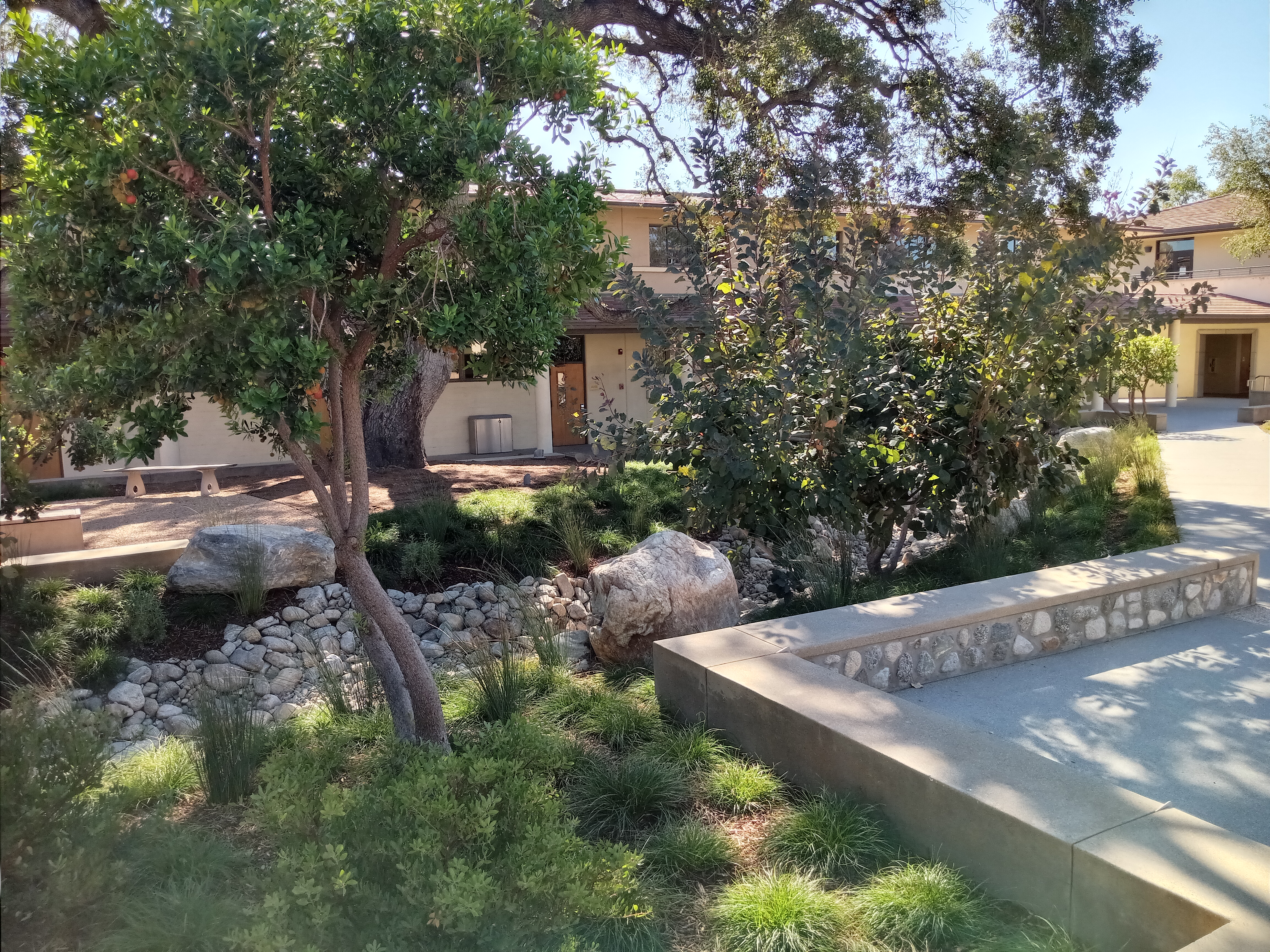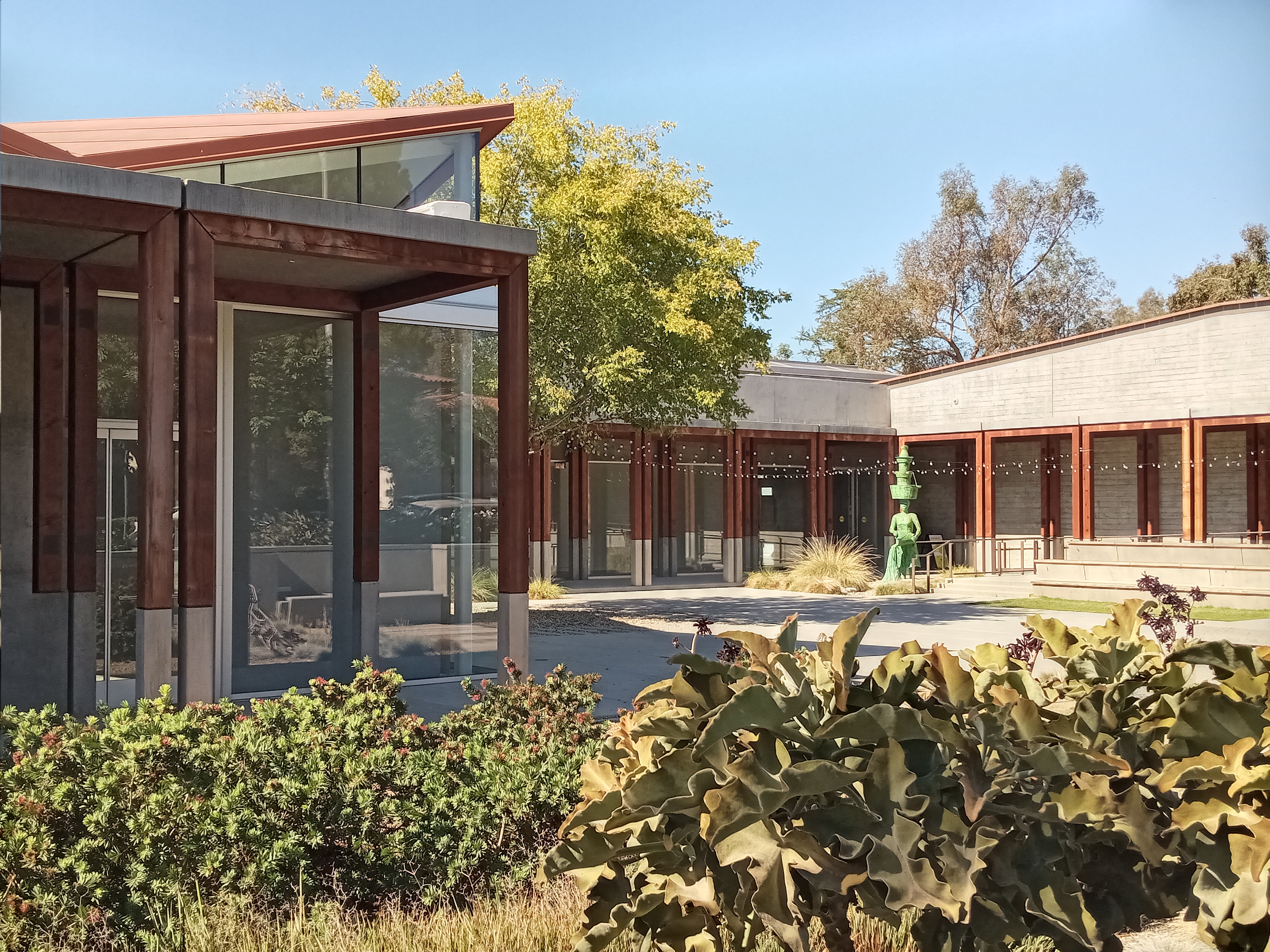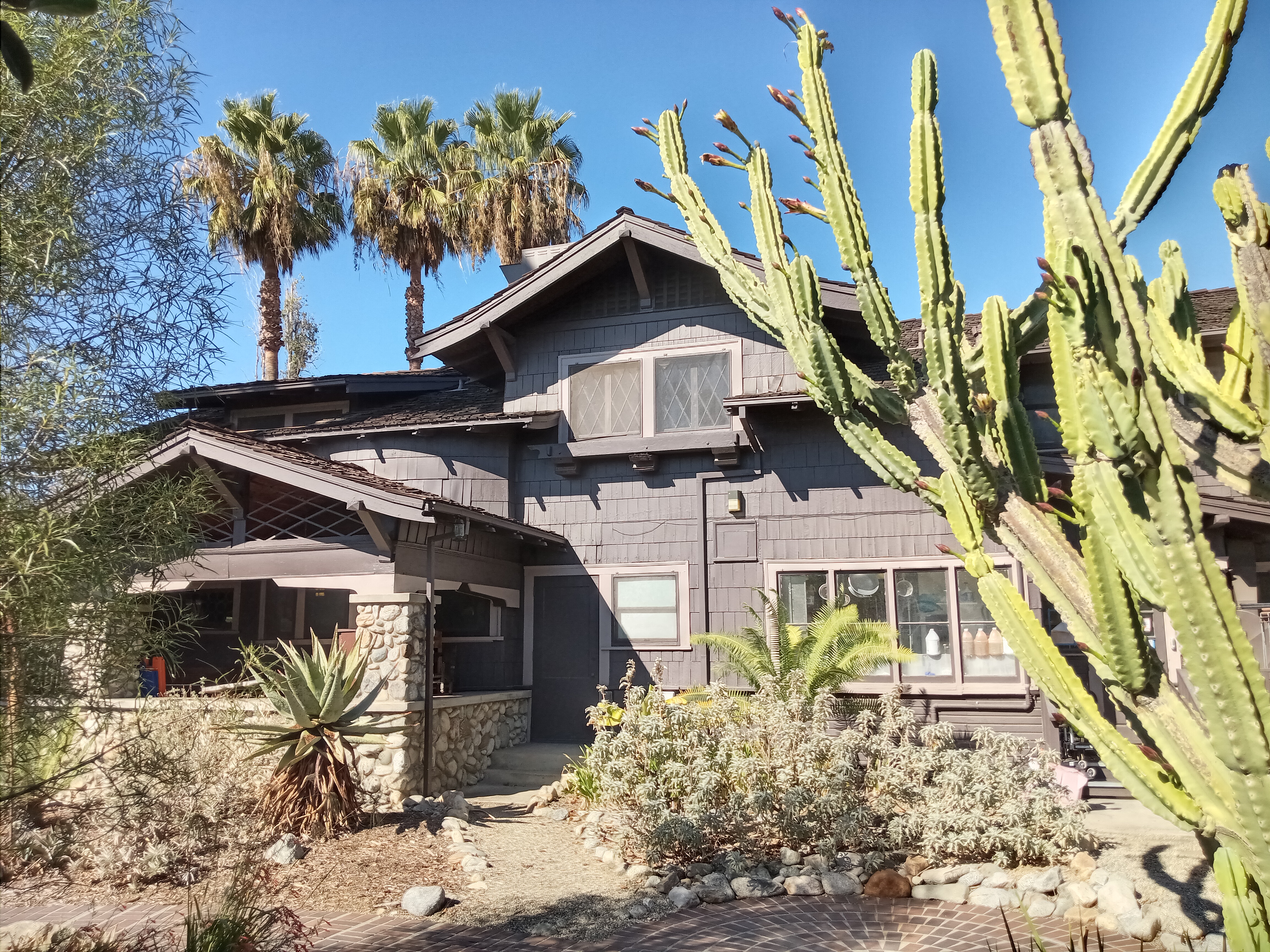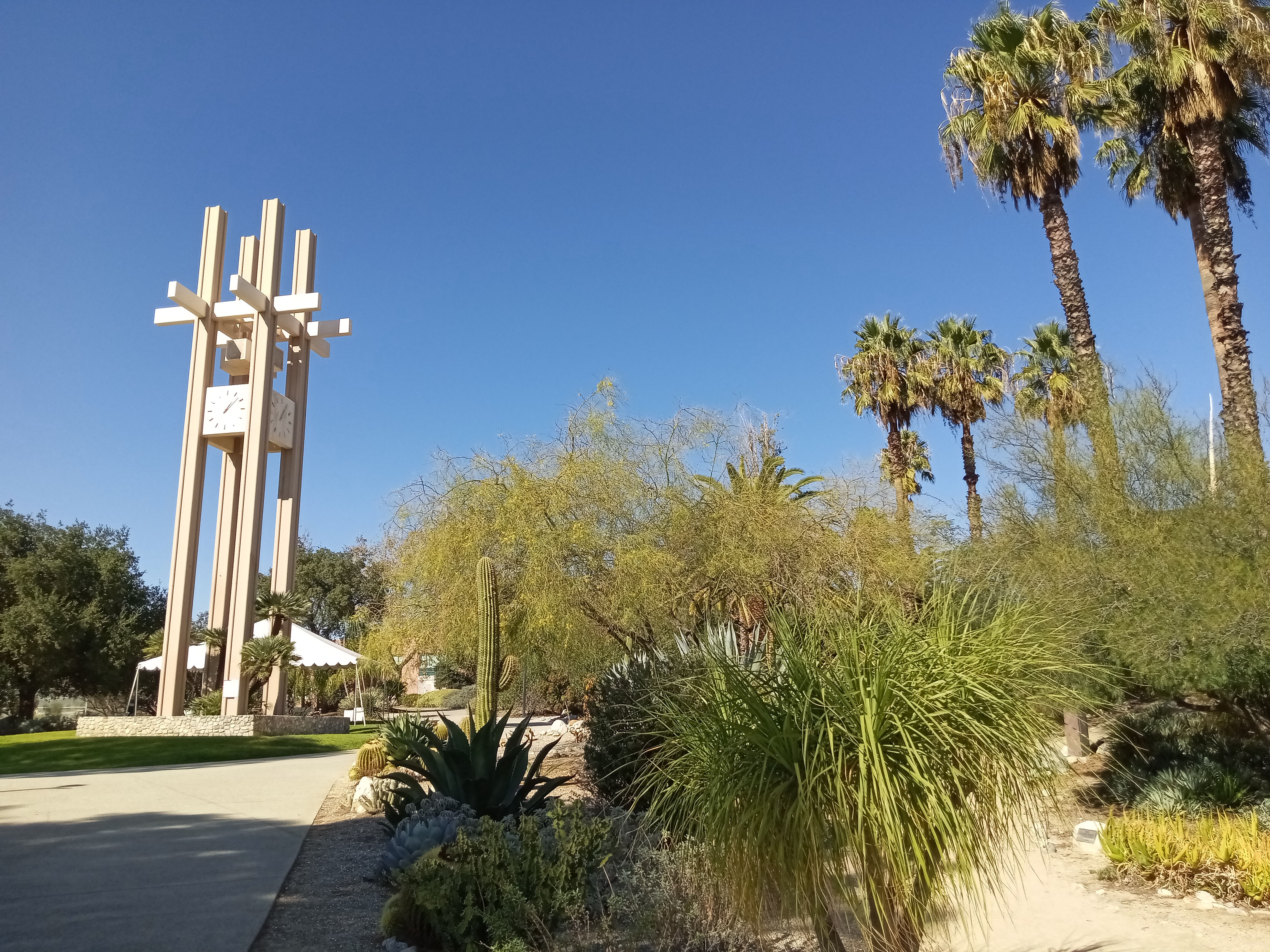 The only truly historic structure on campus is the Grove House, a gorgeous California bungalow that was moved to the very center of campus and which serves as a student hangout today. The house is surrounded by a lush desert garden and a citrus grove, with a shady trellis sheltering a set of picnic tables. It sits directly across from the modernist clock tower, which you can spot from just about anywhere on campus.