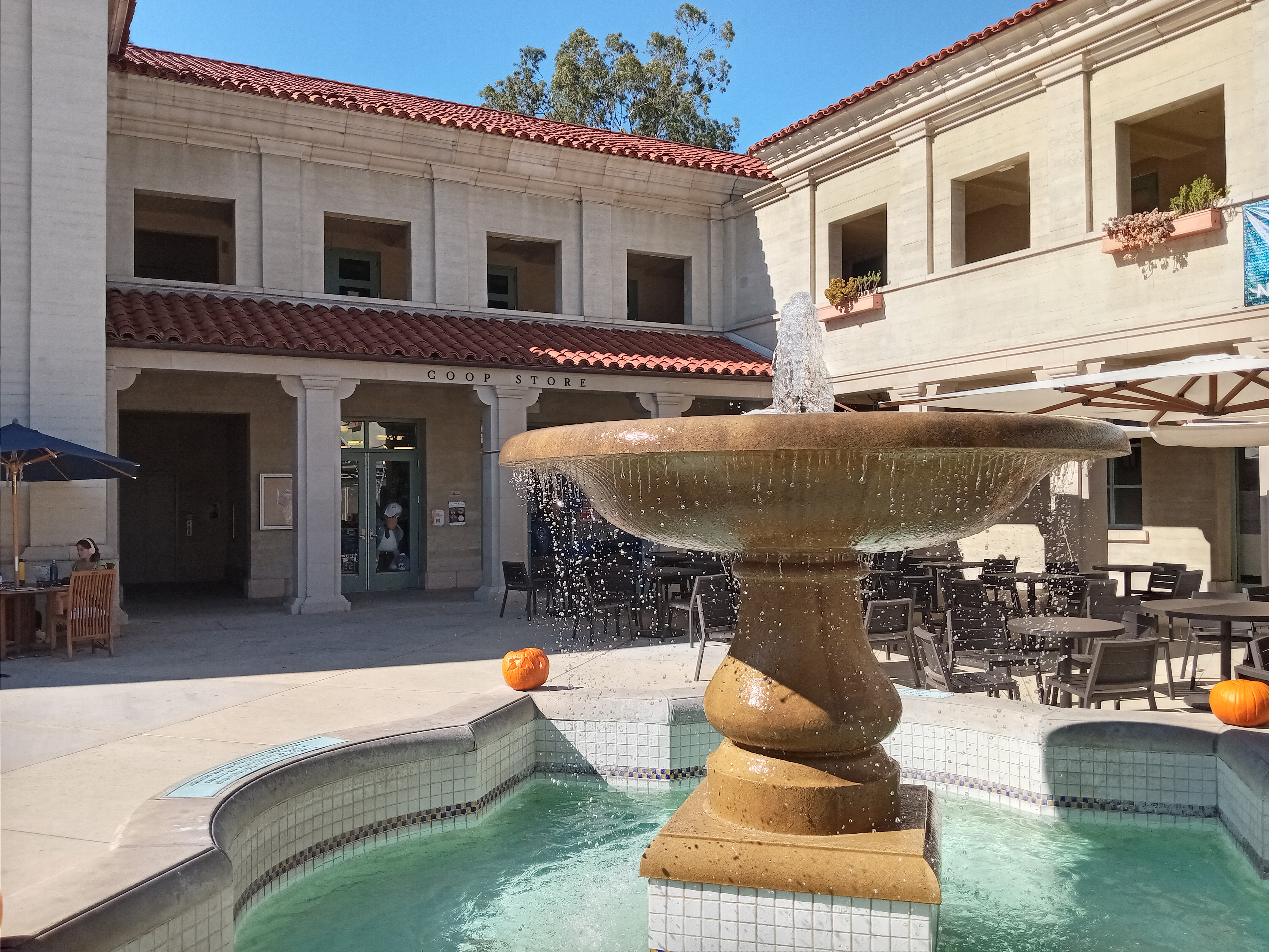 On the north side of the quad is the student center (“the coop”), which has a pleasant courtyard with a fountain out front where you’ll find a coffee shop and a store which sells plenty of merch featuring Pomona College’s surprisingly cute mascot, the Sage Hen.