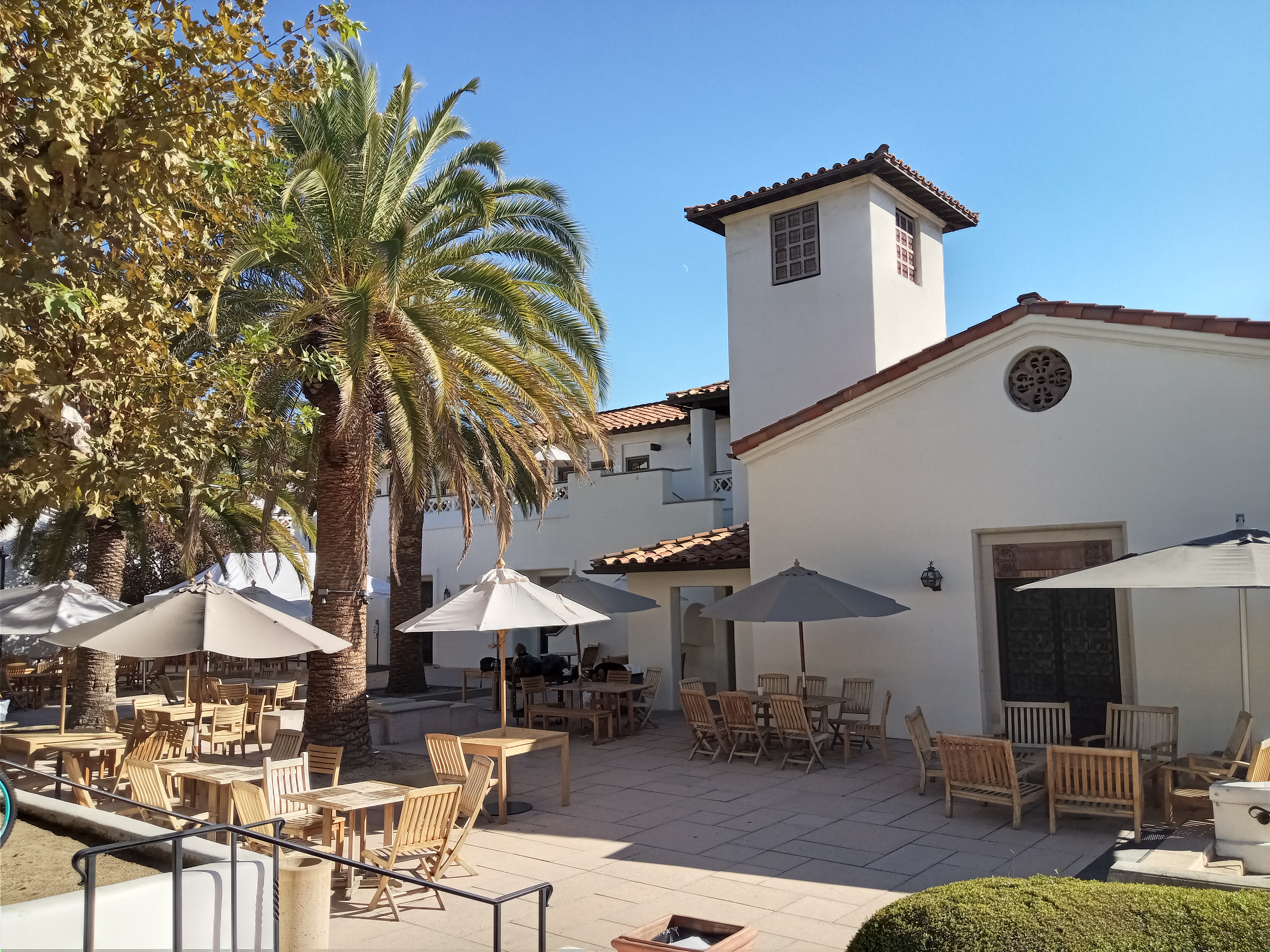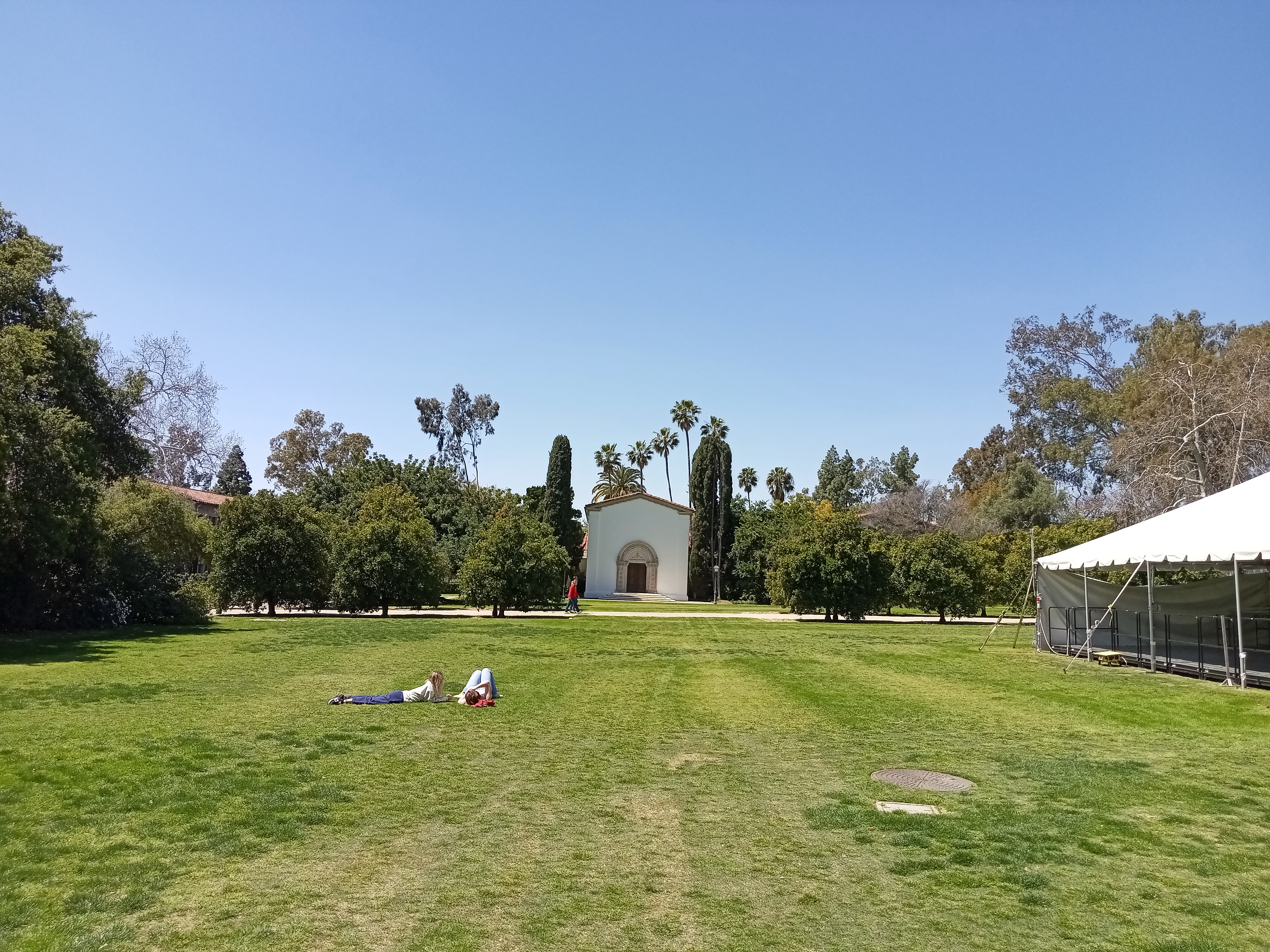 From the Benton Museum, walking up College Avenue just a block will take you past a row of old Victorian houses (now converted into various college functions) and right into the heart of campus. Here, Marston Quad stretches for a couple blocks from the striking neoclassical Carnegie Hall (formerly a Carnegie library) to the Bridges Auditorium (a large performing arts venue) at the other end. The quad itself is really nice, with a small grove of redwood trees framed by Spanish Revival buildings.