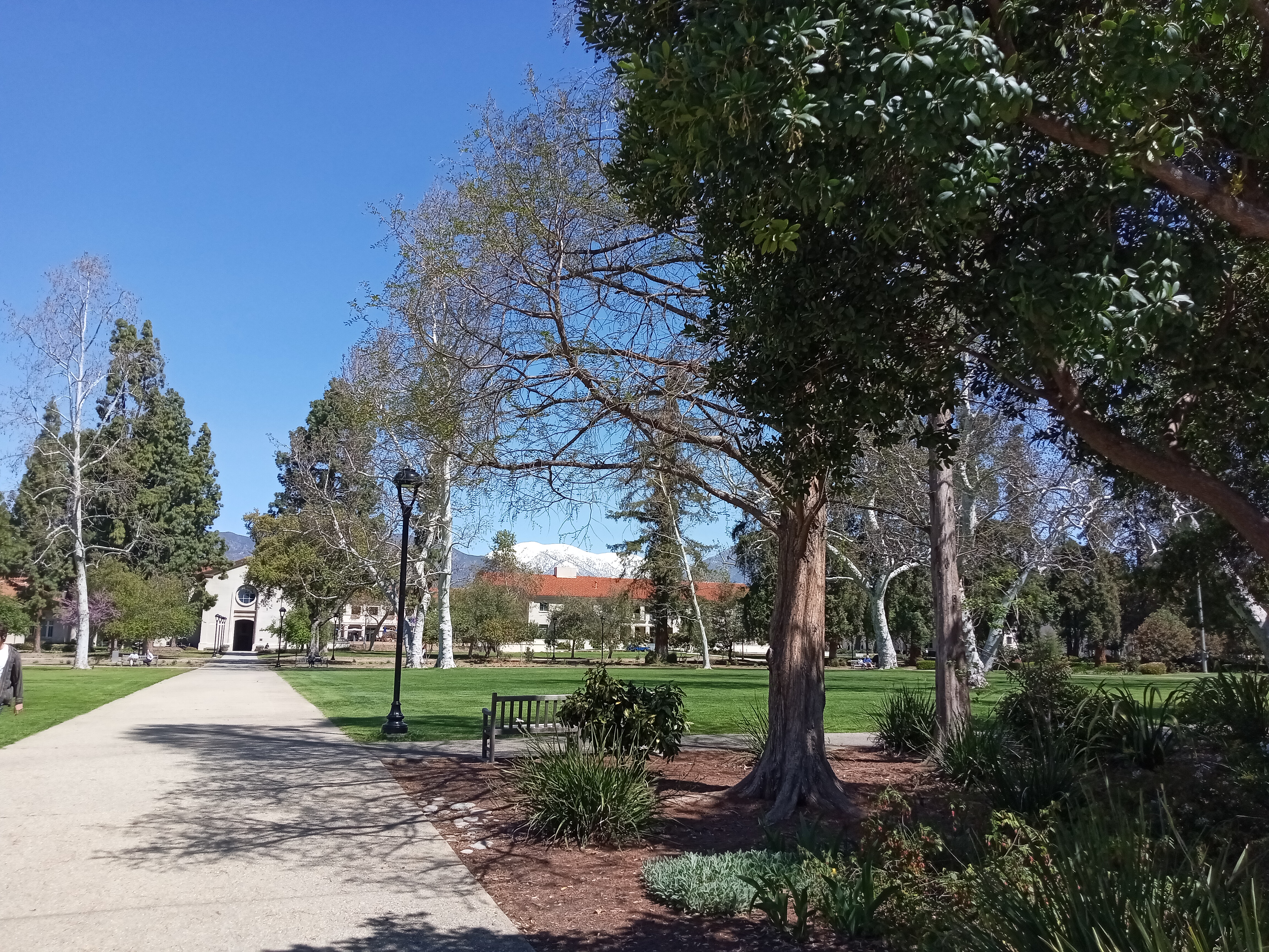 Continuing across the street, you’ll enter the first of the Claremont Colleges, Pomona College. The Claremont Colleges are a consortium of several colleges, the idea of which was for each one to maintain the focus of a small liberal arts college (each college has a student population of only around a thousand) while sharing certain resources (namely a large central library that’s shared by all the colleges) to draw on the advantages of a larger university. Pomona College is the oldest and largest of the group, with a very nice campus to match.