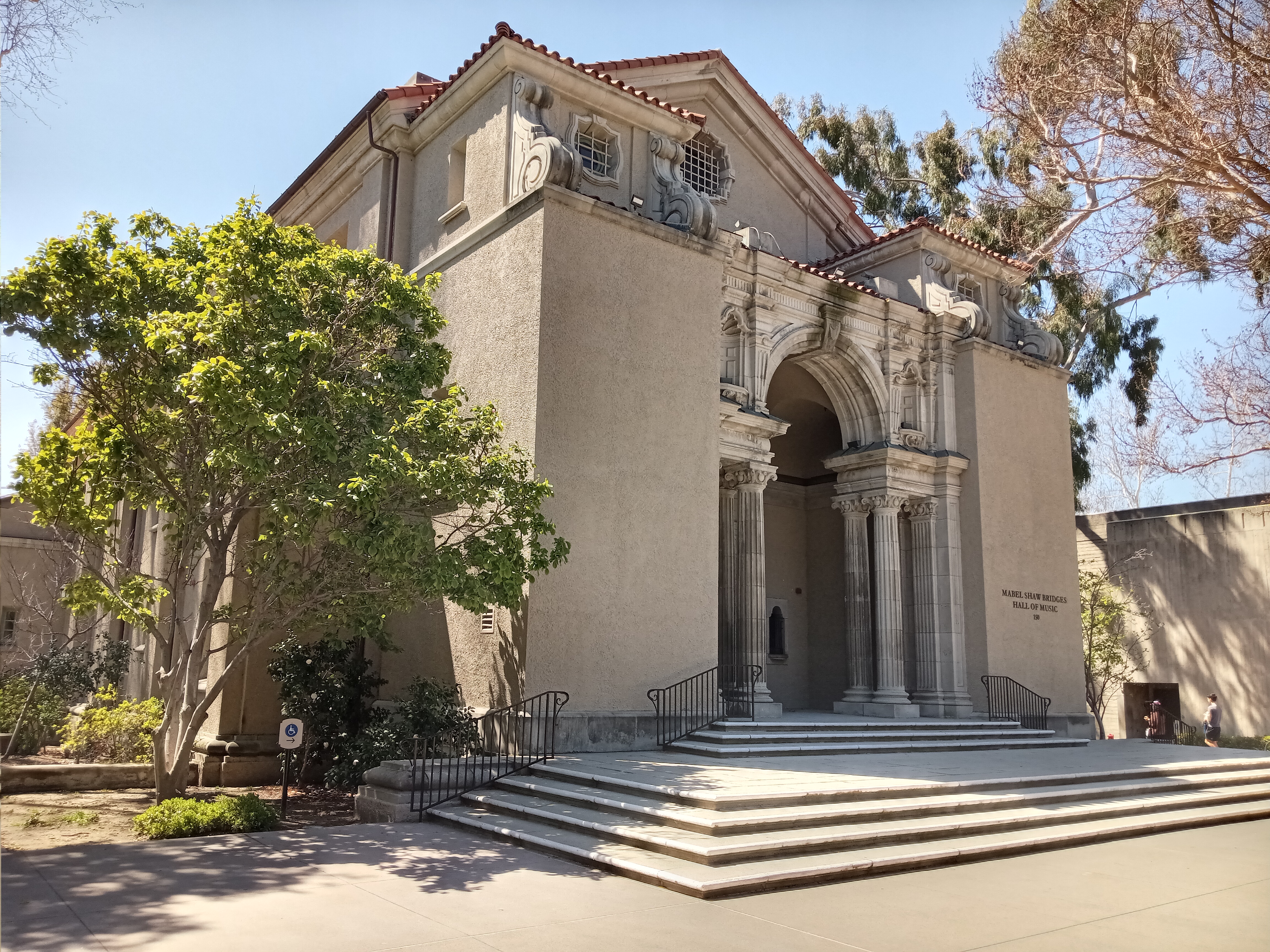 The south side of the quad is adorned by the Bridges Hall of Music, a lovely building dating back to 1915 and made to resemble a small Spanish church. The music hall was designed by Myron Hunt, who in addition to coming up with Pomona College’s campus master plan, was an incredibly prolific architect who was beloved by the Pasadena elite of the early 1900s, designing numerous mansions, hotels, and civic buildings, including the Pasadena Central Library, the Rose Bowl, and the Huntington Mansion and Library.