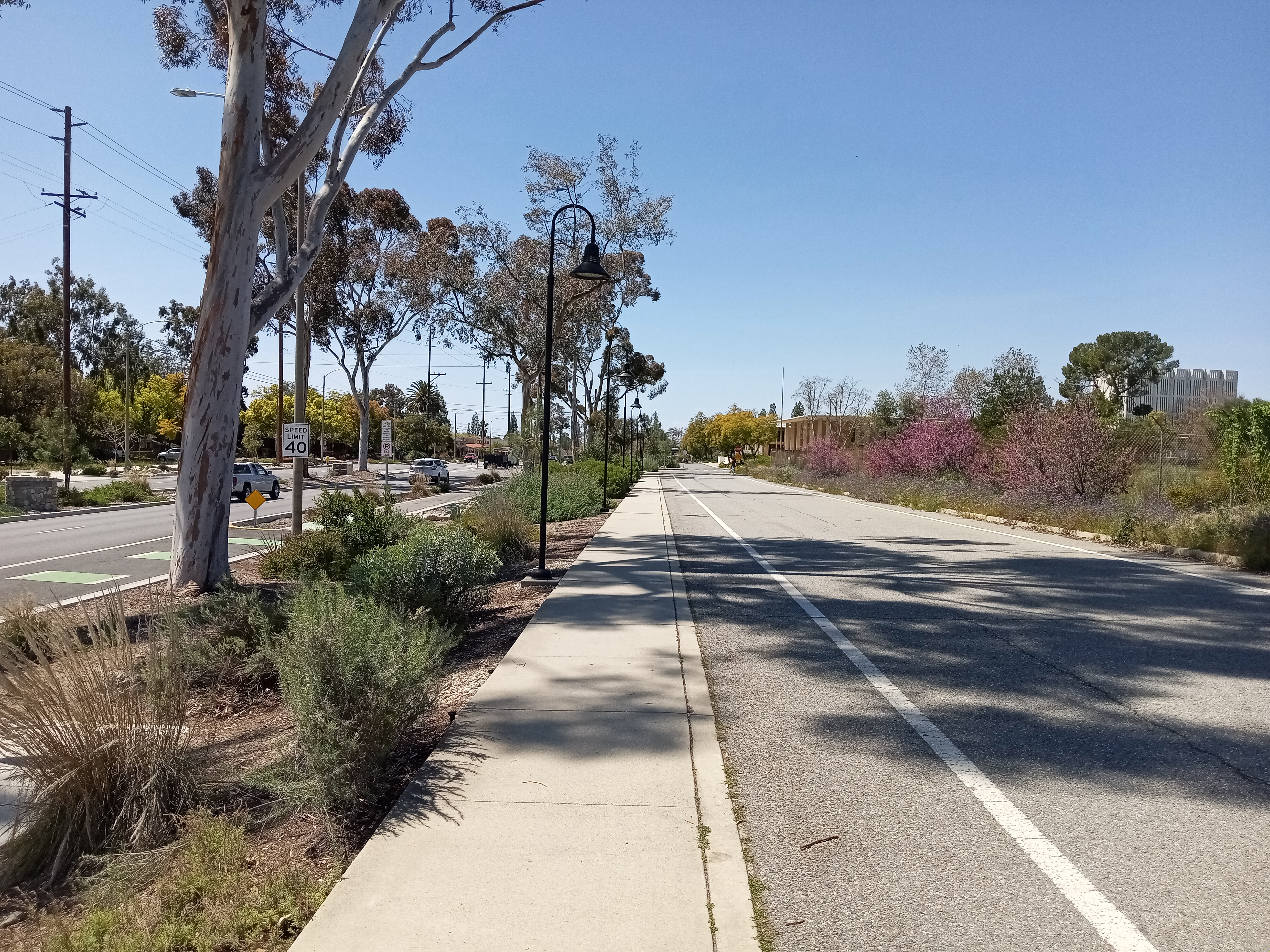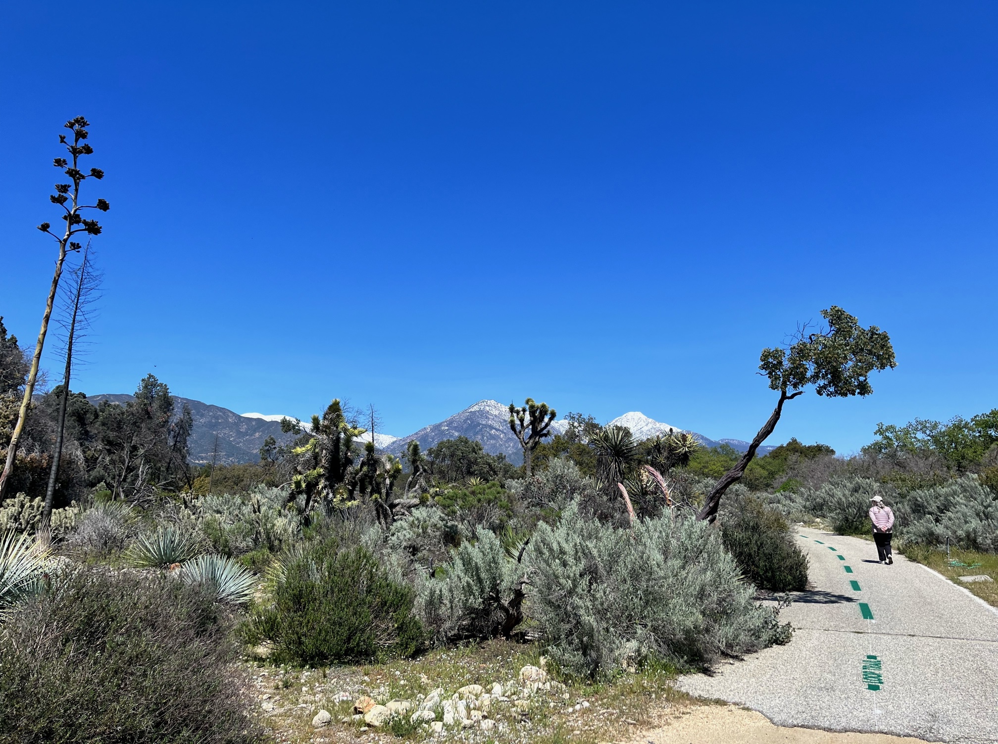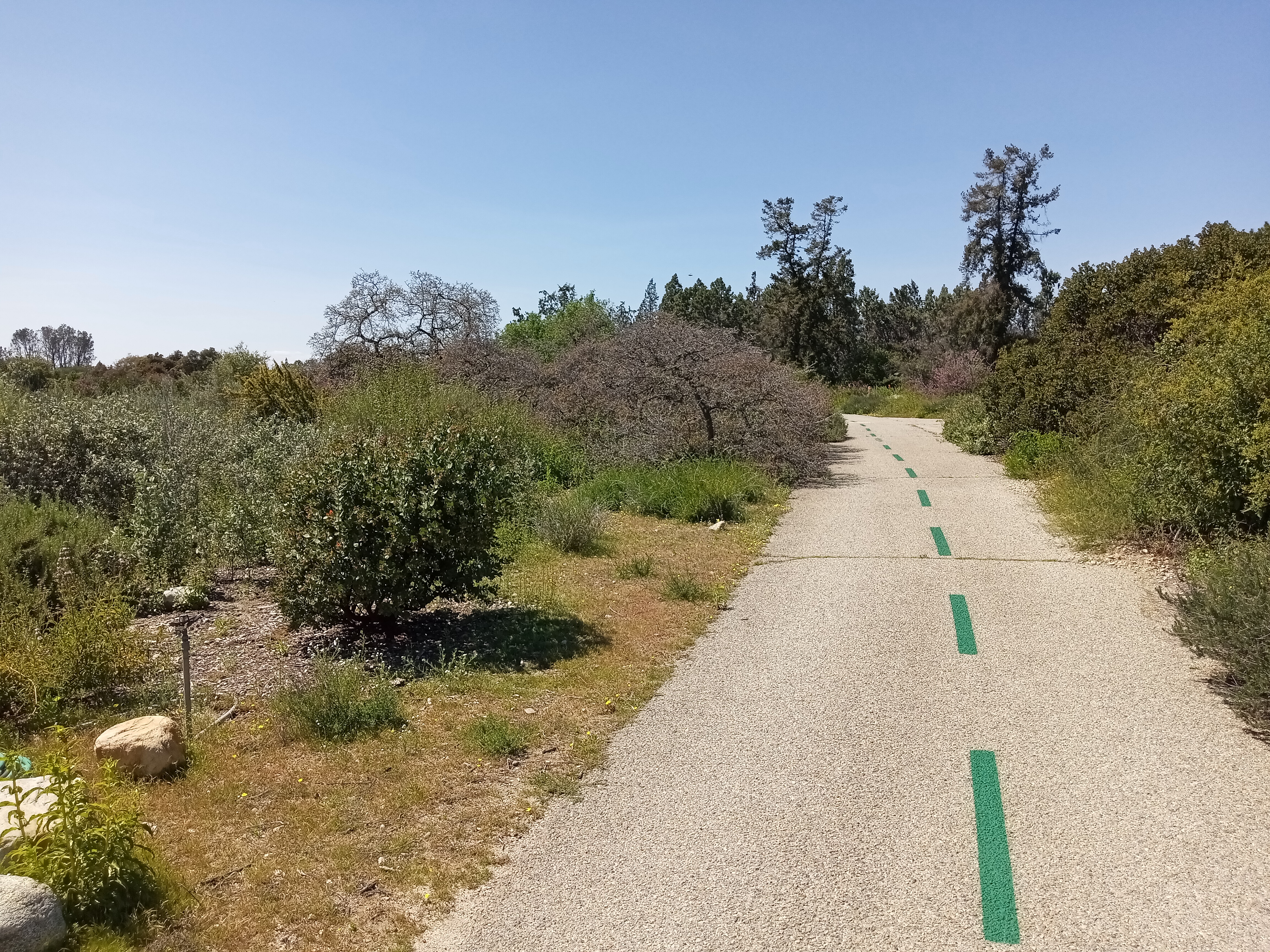 We’ve wrapped up the colleges, but there is another attraction further north: the California Botanic Garden. Walking there requires crossing Foothill Boulevard at Dartmouth Avenue, on the northwestern corner of Harvey Mudd College (this is the only place you’ll find a traffic light for several blocks), then walking along the sidewalk of a frontage road on the north side of Foothill a block to College Avenue, where you then make a right and walk up the street, between the campus of the Claremont School of Theology on your left and the Bernard Biological Field Station on your right, which preserves a large section of native chaparral that managed to escape development and has now been set aside for study. Take note that while this section of the walk isn’t difficult, there’s also not a whole lot of shade on the way either, so it might be something to avoid in hot weather.