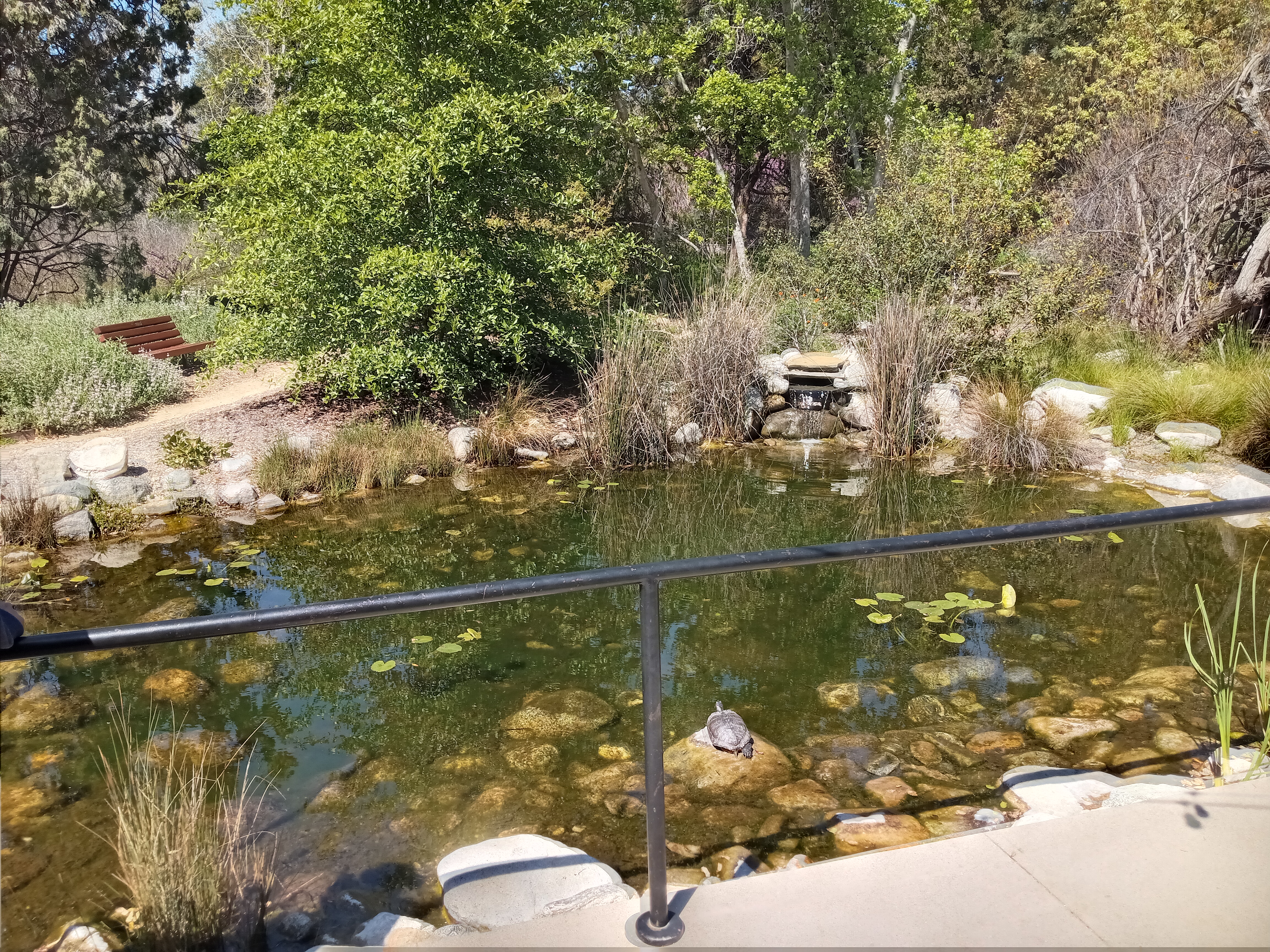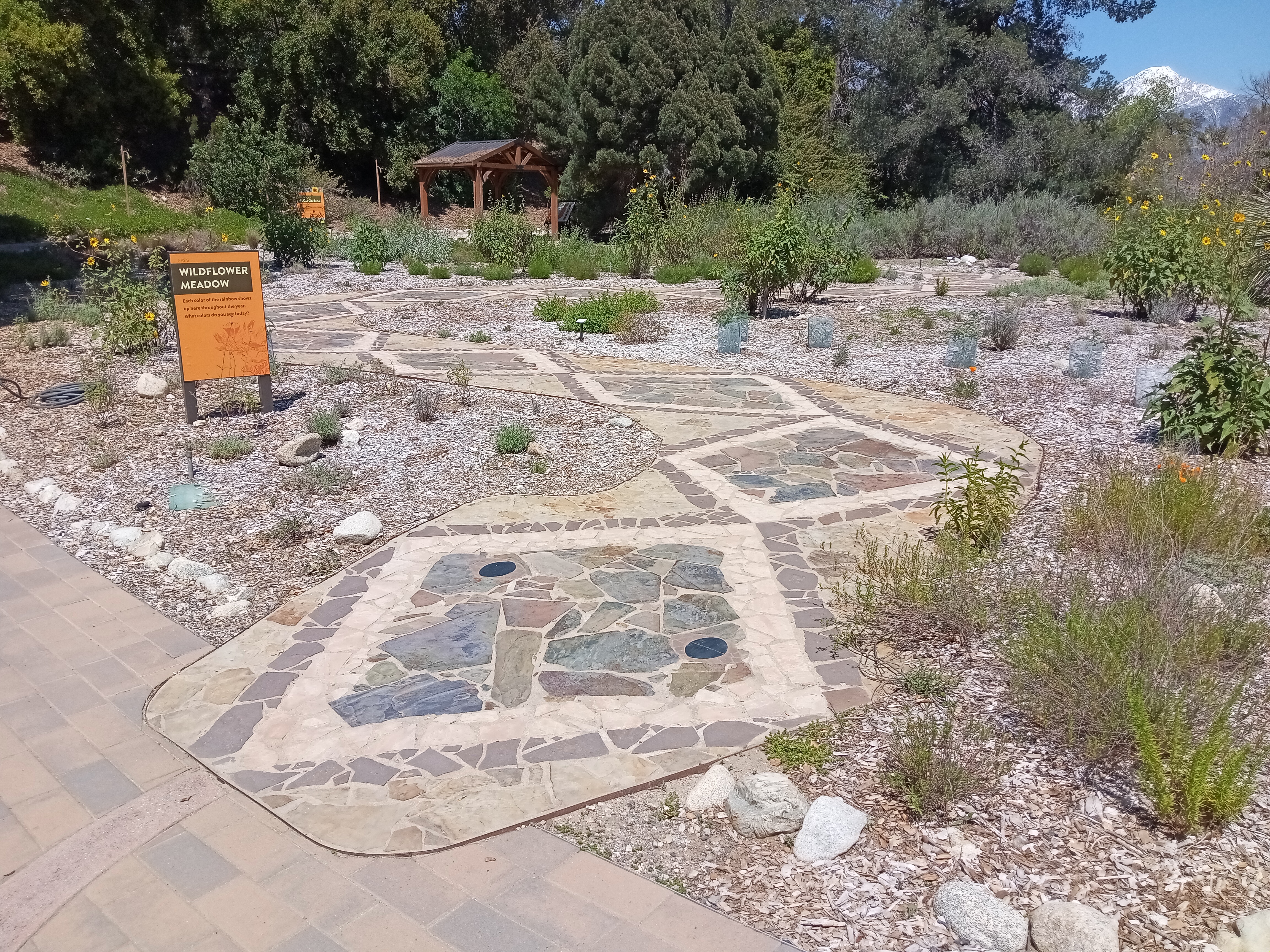 The Mesa Gardens, per their name, cover the top of a short mesa that sits astride the SoCal Gardens, with a pair of ramps leading up to the mesa. The administration building sits at the front of the mesa, with a lovely water-wise garden out front with a paper crane sculpture. The Mesa Gardens are very shady with lots of meadows full of native flowers, a pair of small ponds that attract wildlife, and some kid-friendly displays explaining the local ecology and how wildlife interact with the plants.