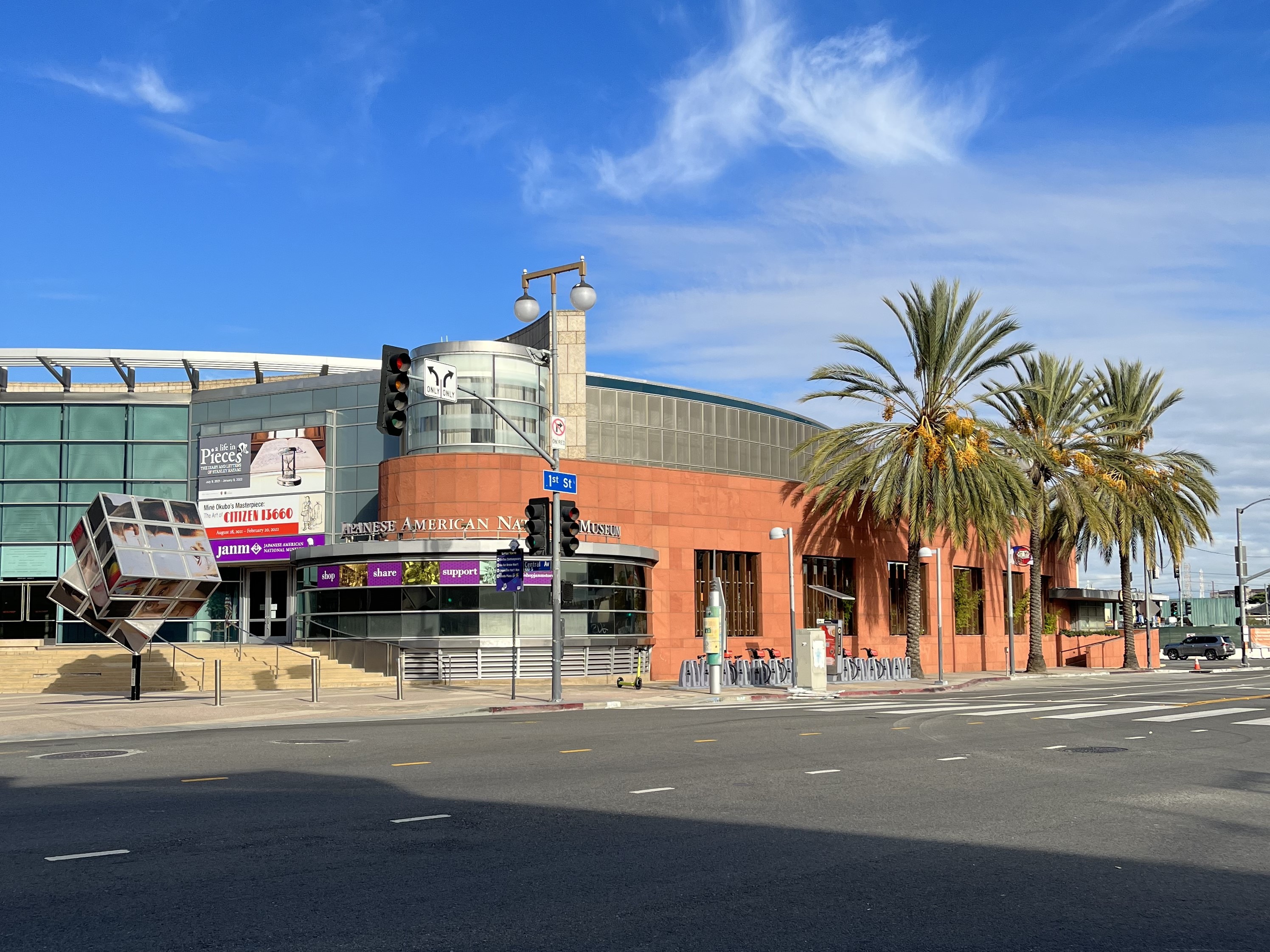 Directly across 1st Street just to the north is the Japanese American National Museum, which has an excellent exhibition upstairs on the history of the Japanese American communities of Southern California, with extensive exhibits and artifacts related to the internment of Japanese Americans during WWII. The museum also frequently has excellent changing exhibitions on Japanese American history and culture. Current admission is $16, with discounts for students, seniors, and children.
