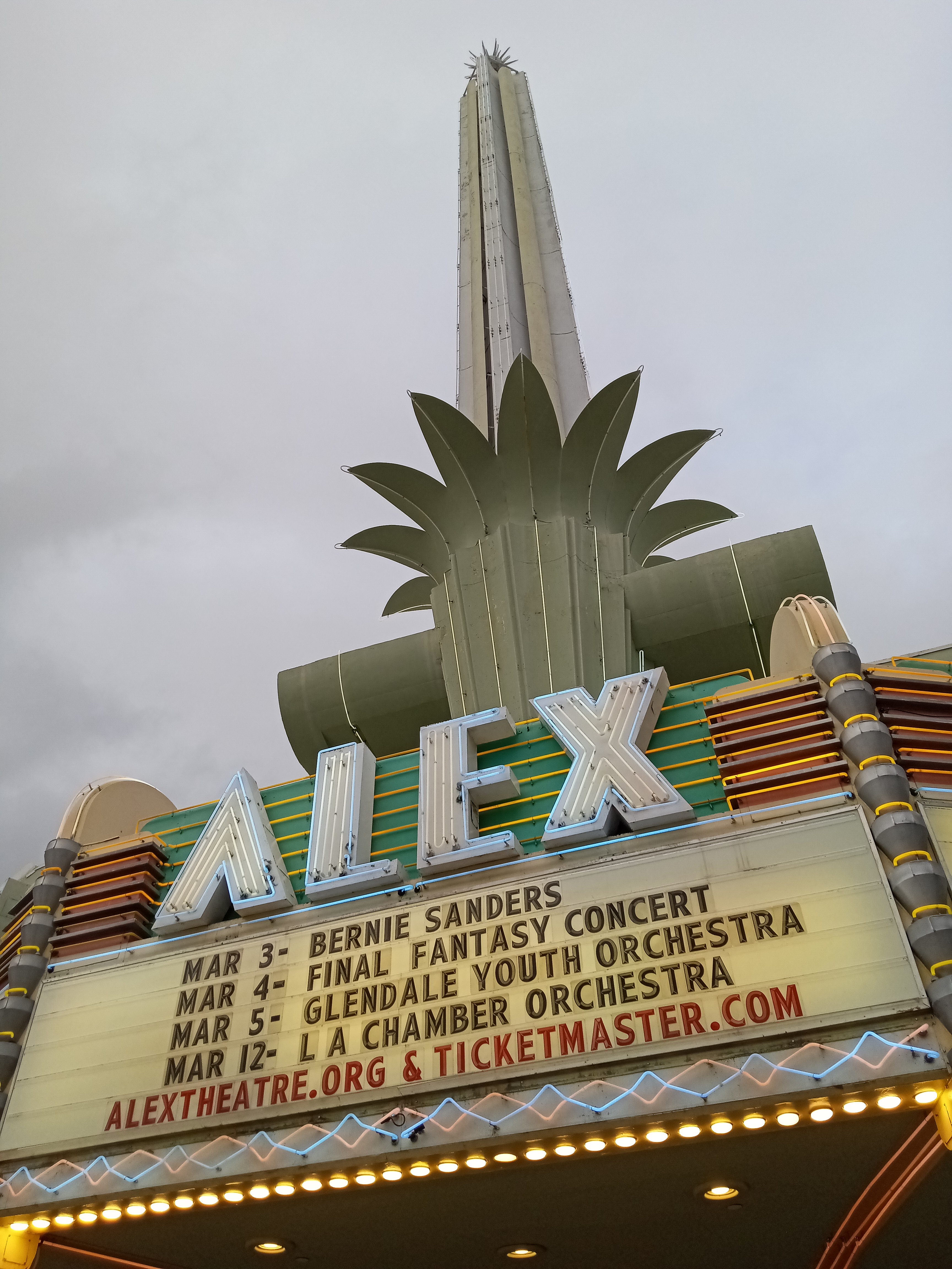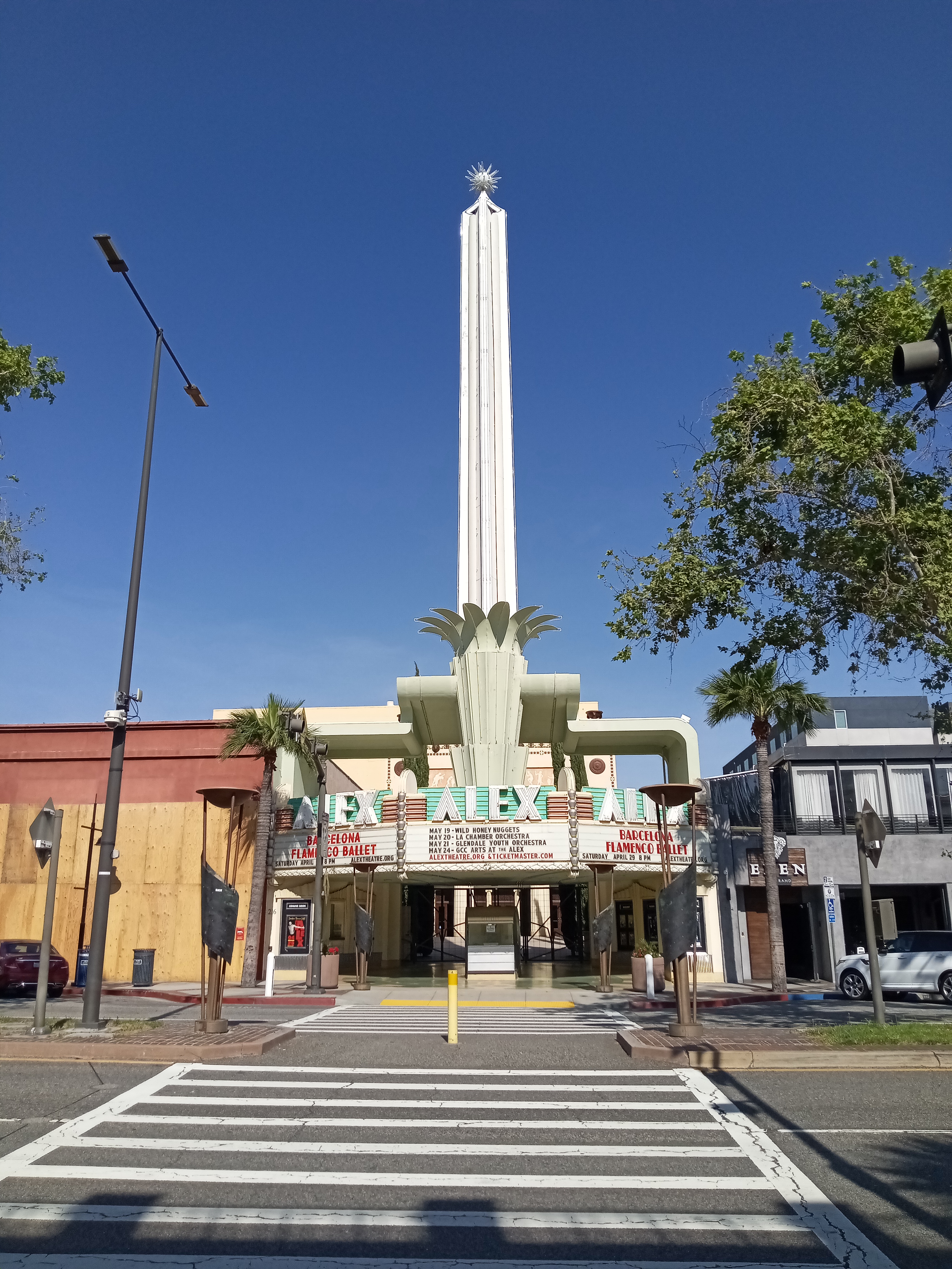 North Brand: One of the main commercial strips of Glendale, Brand north of Broadway is home to a lot of stores and restaurants, including some of the most popular and beloved eateries in a town spoiled for good food. The main architectural landmark on this stretch is the Alex Theater, a performing arts and concert venue run by the city in a gorgeous 1920s Art Deco theater, with some Egyptian architectural flourishes. The theater’s palm tree-esque spire stands proudly against the backdrop of the Verdugo Mountains. And not to be forgotten is a location of local indie movie theater chain Laemmle, which sits around the corner behind the Alex on Wilson Avenue.