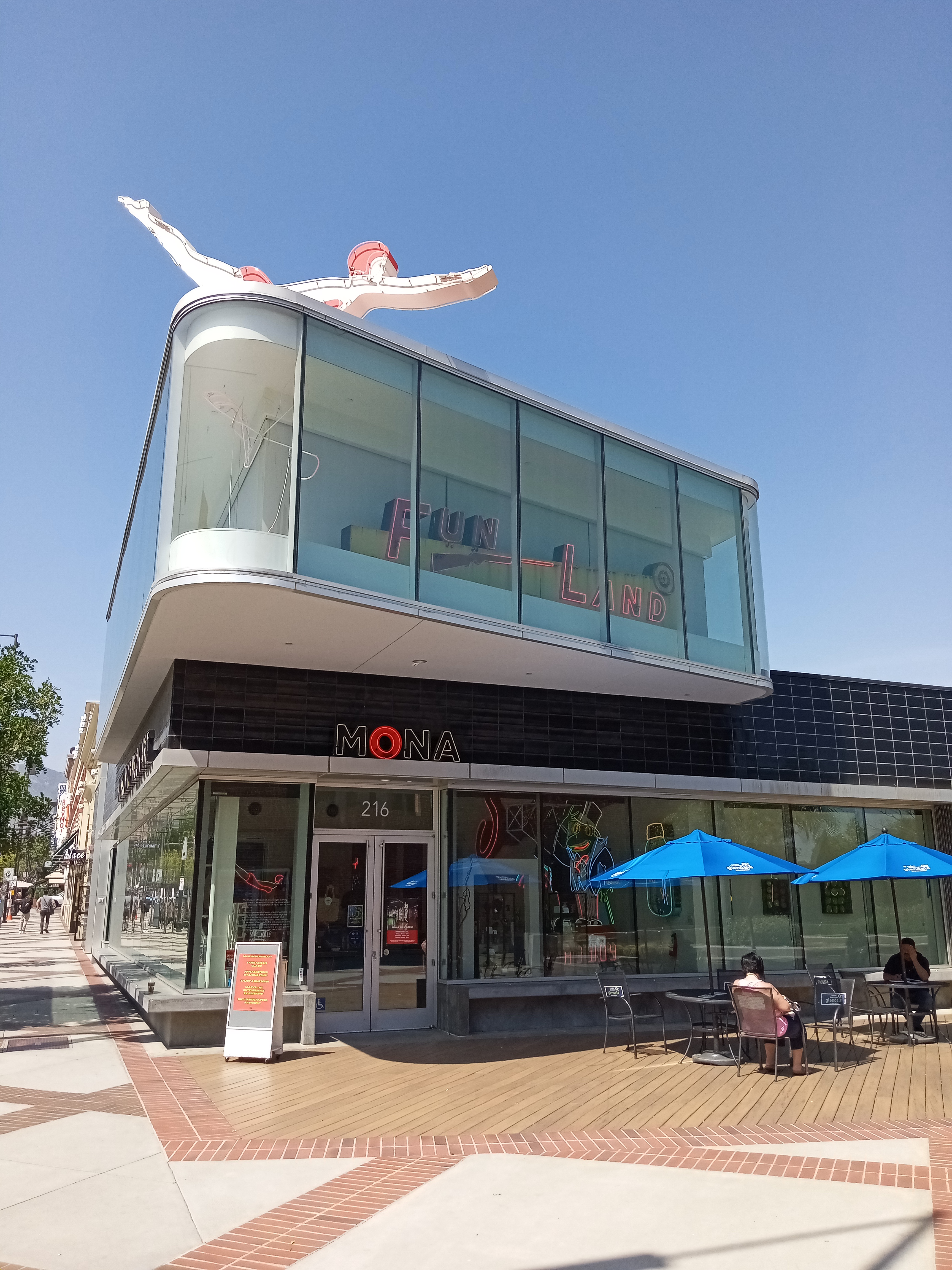 Museum of Neon Art: Across Brand from the Americana, you’ll immediately be able to spot the Museum of Neon Art (MONA) from the iconic diving lady neon sign perched on top, a replica of an identical sign the museum inherited from a roadside motel. A set of historic replicas stands on the walkway outside, including the fun “leaky faucet” sign of Clayton Plumbers, formerly of Westwood. MONA is dedicated both to the preservation of historic neon signs and showcasing contemporary neon art, and you’ll find stellar examples of both inside.