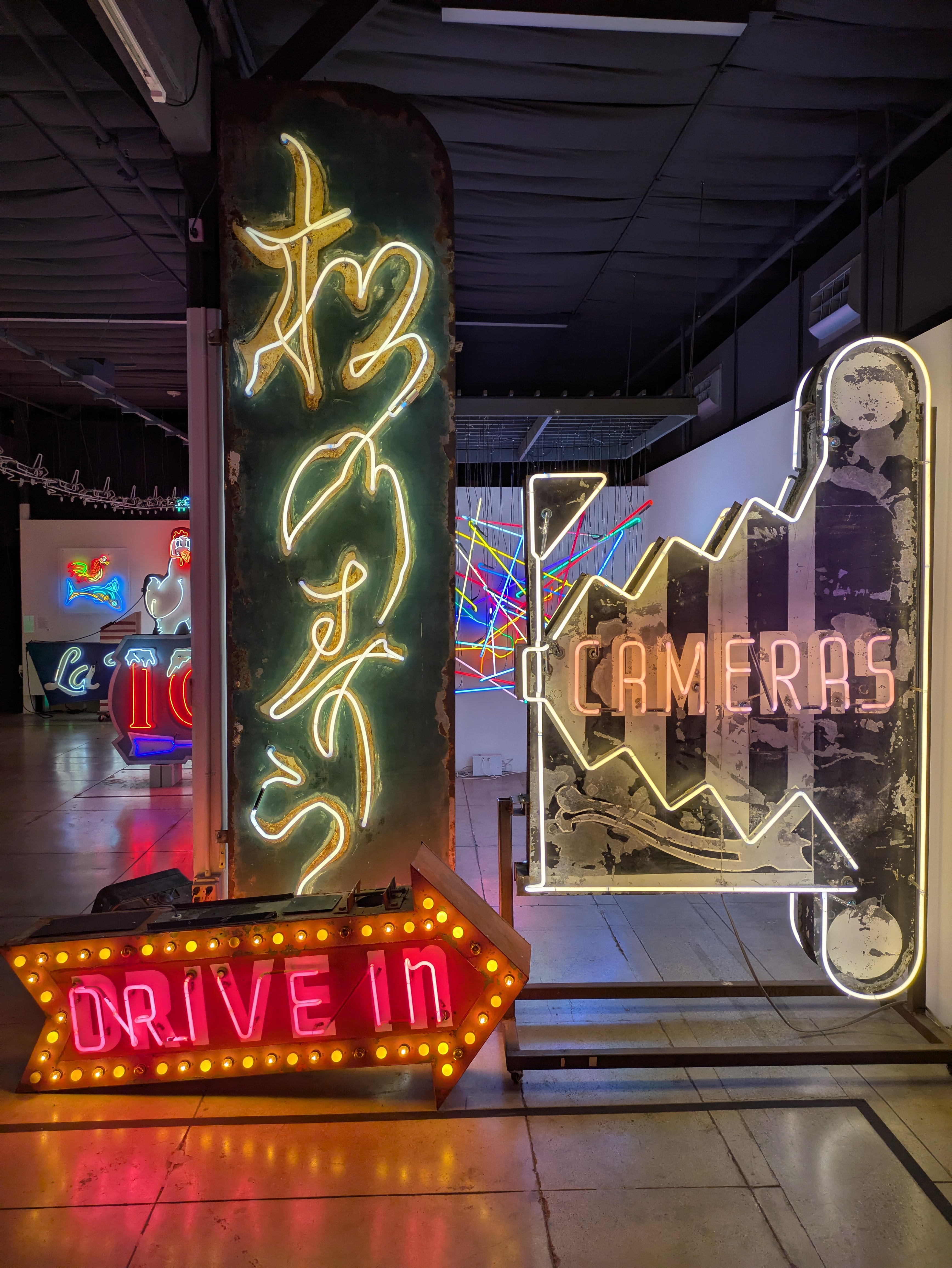 Changing exhibits of art from contemporary artists occupy a couple of the smaller galleries, but the real highlight is the large gallery further in that has a stunning collection of historic neon signs, including a striking dragon from the façade of Grauman’s Chinese Theater, a pair of signs from historic Little Tokyo, the delightfully goofy Paramount Pest Control’s Doc Kilzum (“His Patients ALL DIE,” the sign helpfully informs us), and so much more.