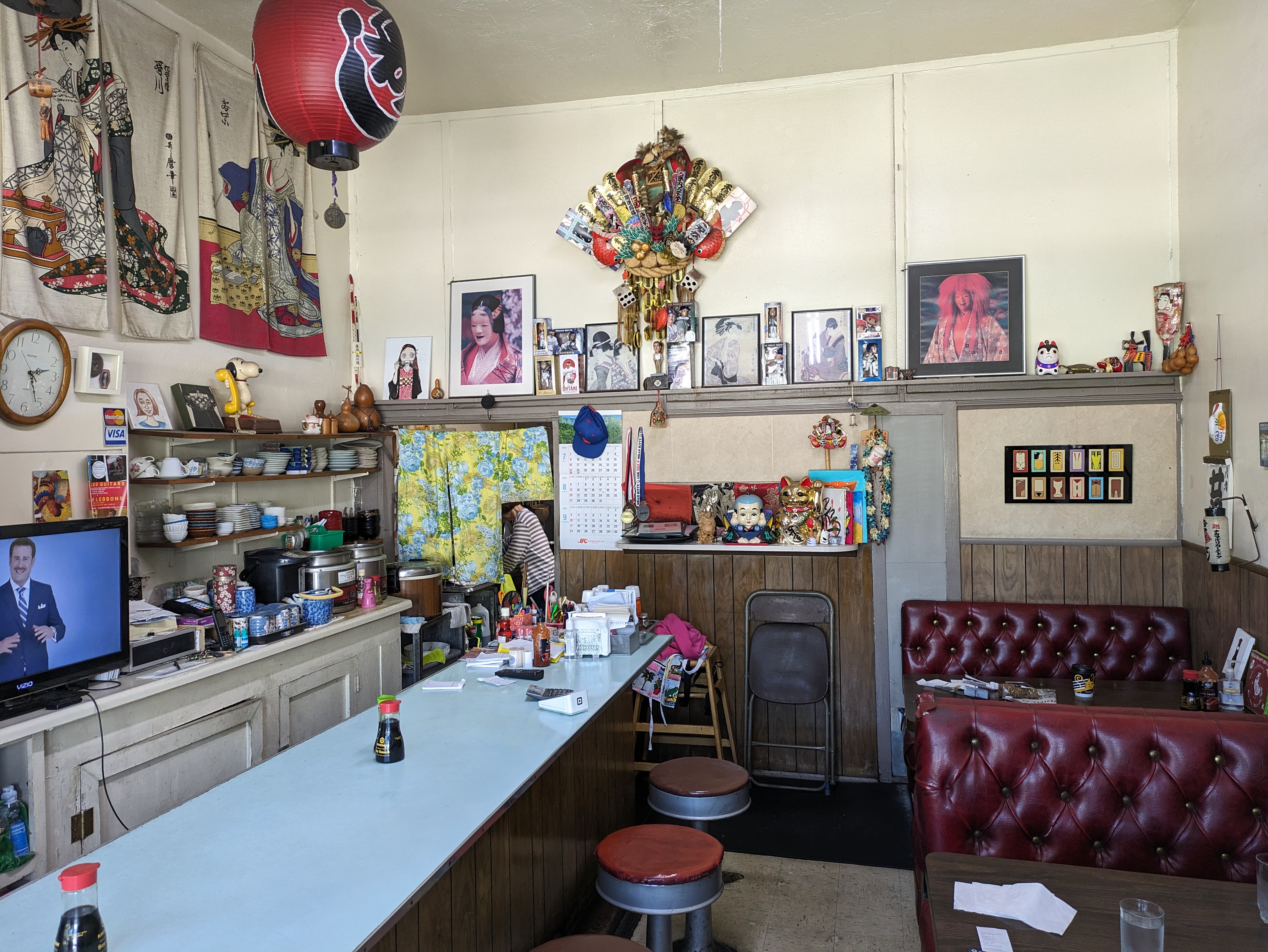 Returning to 1st Street and continuing east, a block up 1st from Soto station is Otomisan (2506 1/2 E 1st St; Mon-Sat 11:30am-2pm & 4:30-8pm, closed Sundays), a wonderful little Japanese restaurant that’s one of the few living reminders of the Japanese community that once thrived in Boyle Heights. Family-run since the 1950s, the inside feels like a tiny diner, with bar stools and booths surrounded by walls cluttered by awards, official city proclamations, children’s drawings, and Japanese artwork. On the menu you’ll find sushi, noodle and rice dishes, and delicious gyoza. It’s incredibly cozy and friendly, with the extremely sweet owner taking orders and serving the food, and even the bowls and dishes your food is served in make you feel like you’re at a family dinner in someone’s living room.