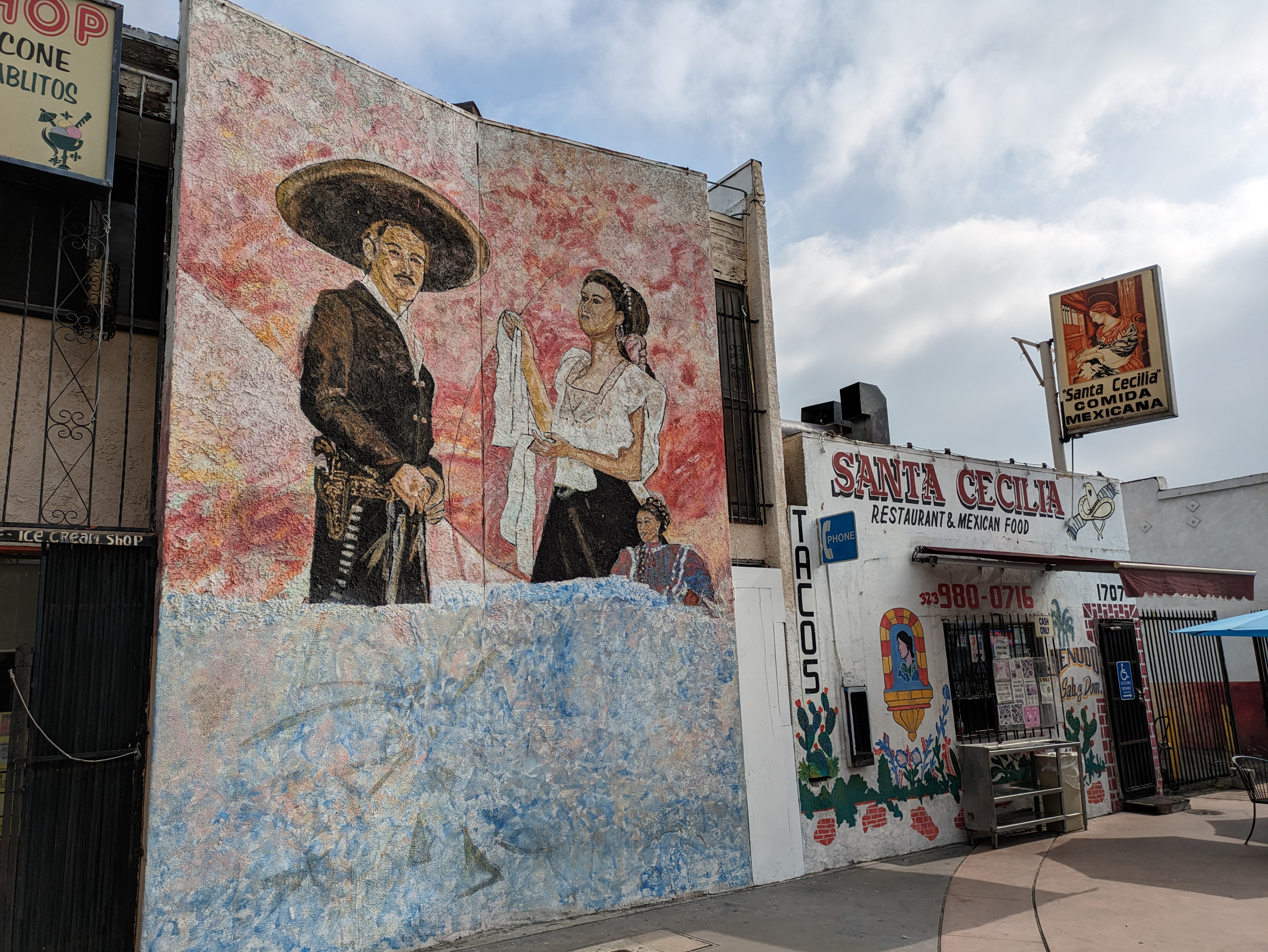 If you’re willing to hoof it up Evergreen Avenue for another half-mile (and be warned, it is mostly uphill), you’ll eventually reach what might be Boyle Heights’ oldest restaurant: El Tepeyac (812 N Evergreen Ave), open since 1955 and famous for serving massive burritos, often smothered in chile sauce, that are easily big enough to feed two people. The seating area is nice and cozy, with some lovely murals on the wall way in the back.