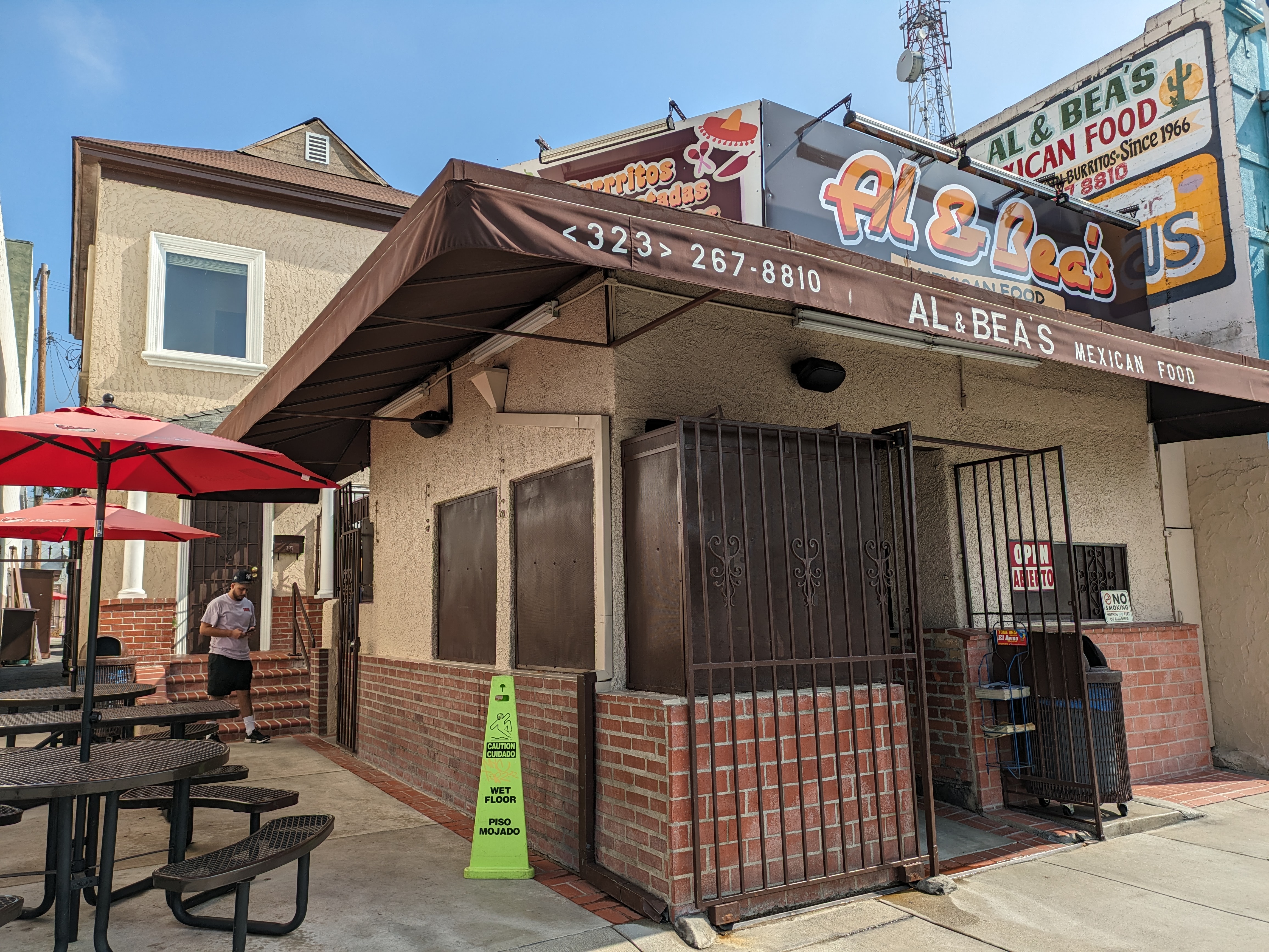 One of the main draws along this stretch of 1st is Al & Bea’s (2025 E 1st St; closed Mondays), a very old-school taco stand that’s popular with the city workers and many locals. The first thing that will strike you is the size; it’s tiny, built within the front yard of a house, with limited outdoor seating. But the menu is extensive, with everything being greasy and flavorful, and very affordable. The burritos are definitely the highlight, with the chile relleno and combination burritos being the most popular. This is old-school Mexican-American food, which does catch some people off-guard; for instance, the tacos are hard-shelled, rather than the soft tortillas you’ll get at a taco truck. If you’re a stickler for “authentic” Mexican food, you can skip this one and try one of the other places we mentioned. Otherwise, grab a burrito and enjoy.