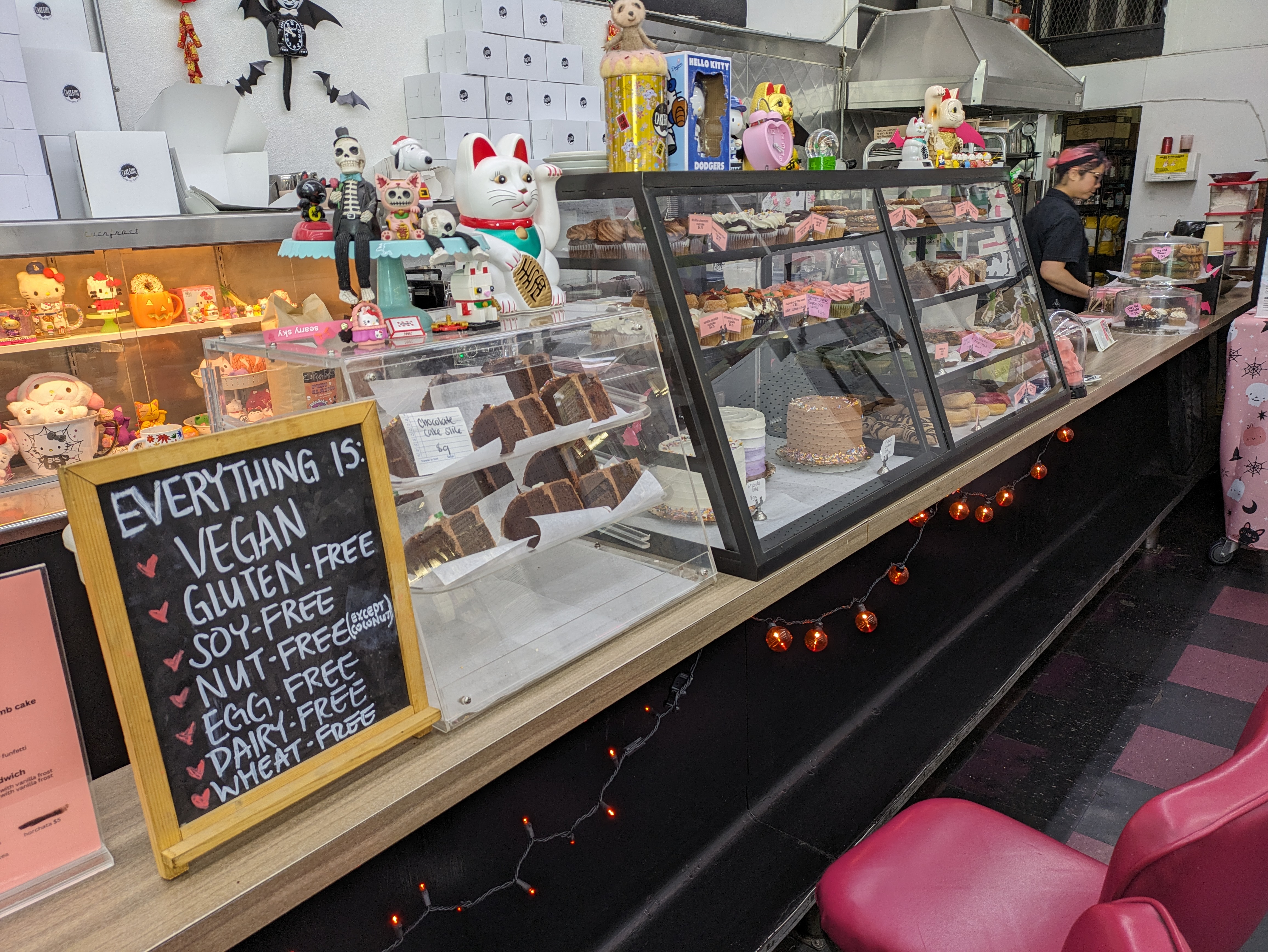 Another local business that’s a must-try is Cake Girl (2100 E 1st St; closed Sundays), a bakery inside the St. Louis Drug Company, a corner pharmacy that’s been operating at 1st & St. Louis since 1920. The bakery is in the back, and everything they serve is vegan and gluten-free, with donuts that are incredibly moist and delicious, with plenty of seasonal flavors. The treats are a little on the pricey side, but they do often have day-olds if you want to opt for something cheaper but still tasty.