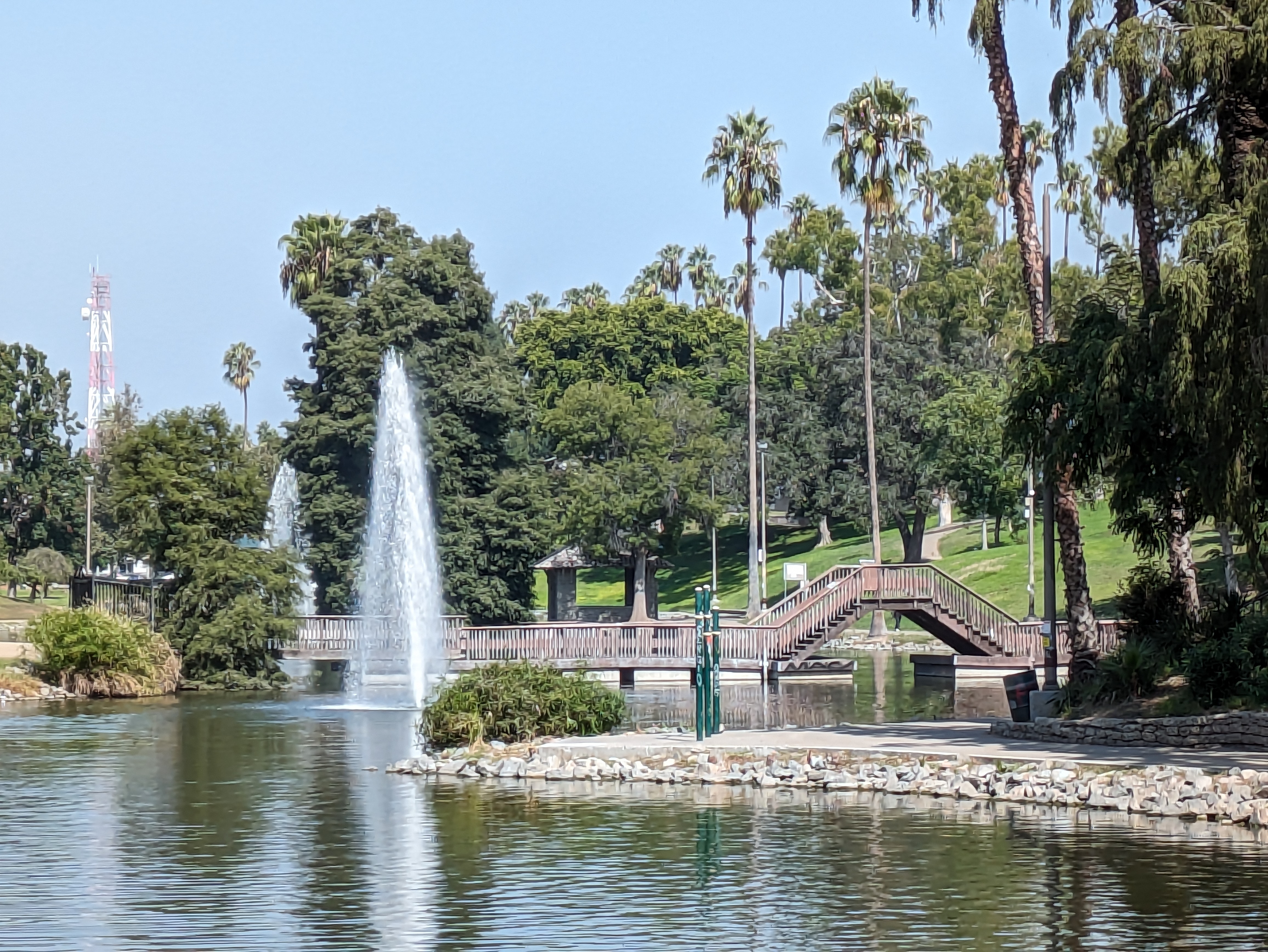 A few blocks to the south, along St Louis Street south of 4th Street, is Hollenbeck Park, Boyle Heights’ largest and most scenic green space. A lovely lake draws plenty of ducks and geese, with a little wooden pedestrian bridge spanning the center of the lake. Picnic tables dot the park, with good views of the downtown skyline from the top of the hill along St Louis Street.