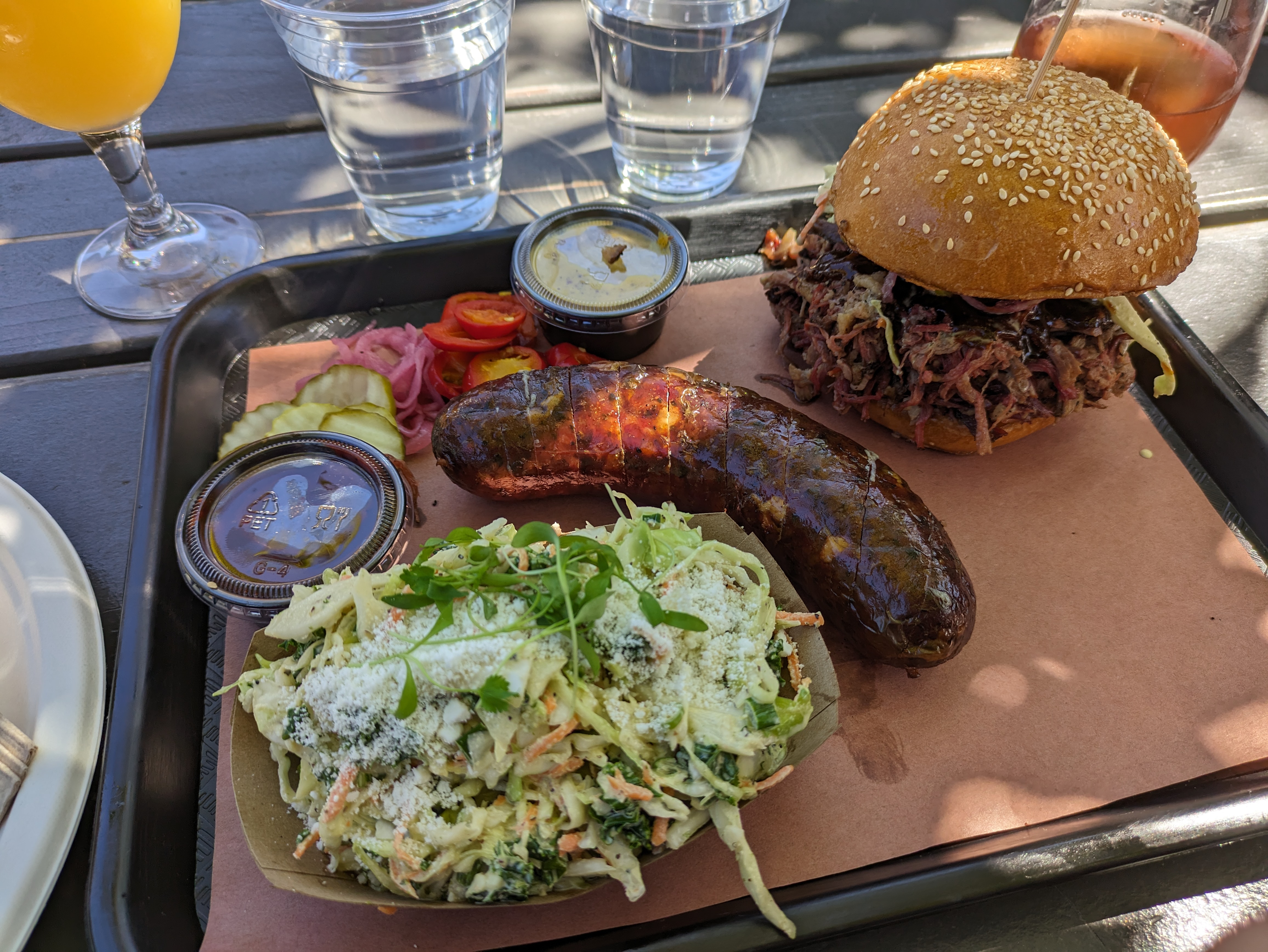 But San Juan Capistrano’s most renowned eatery, at least of time of writing, is Heritage Barbecue, which sits on Camino Capistrano directly across the street from the mission. A Texas-style BBQ joint (you can spot a Texas flag next to the smokers outside), Heritage is a relatively new restaurant that has quickly garnered a loyal following. After ordering from the window out front, head over to the bar and get yourself a drink before finding a seat at one of the picnic tables on the patio. The lines will get very long on the weekends, but the food is well worth it. The brisket and sausage links are delicious, as are the sides (we tried the peppery coleslaw), and the portions are generous.