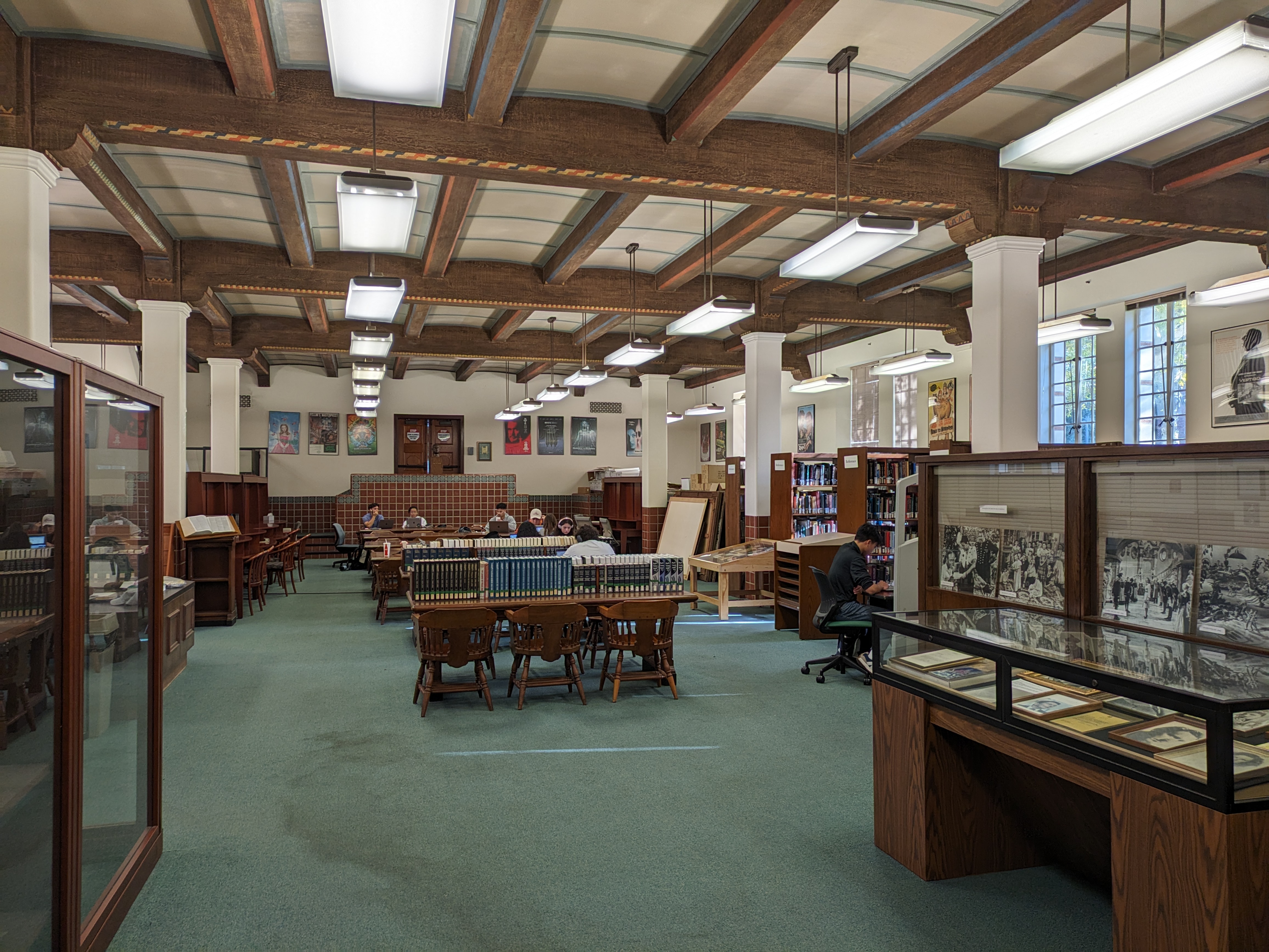 Doheny Library houses many of the university’s special collection libraries, some of which have small sections of the building devoted to them, with displays for visitors to enjoy and lots of fascinating material available for access. The most notable of these is the Cinematic Arts Library down in the bottom floor, the reading room of which is filled with remarkable artifacts. The walls are lined with classic movie posters, and walking through you’ll pass display cases of artifacts from old Hollywood, including an entire set of objects related to Cecil B. DeMille. It’s very much worth a look if you have even a casual interest in film, and for the more invested you can arrange with the librarians to explore their collection.