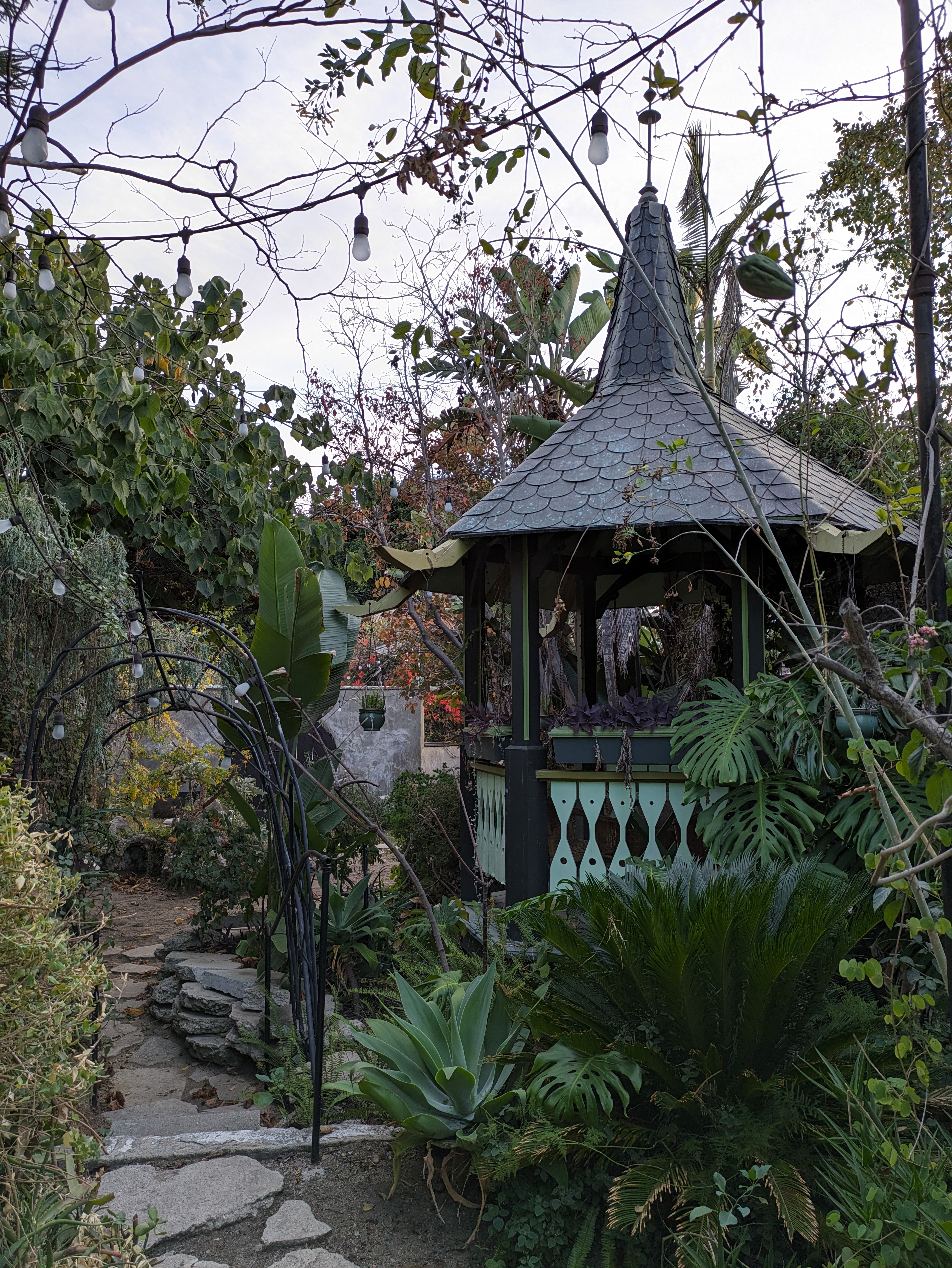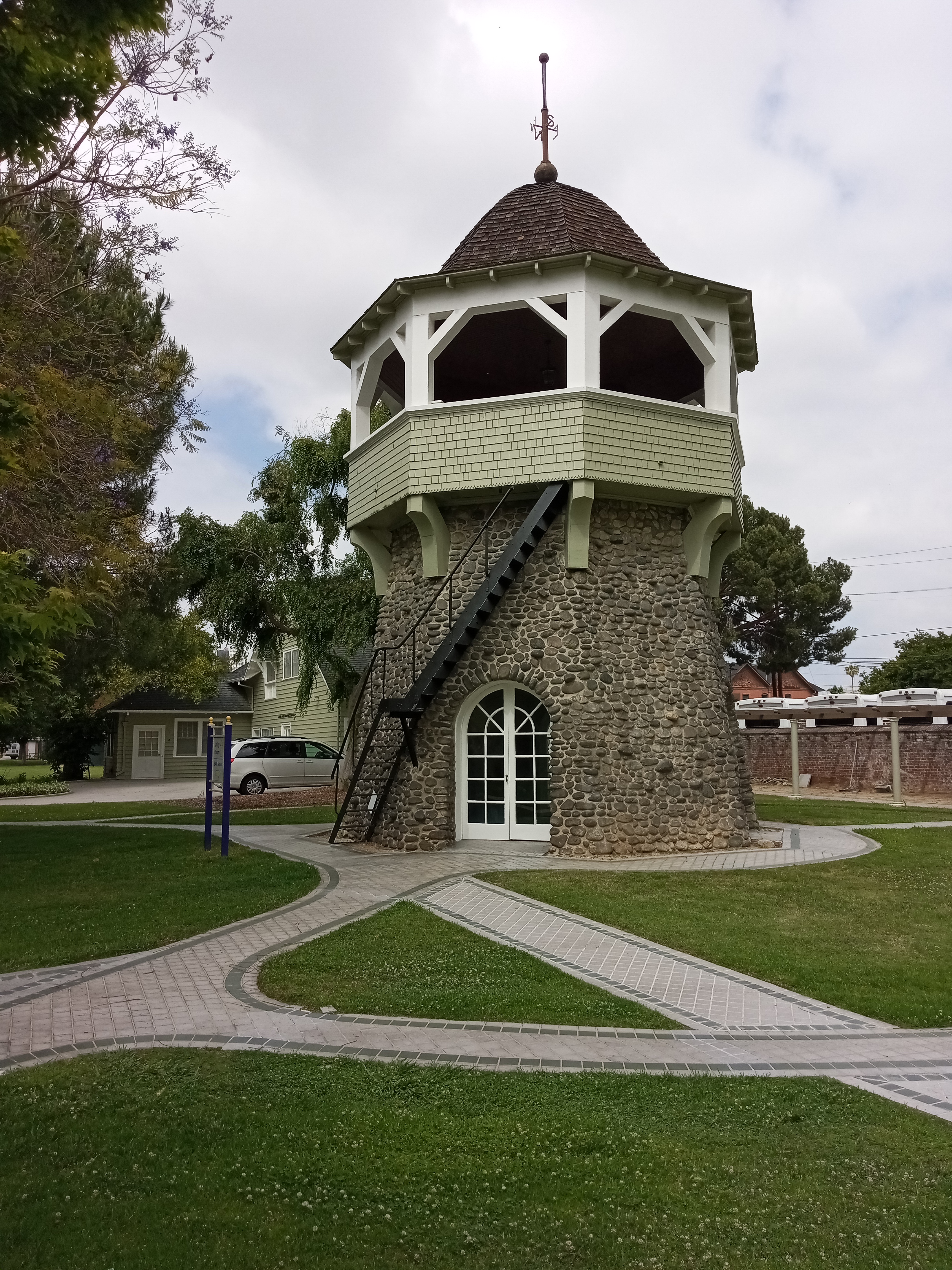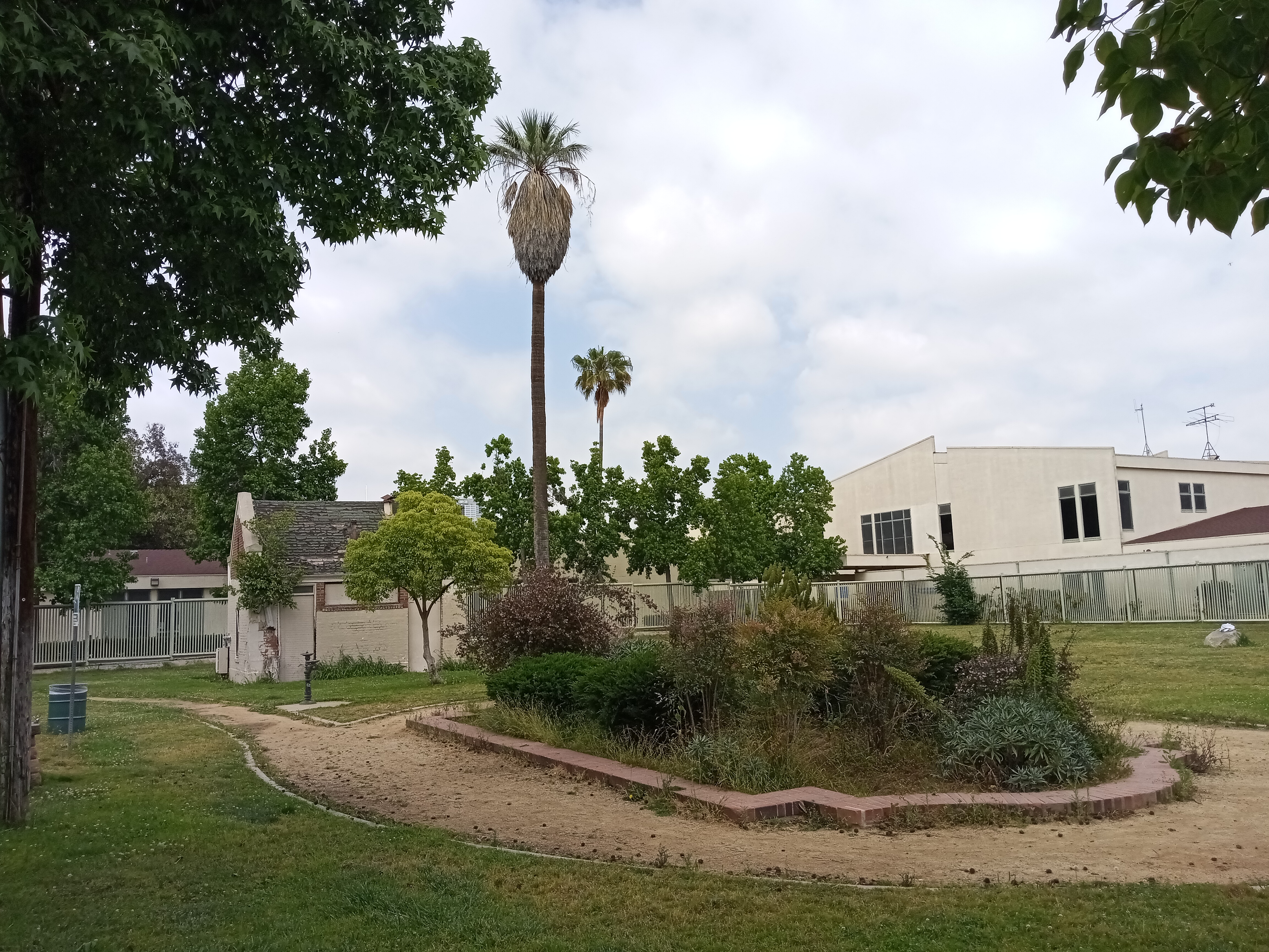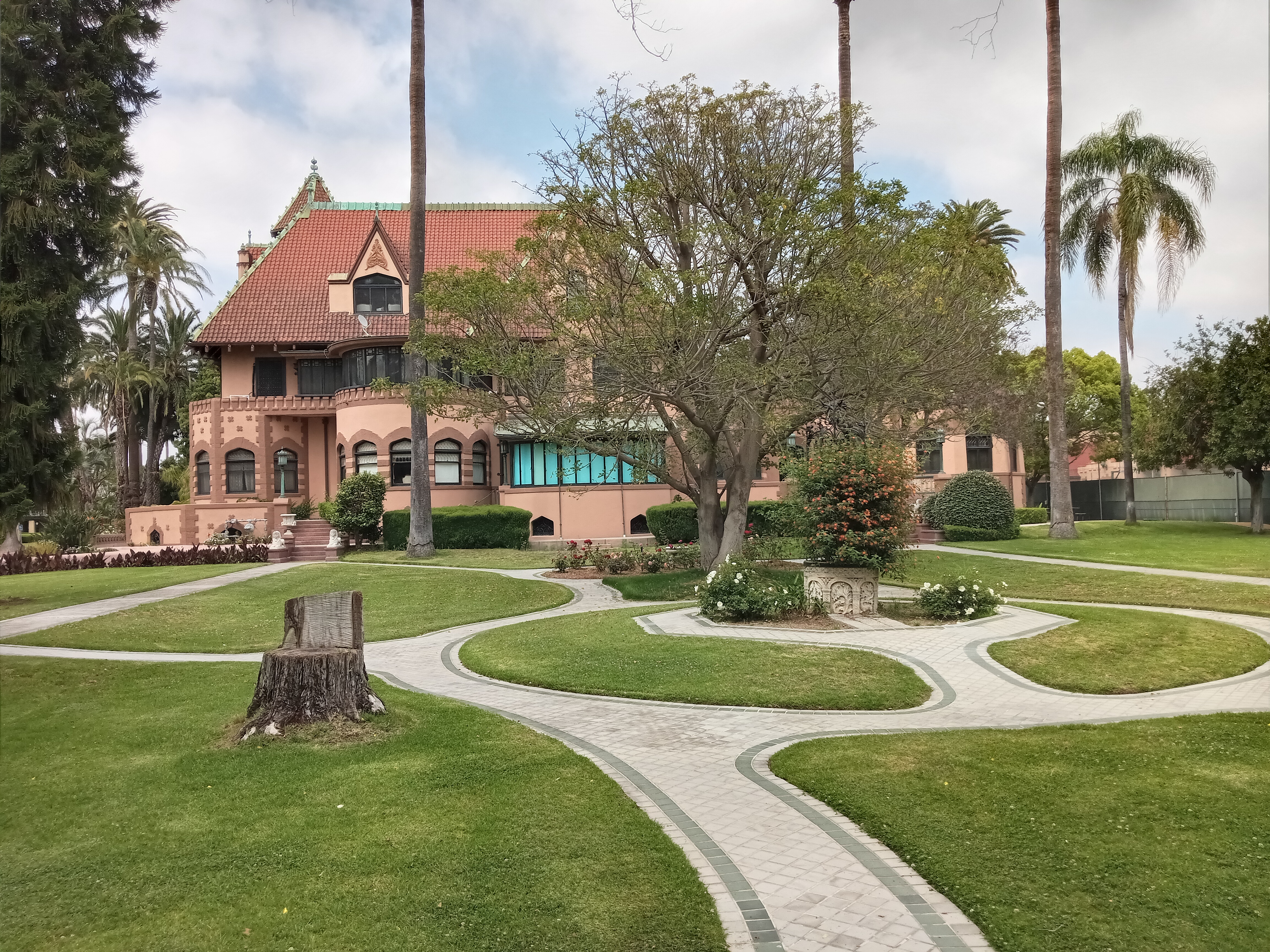 St. James Park also marks the entrance into the campus of Mount Saint Mary’s University, with the main gate just a block east of the park. This Catholic university encompasses the entirety of Chester Place, one of the city’s first gated communities and, in the 1900s, perhaps its most exclusive addresses. The campus is centered around the Doheny Mansion, the Gothic residence of the city’s first oil tycoon, with lush landscaping and other historic buildings, including an odd stone tower hiding just south of the mansion.