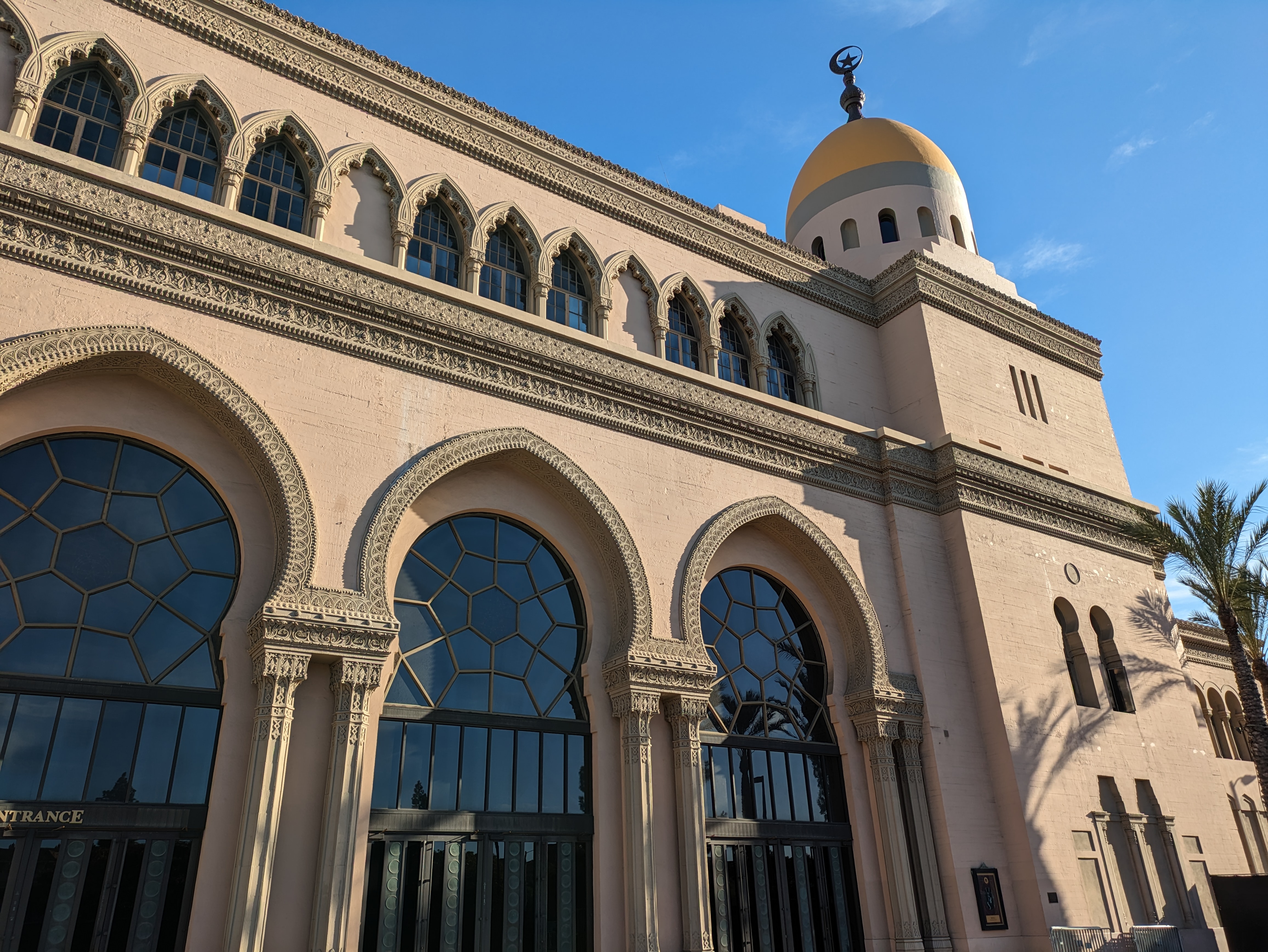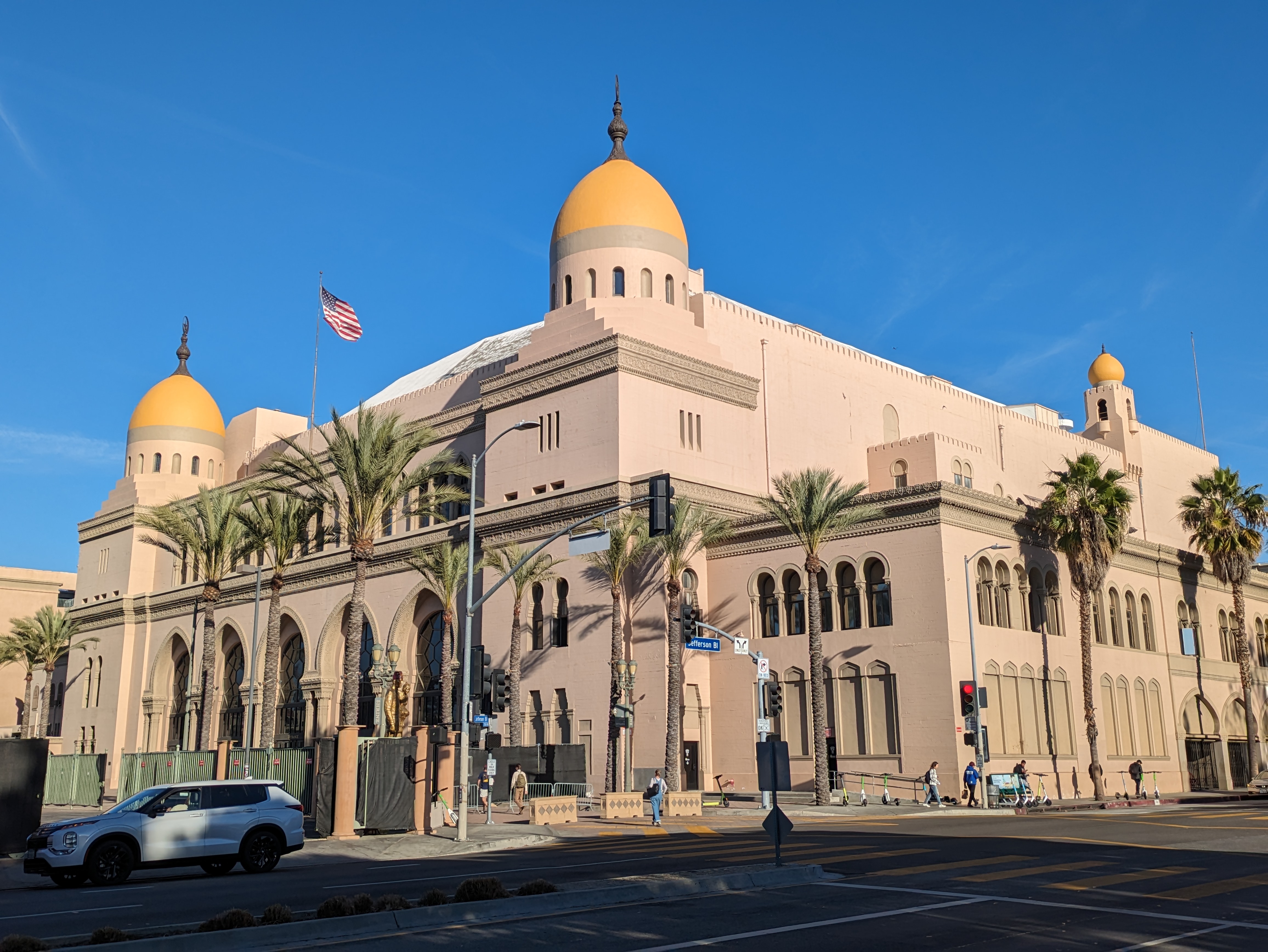 Across Jefferson Blvd, you can’t miss the audacious architecture of Shrine Auditorium, a true landmark and a particularly noteworthy example of Moorish Revival architecture. Built in 1926, it serves as both an event venue and a local headquarters for the Shriners, a Masonic society most well-known for their network of children’s hospitals. The auditorium has hosted numerous awards ceremonies and major concerts over the years, and is a sight to behold with its gleaming spires and elaborate stained windows.