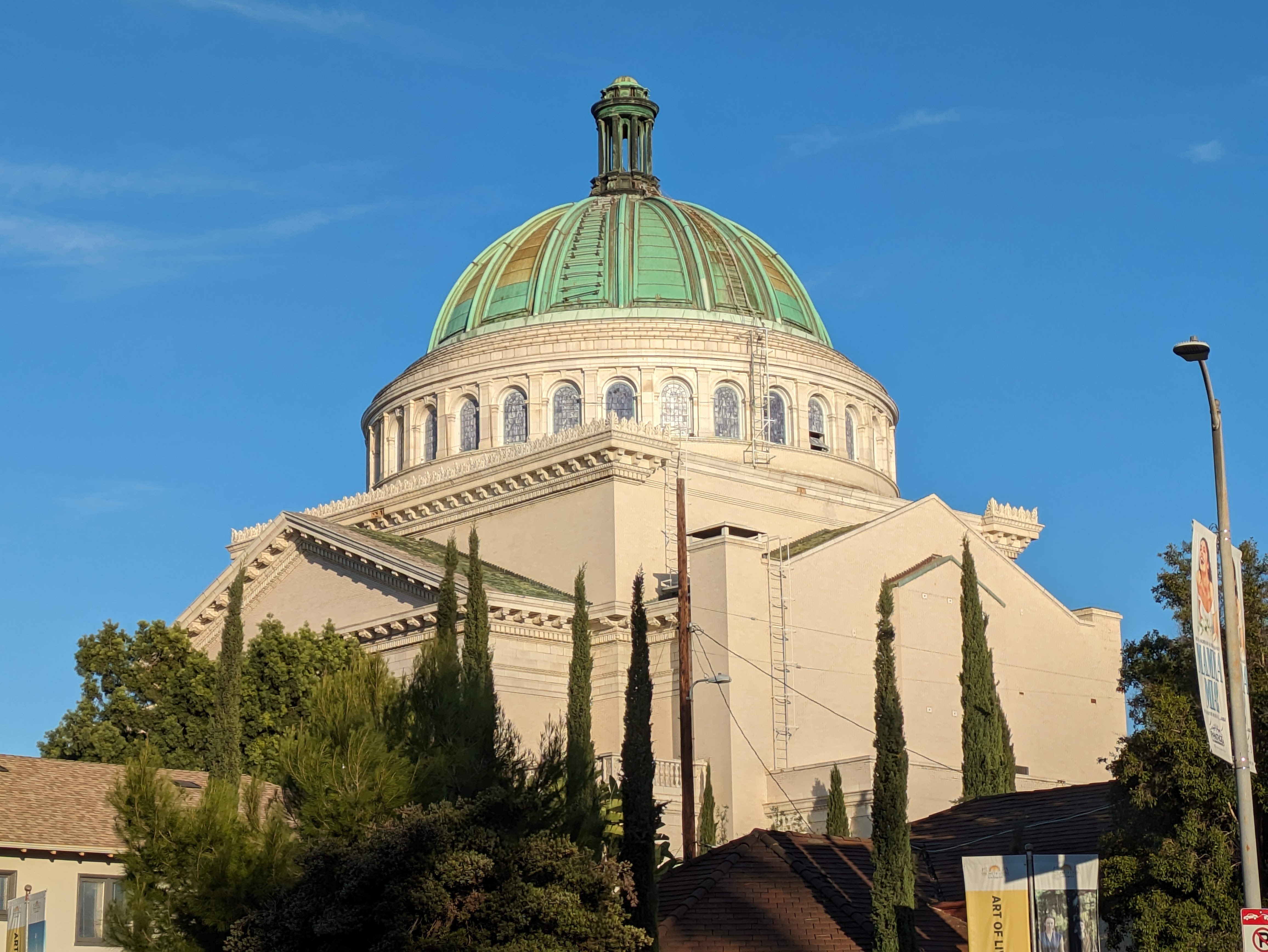 Continuing up Hoover, you’ll enter University Park, a historic neighborhood that has grown alongside the USC campus since its inception. Given that it was laid out over a hundred years ago, the architecture is a mix of styles, with a lot of Victorian houses that have been converted into duplexes, mixed in with grand churches and modern apartment buildings. Most of the residential streets are quiet and pleasant to walk down (with the notable exception of 28th Street east of Hoover, which is infamous as Frat Row and frankly better skipped), but even just walking up Hoover you’ll be treated to plenty of fine architecture. At Hoover and Adams, you can’t miss the former Second Church of Christ, Scientist building, a towering Classical Revival structure with a massive copper dome which looms over the surrounding blocks.
