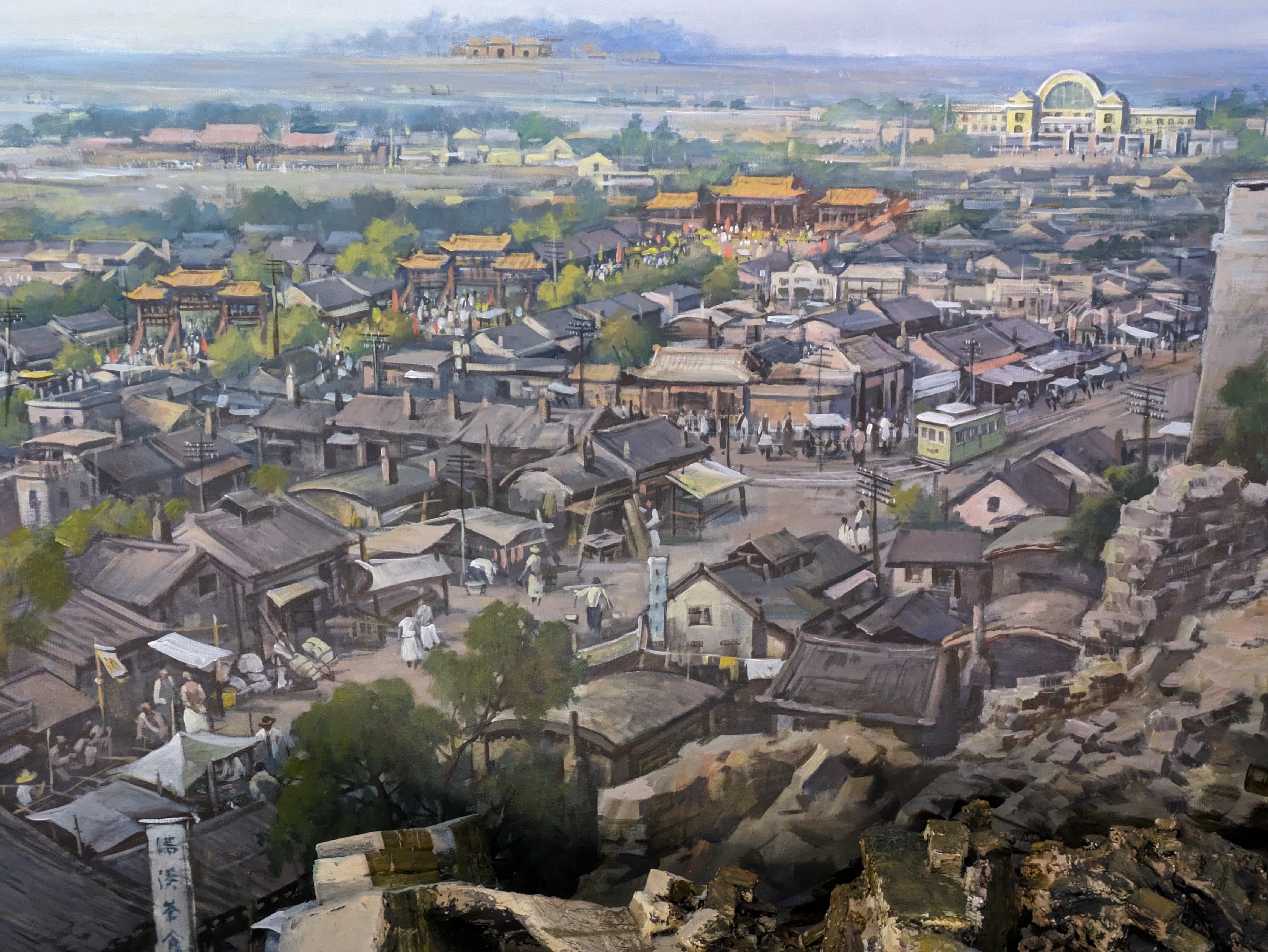 Only a handful of historic panoramas survive to this day, though the artform is kept alive through the occasional modern iteration. That’s what has been accomplished here, and the effect is breathtaking. After you’ve entered the lobby and checked in, you’ll proceed down a set of dark hallways and ascend a spiral staircase to view the museum’s current masterpiece, the Shengjing Panorama, which depicts the city of Shenyang around 1920.