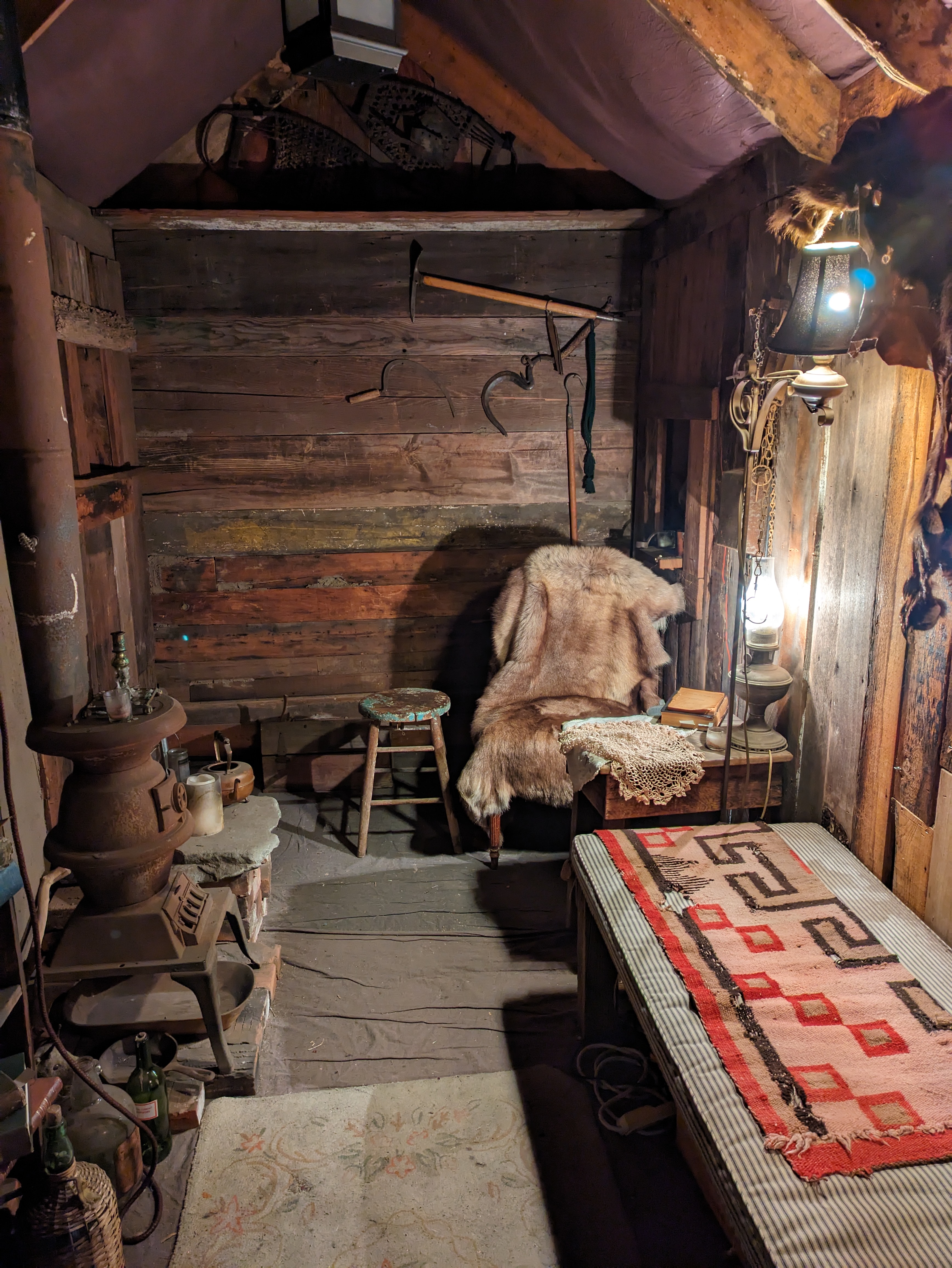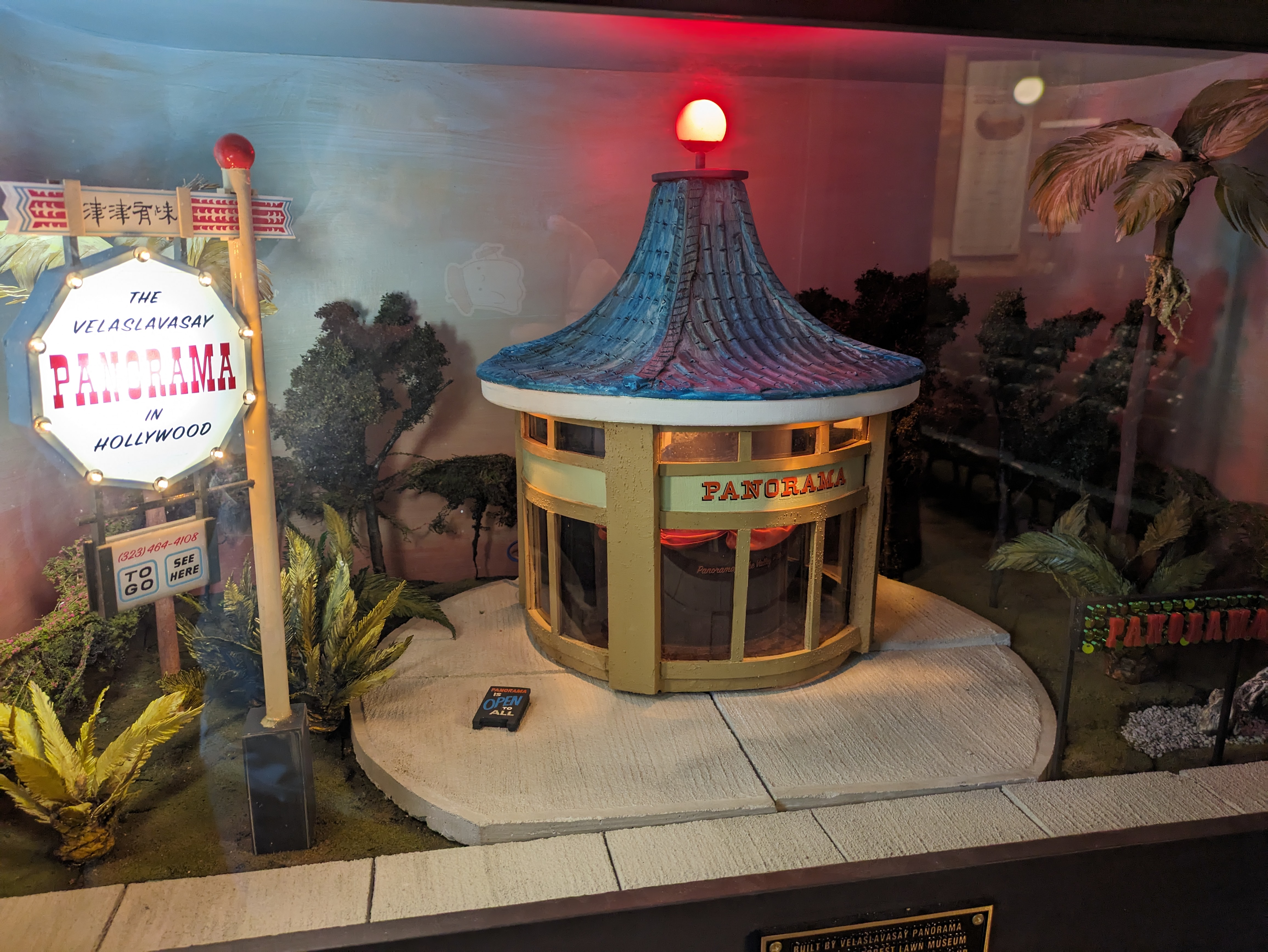 The panorama is the highlight here, but there are other fascinating exhibits as well. While the exhibits here do rotate (so any of this is subject to change), they do so infrequently enough to feel like permanent exhibits. Just off the lobby down a separate hallway is a recreation of an Arctic trading post from the turn of the century, with heavy pelts draped over chairs and artifacts of Arctic expeditions past, and even a miniature diorama of the tundra viewed through a window. Down the hallway leading to the panorama are a couple of models of historic L.A. buildings, including one of its former train stations. And further down in the old theater, where a small stage still sits, is a collection of models related to previous subjects of the musuem, including a model of the original Velaslavasay Panorama location in a former Chinese restaurant in Hollywood.
