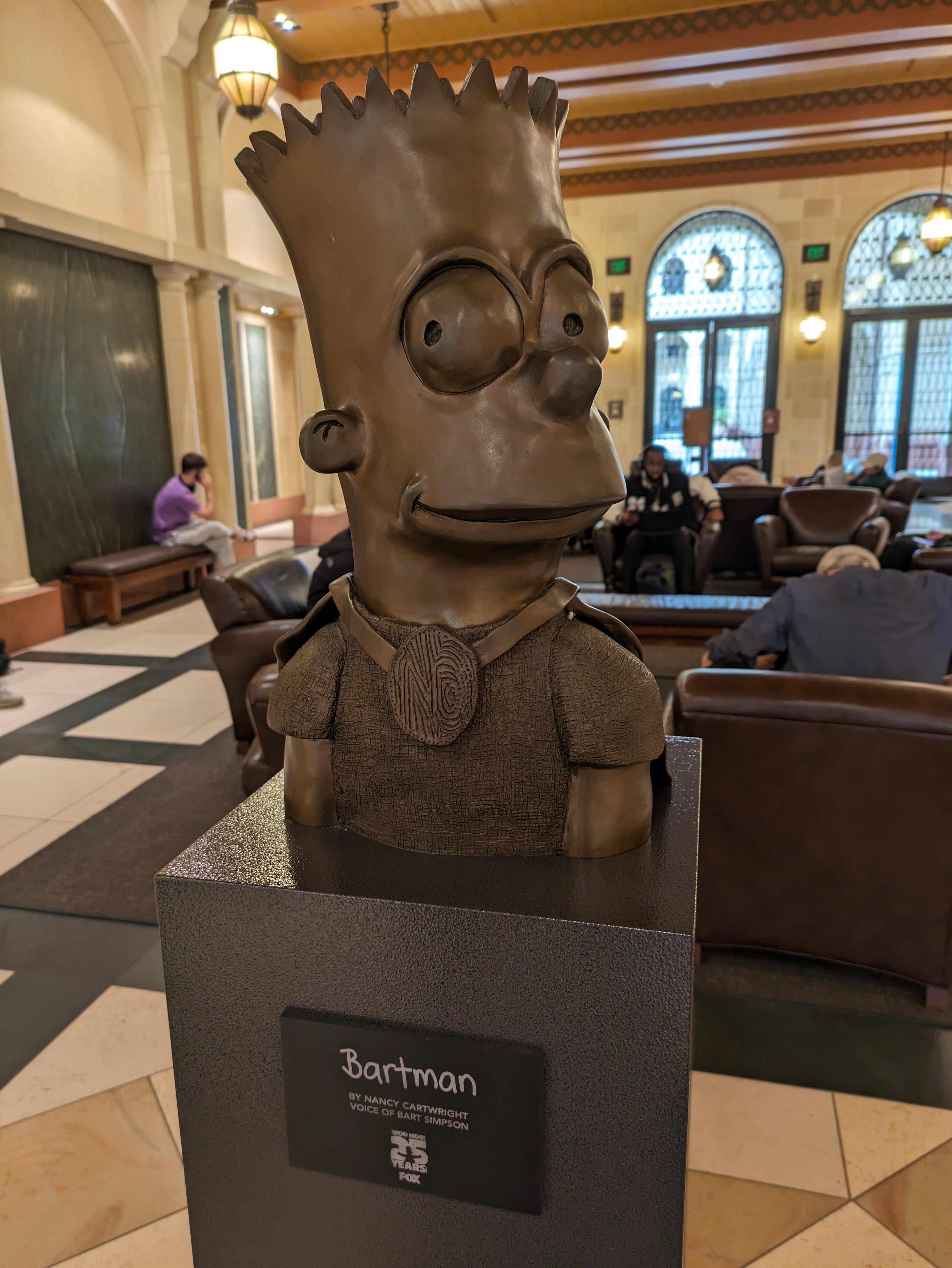 The school is littered with tributes to actors, directors, and screenwriters with USC connections. There’s film posters and sponsor plaques with familiar names in various hallways. In the atrium near the on-site Coffee Bean is a statue of Bart Simpson, in honor of voice actress Nancy Cartwright. And in the Lucas wing, there’s a gallery with changing exhibitions focused on specific filmmakers.