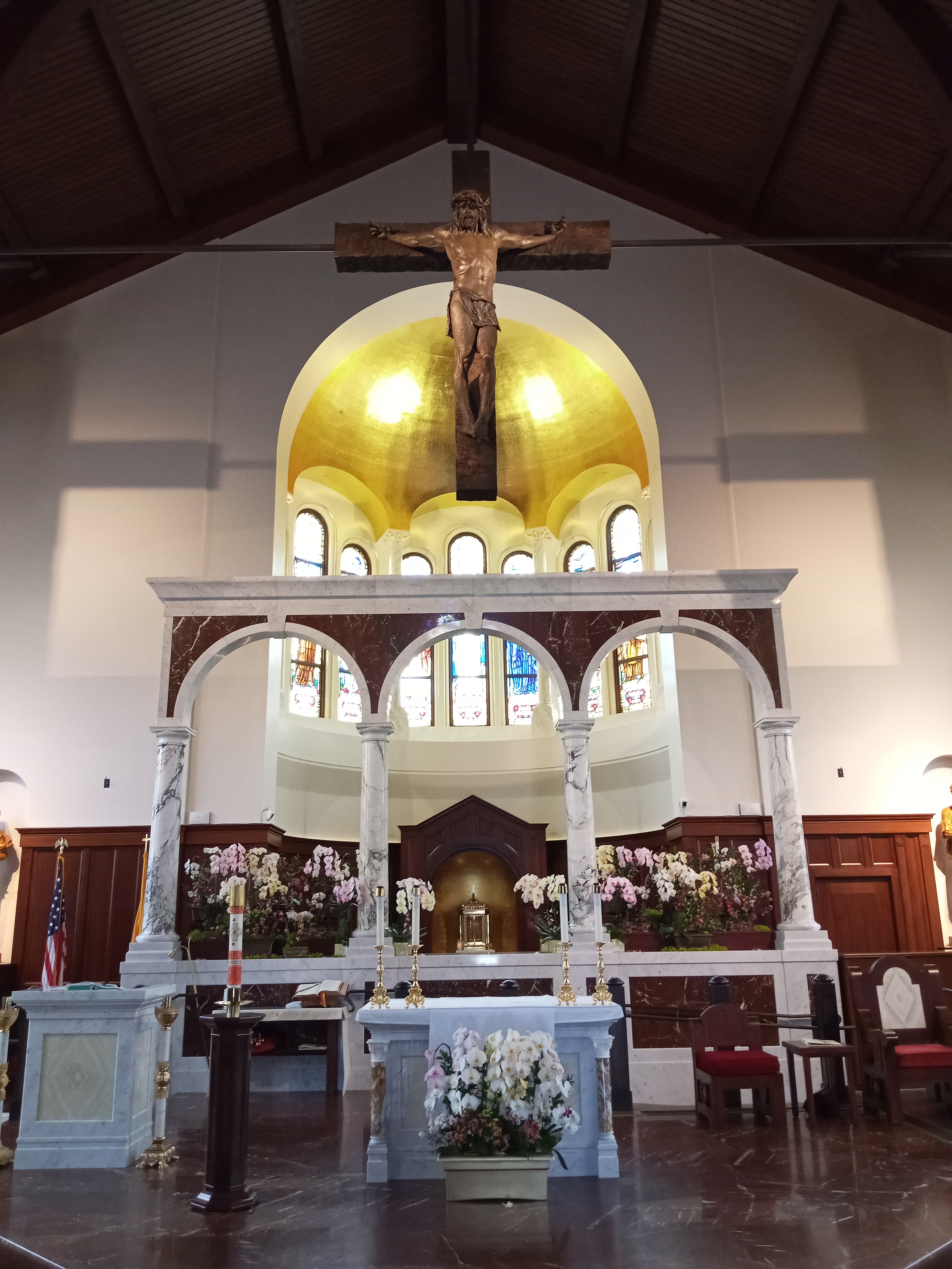 As far as I could tell, the St. James Park entrance is the only one that’s open, so exiting the campus requires going out the way you came in. From here you can loop down to Adams Boulevard and continue east to Figueroa, where the intersection is surrounded by stunning buildings. First is the beautiful St. Vincent de Paul Catholic Church, built in the 1920s in a spectacular Spanish baroque style with an elaborate tower soaring over the street. Directly north of this on Figueroa is the Stimson House, perhaps better known as the “Red Castle” for its medieval-style architecture and red stone facade. And on the southeast corner of Adams and Figueroa (and behind a gas station) is St. John’s Episcopal Cathedral, which is quite stunning inside.